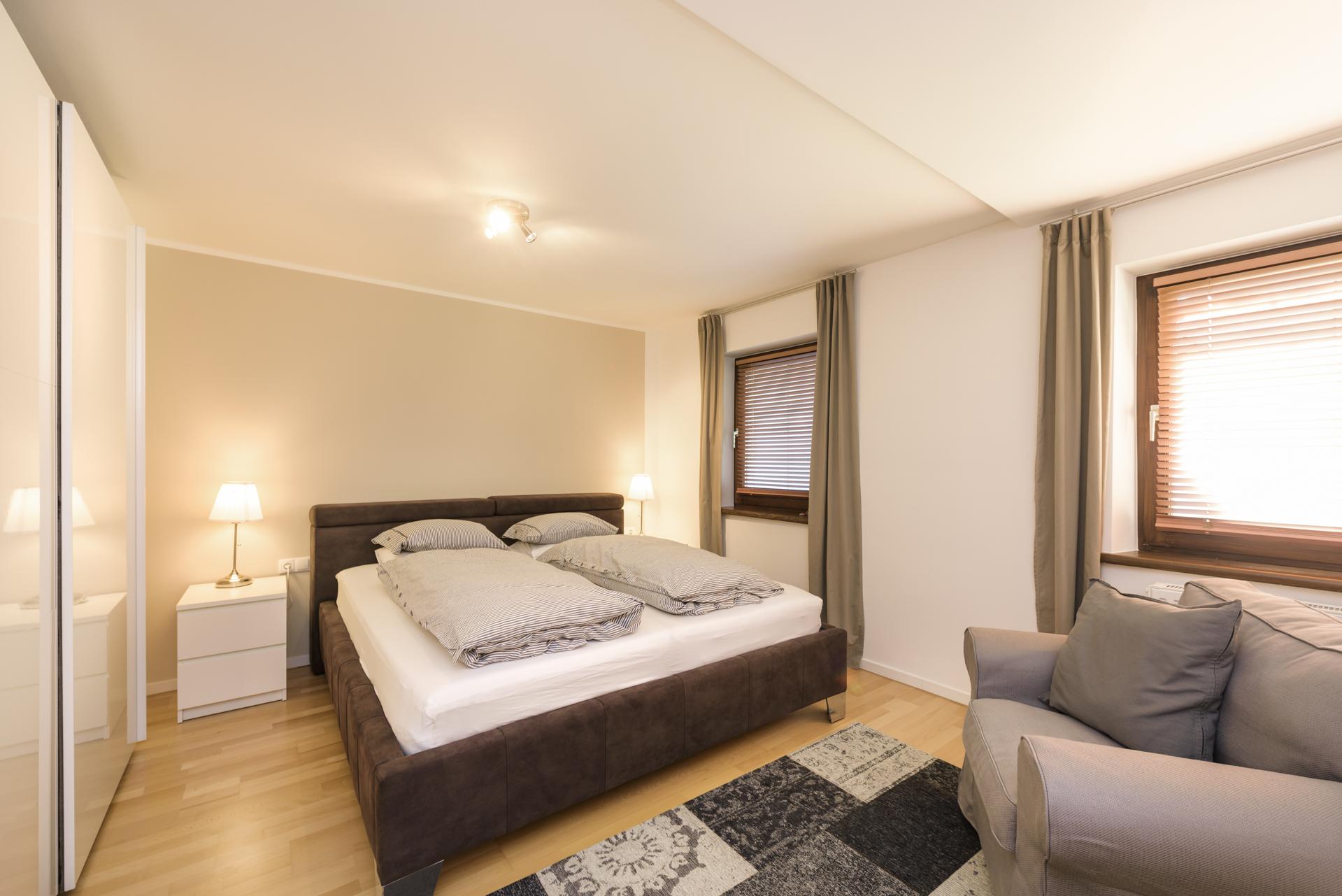 2 Schlafzimmer mit Boxspring-Doppelbetten und Möglcihkeit für Zusatzbett / Kinderbett (auf Anfrage