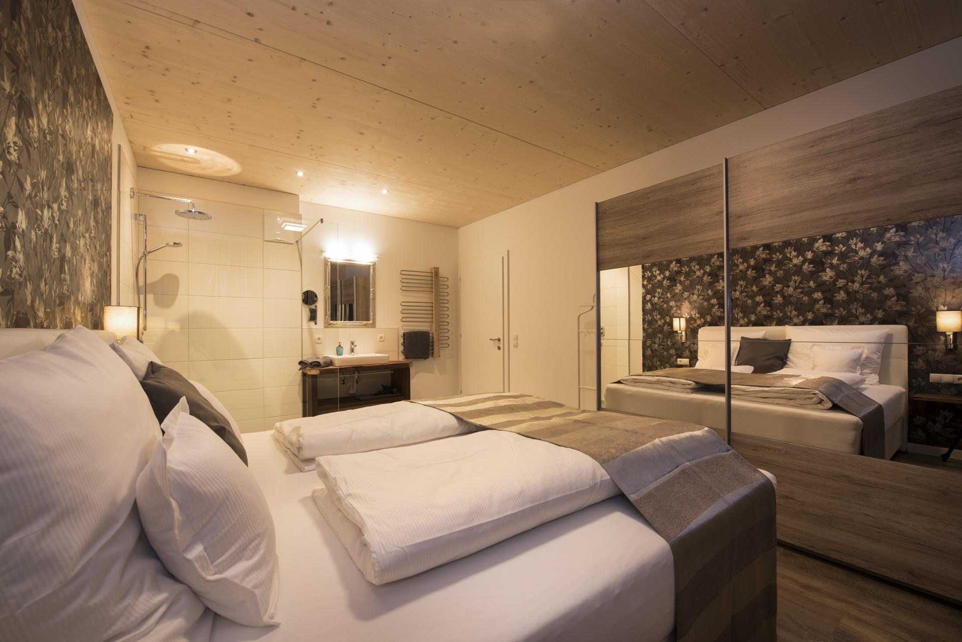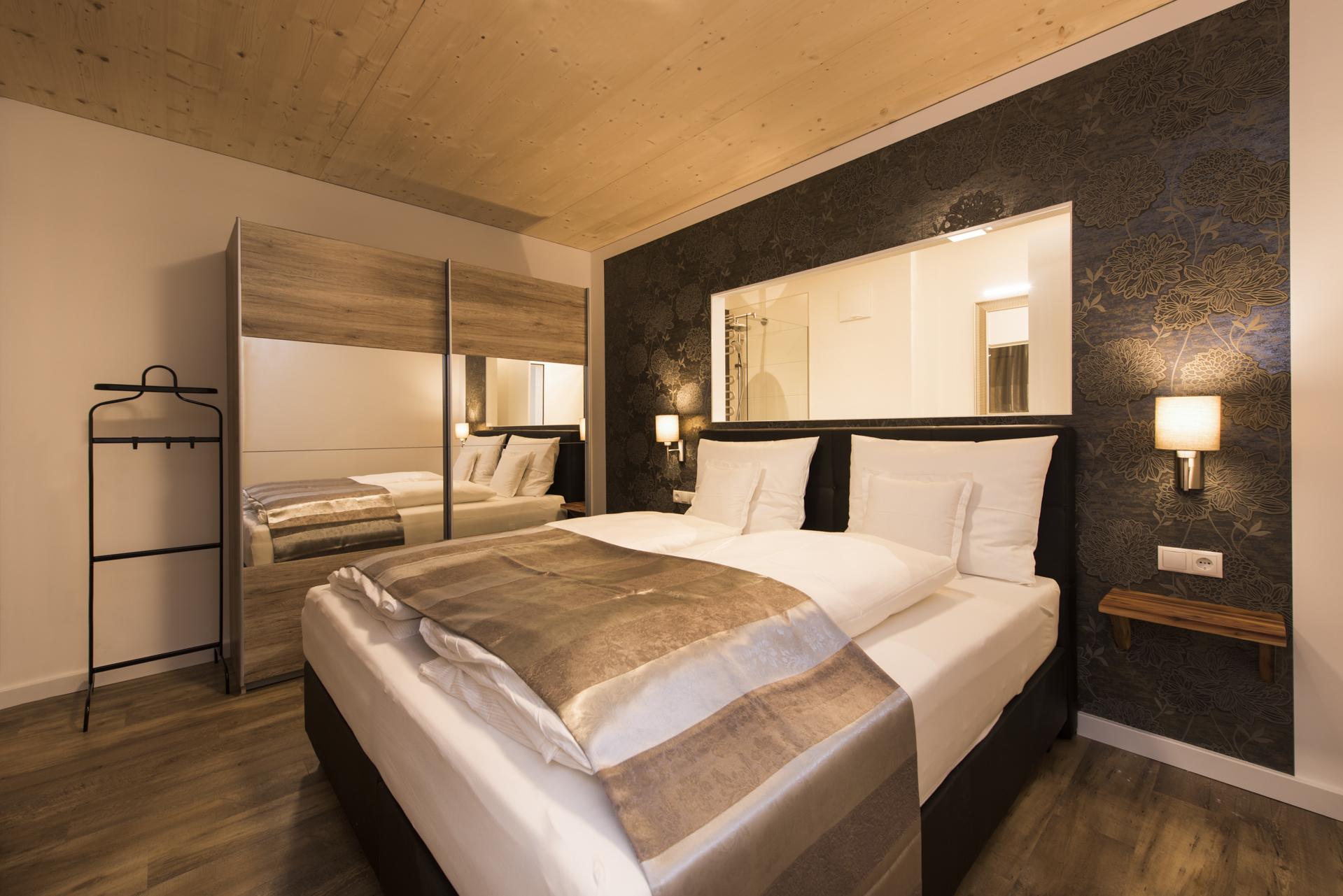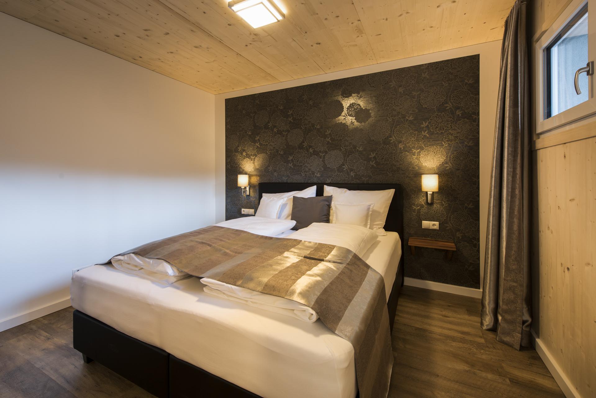 1 Schlafzimmer mit Boxspring-Doppelbett und Möglichkeit für Zusatzbett / Kinderbett (auf Anfrage