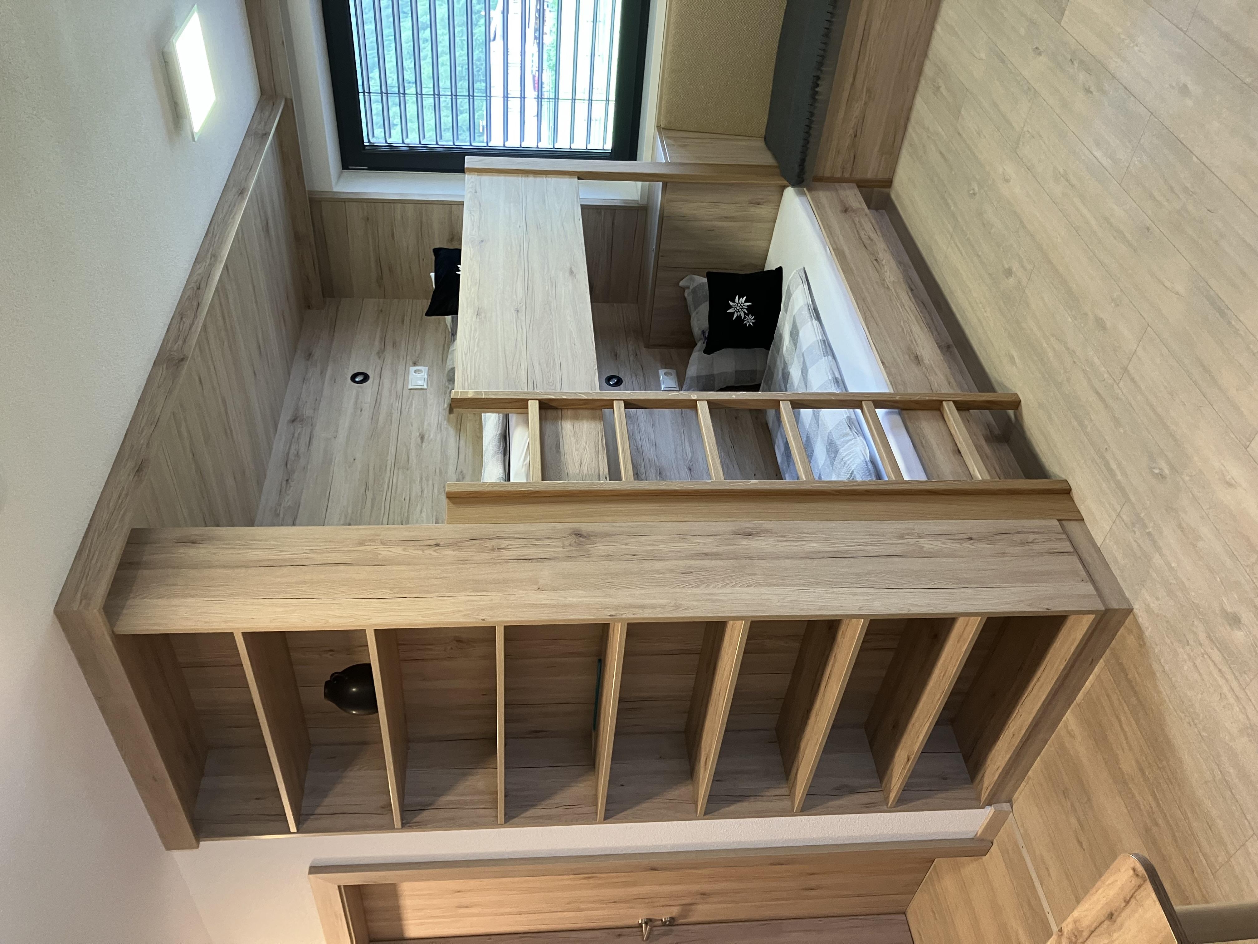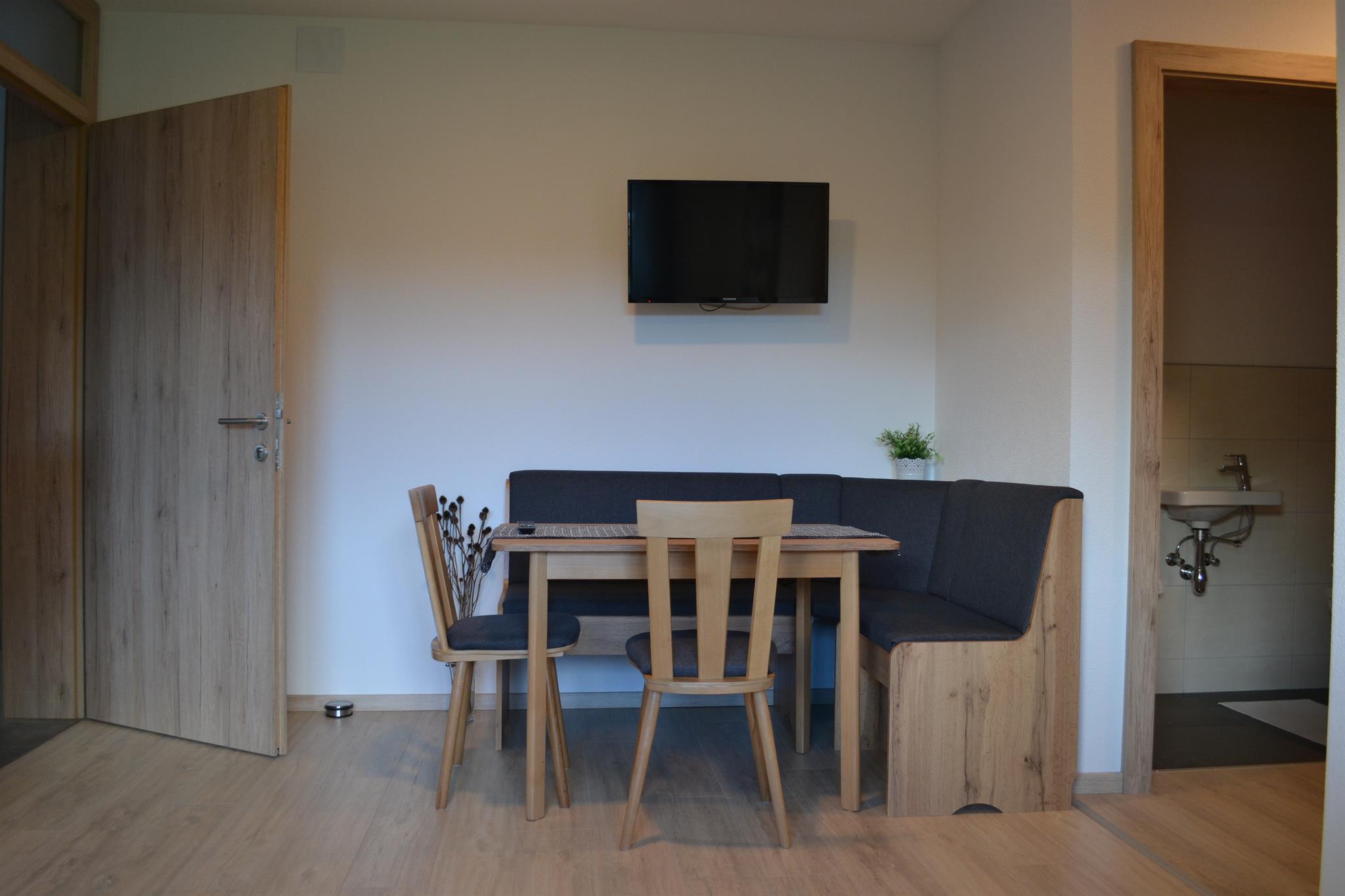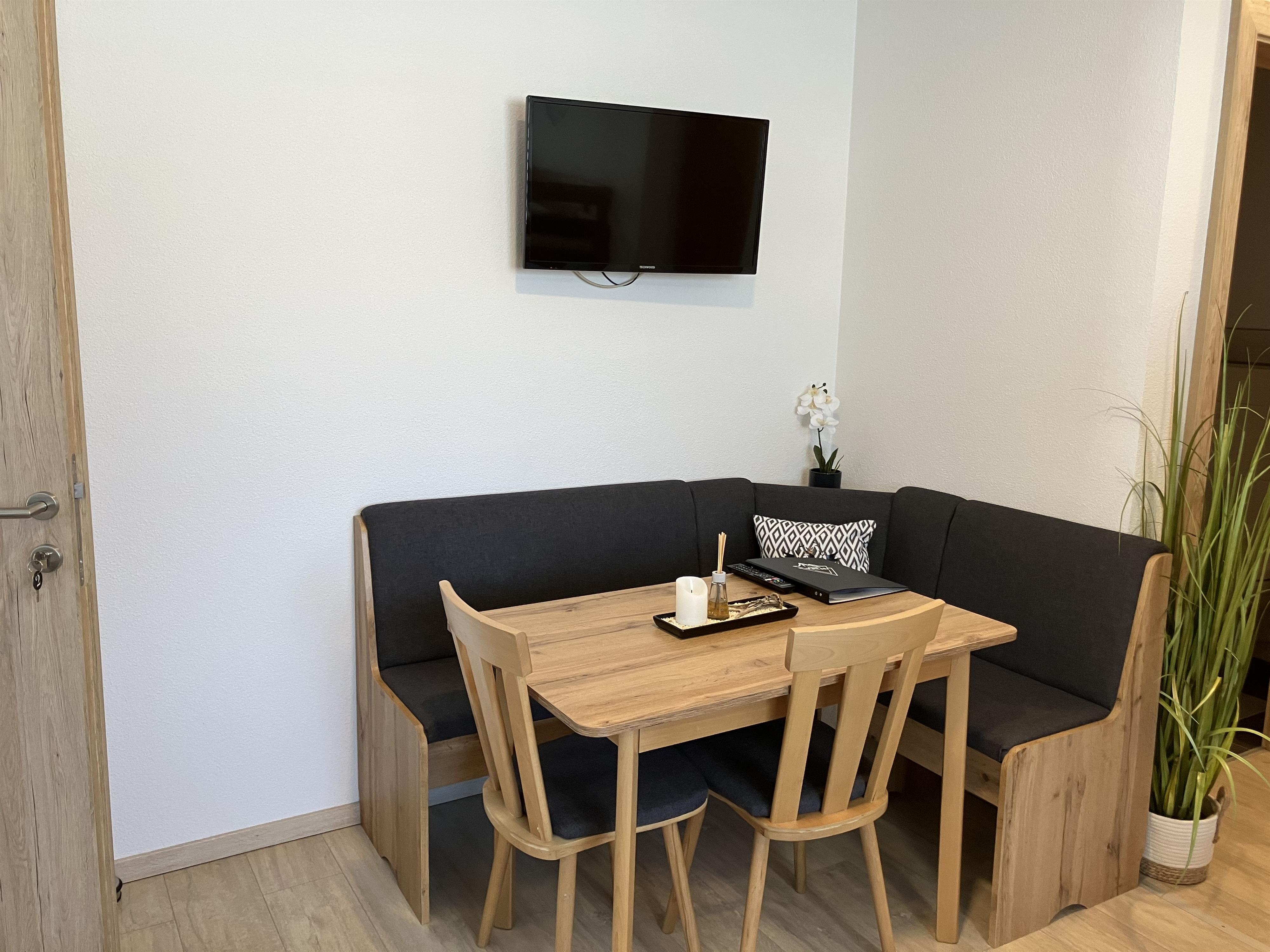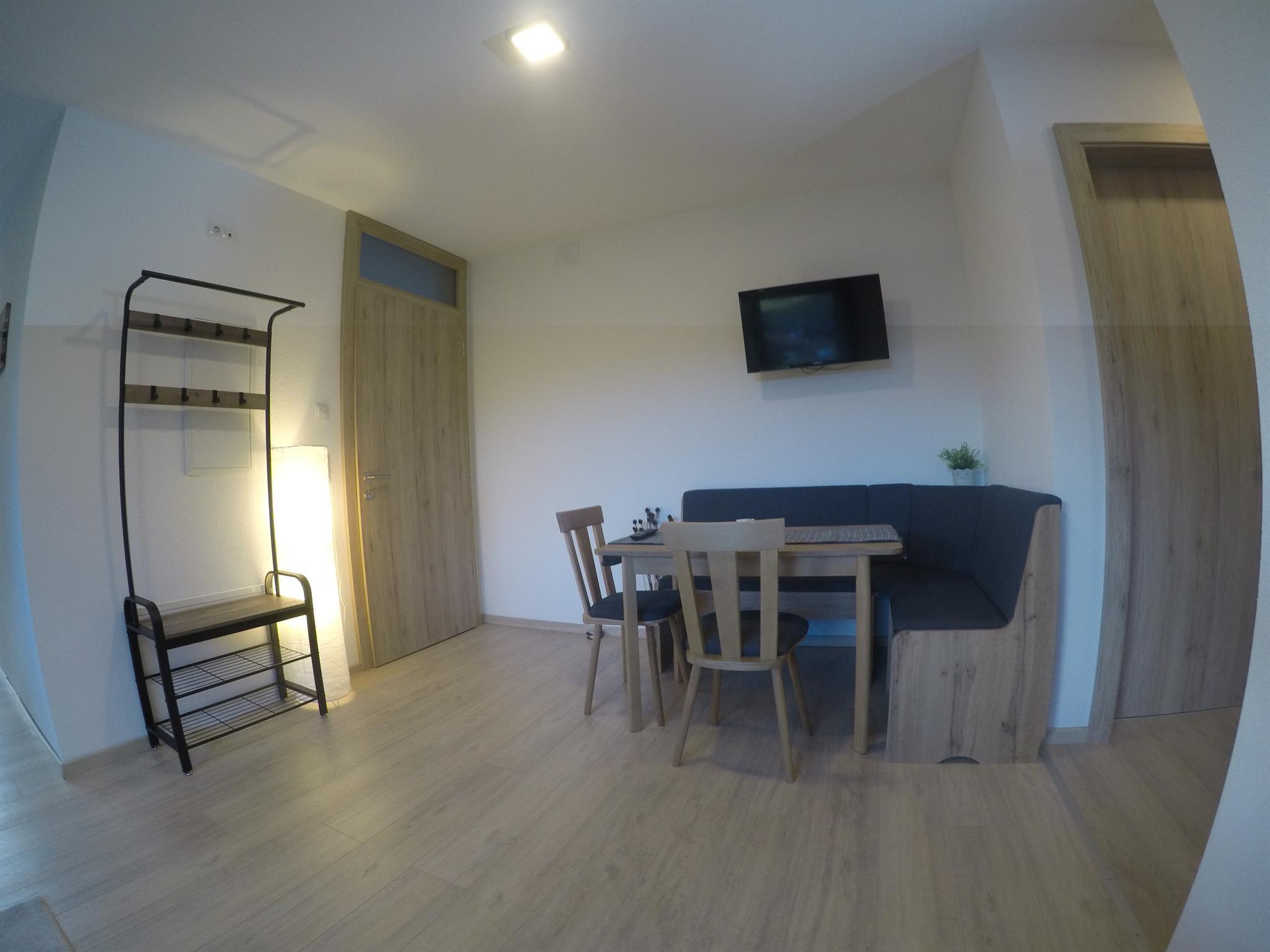 1 Dreibettzimmer, Badezimmer mit Dusche, separates WC, getrennte Wohnküche mit gemütlichem Essbereich, ausziehbarem Sofa (Schlafmöglichkeit für 2 weitere Personen) und voll ausgesattete Küchenzeile mit Backofen, Spülmaschine usw.