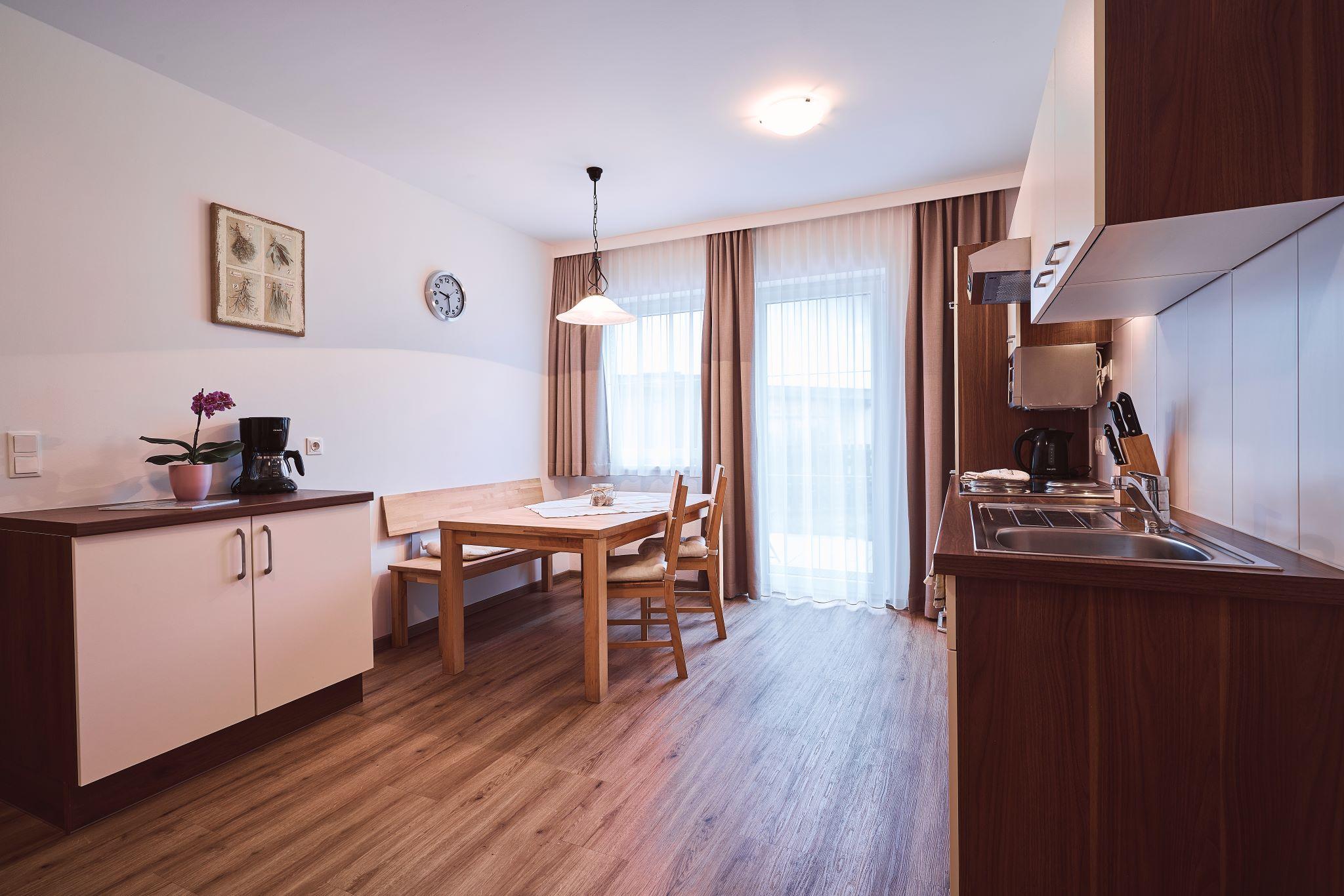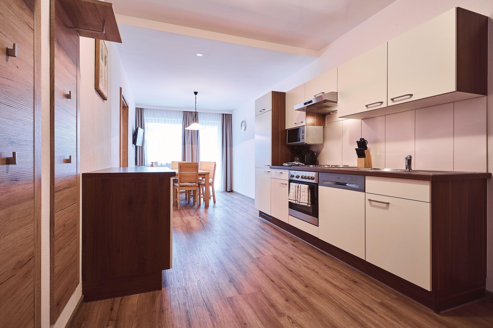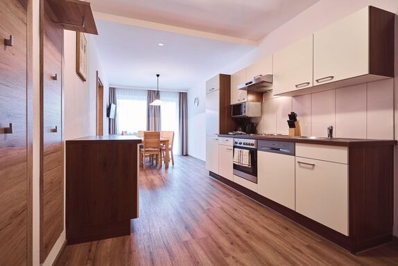 in der großen Wohnküche befindet sich alles nötige wie Backofen, Spülmaschine, 4-Herdplatten, Mikrowelle, Wasserkocher, Kühlschrank,... sowie einen Flat-TV. Genießen Sie die Aussicht auf dem ca. 32m² großen Balkon.