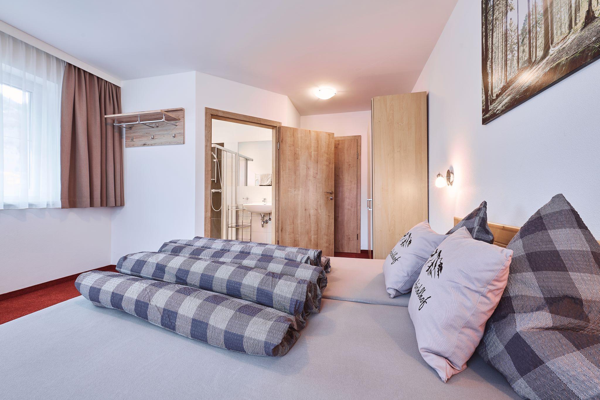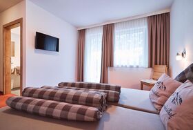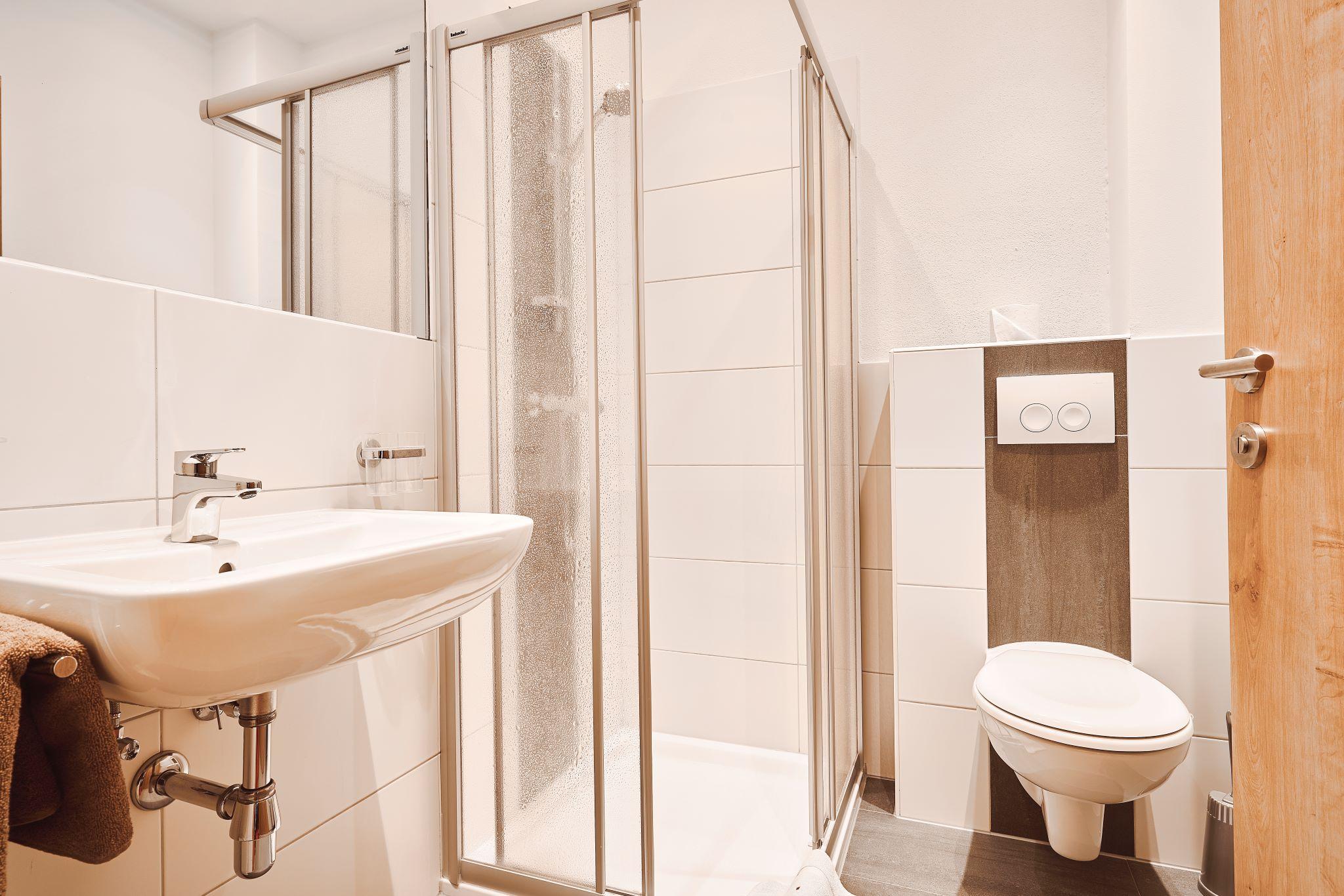 Es gibt drei Doppelzimmer mit jeweils Dusche/WC, je einen Flat-TV und