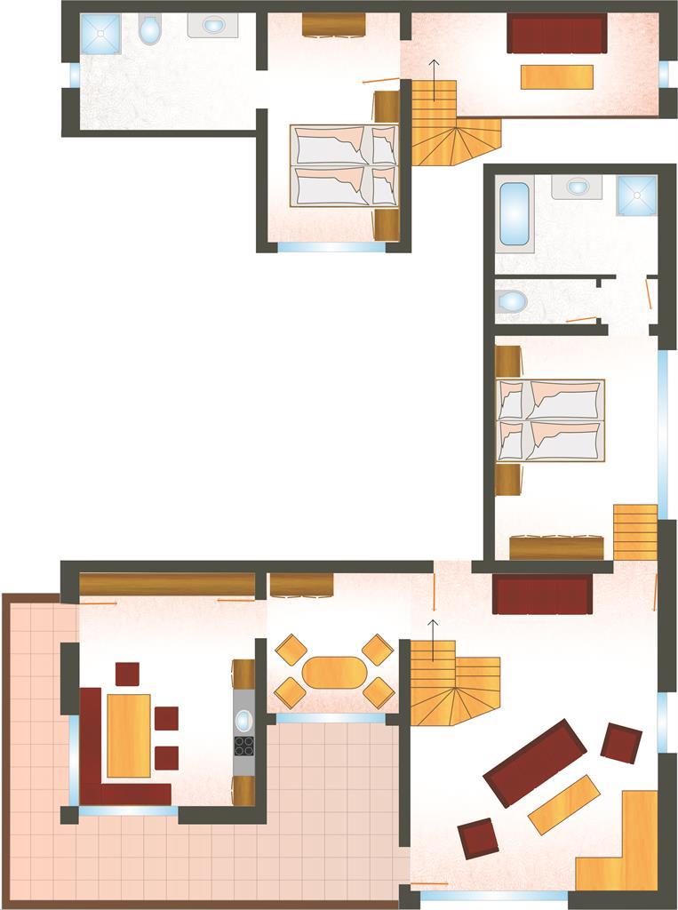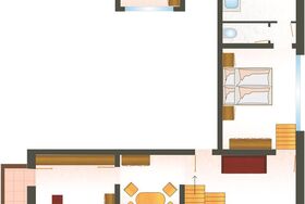 Wohnküche Wohnzimmer (auch Schlafmöglichkeiten für 2 Kinder) Liegewiese Sonnenterrasse und Loggia 1 Schlafzimmer Bad und Dusche, Fön WC separat 2 x Sat-TV mit Radio Telefon mit Weckruf Safe Geschirrspüler Mikrowelle Geschirr Wäsche Gemeinschaftswaschmaschine Bügelbrett und Bügeleisen WLAN kostenlos Gartenmöbel Sonnenliegen Garage Kostenlos