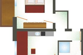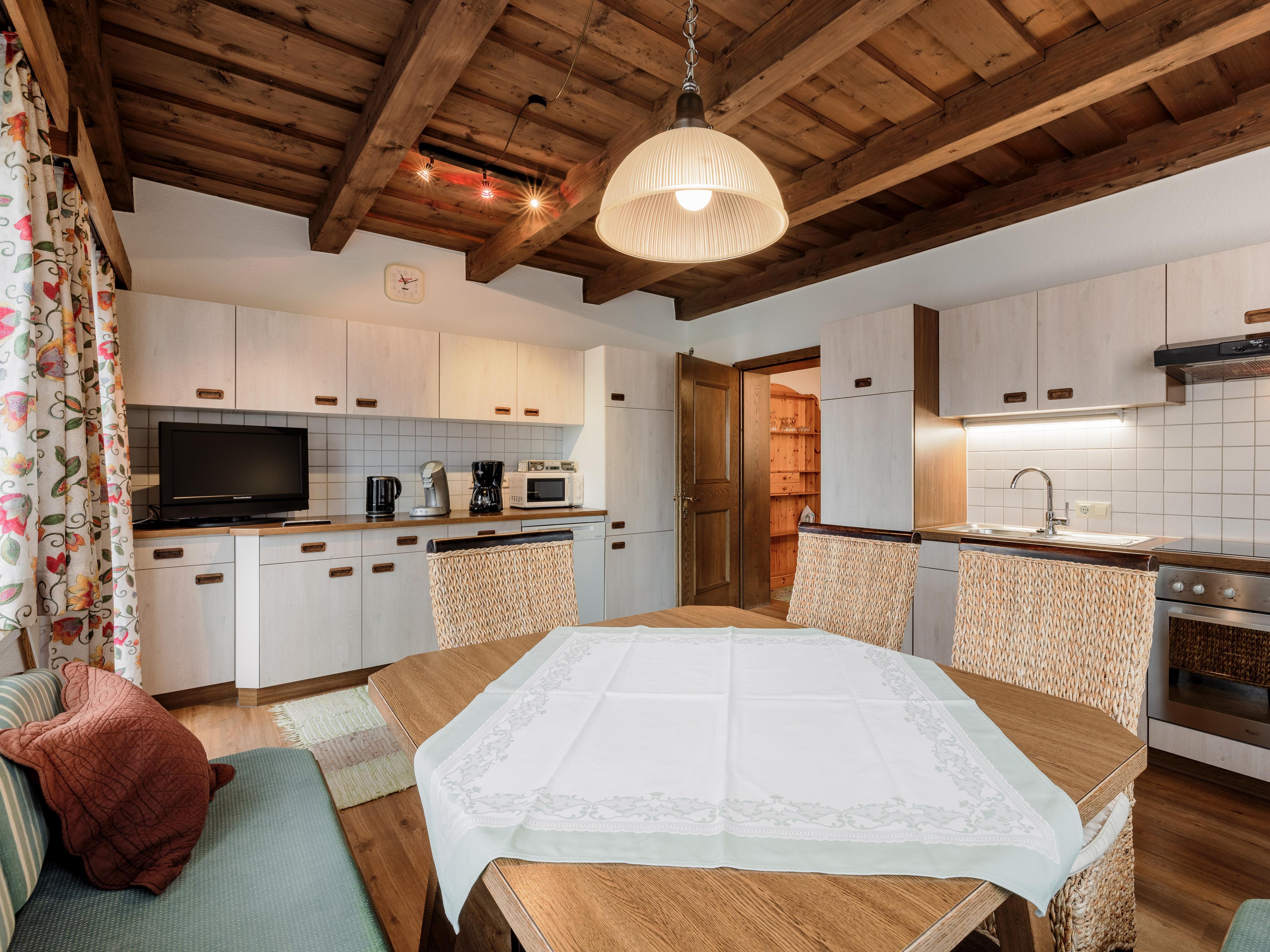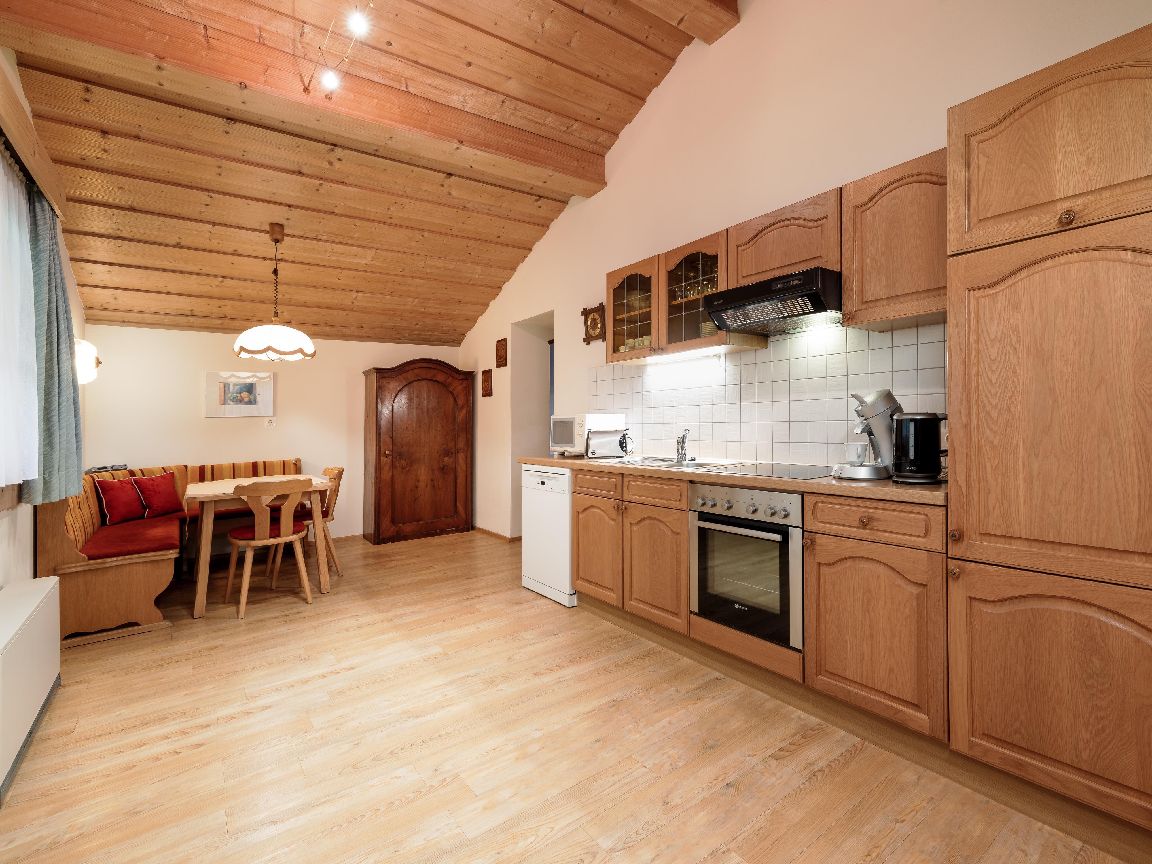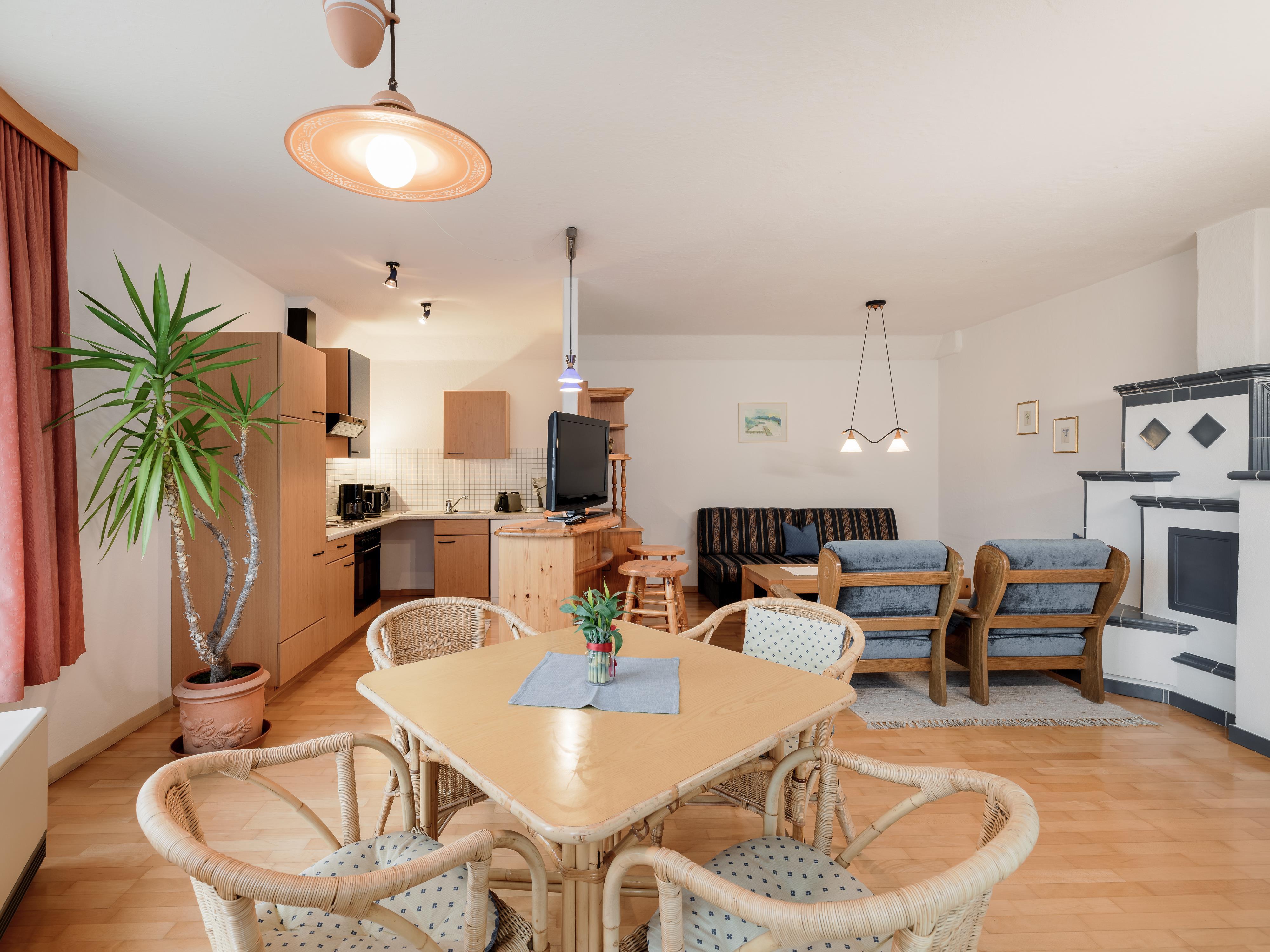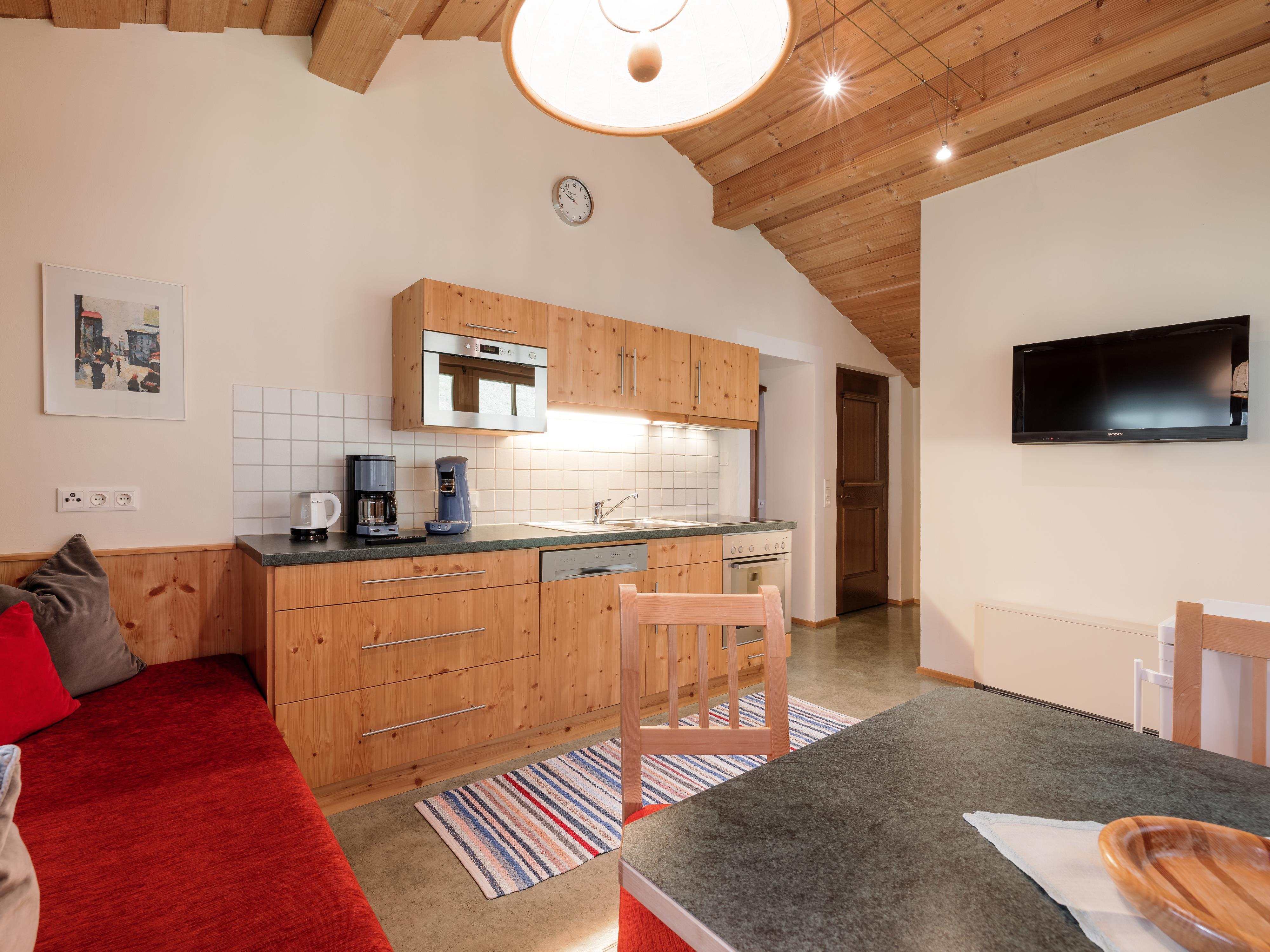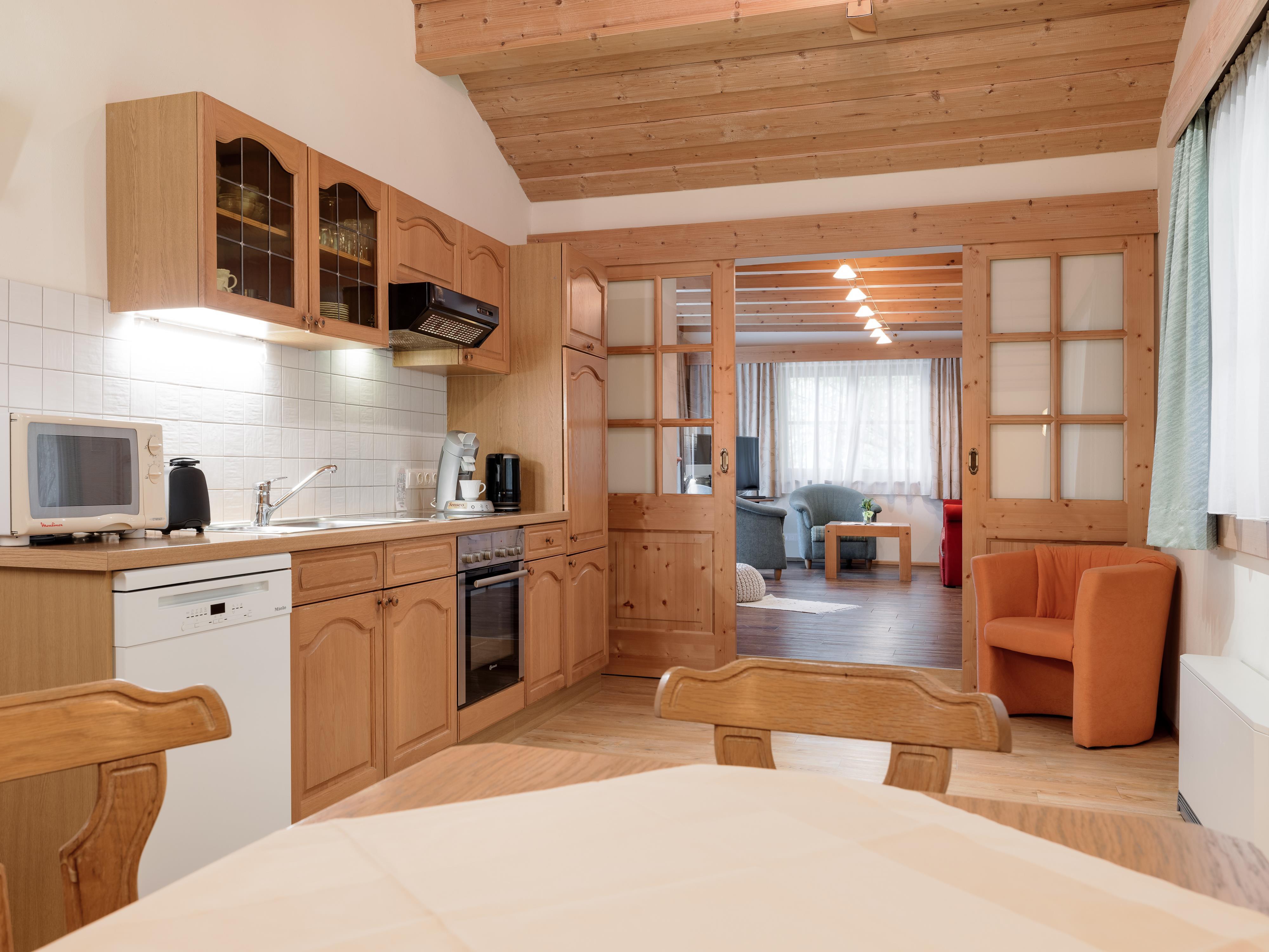 Vorzimmer mit Garderobe Wohn-Küche mit Ausgang auf Terrasse 1 Schlafzimmer mit Südbalkon Dusche, WC, Fön 2 x Sat-TV mit Radio Safe Geschirrspüler Mikrowelle Geschirr Wäsche Gemeinschaftswaschmaschine Bügelbrett und Bügeleisen W-LAN Internetzugang kostenlos Gartenmöbel, Sonnenliegen kosteloser Garagenstellplatz Wellness & Hallenbad im Posthotel Kassl