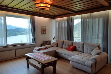Ein fantastischer Fernblick von über 25 km über See und zu den Bergen der Reiseckgruppe und den Hohen Tauern bietet sich von unseren sehr gut ausgestatteten Balkon- und Terrassenzimmern.