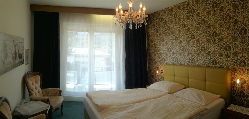 Geräumiges Komfort-Doppelzimmer mit modernem Boxspringbett und Möblierung im Villen-Stil. TV, W-Lan, Vorraum mit Kästen und Garderobe, Badezimmer mit Dusche/WC, Teppichböden. Balkon mit Seeblick.