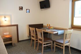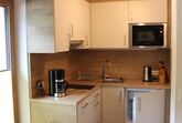 * 1 Wohnküche mit Essbereich, Spülmaschine, Mikrowelle, Kühlschrank, Kaffeemaschine, Wasserkocher, Flat Sat-TV