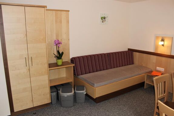 und Sofa, das als Einzelbett für eine 3. Person nützbar ist
