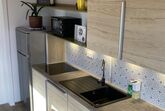 In der Wohnküche befindet sich eine neue Küchenzeile mit Kühl-/Gefrierkombinationsgerät, Induktionskochfeld, Geschirrspüler und Kaffeemaschine sowie ein großzügiger Essplatz am Fenster. Geschirr, Küchenutensilien, Putzmittel und Staubsauger werden zur Nutzung zur Verfügung gestellt. Die Bücher, Gesellschaftsspiele, Puzzle und Spielsachen im Wohnbereich können ebenfalls genützt werden und wir bieten kostenfreies WLAN für unsere Gäste. Im Badezimmer befindet sich eine Waschmaschine.