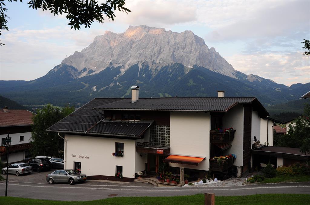 Doppelzimmer mit Blick zum Daniel und zur Zugspitze, Dusche/WC, SAT-TV, Radiowecker, Haarfön und Balkon.
