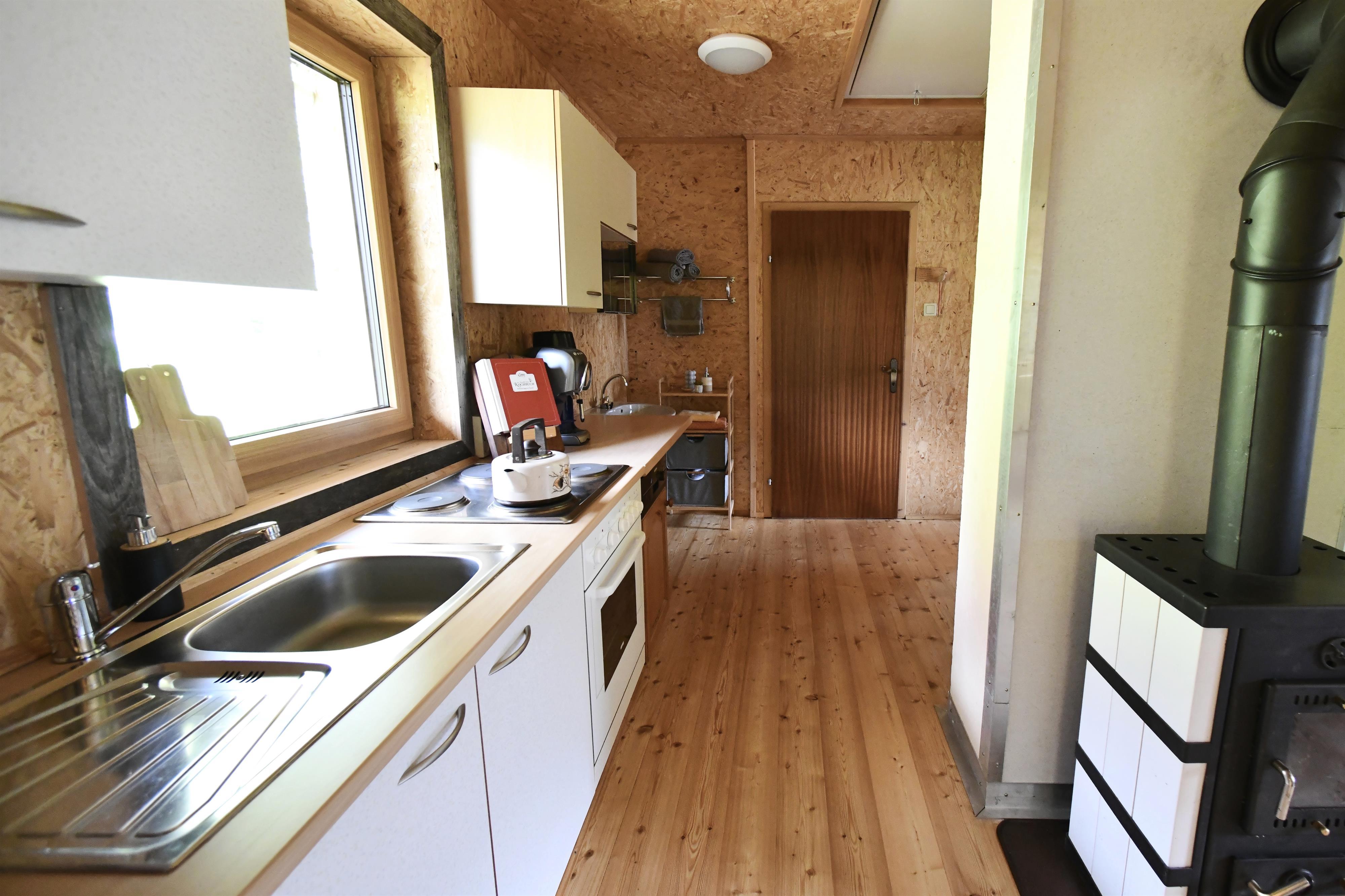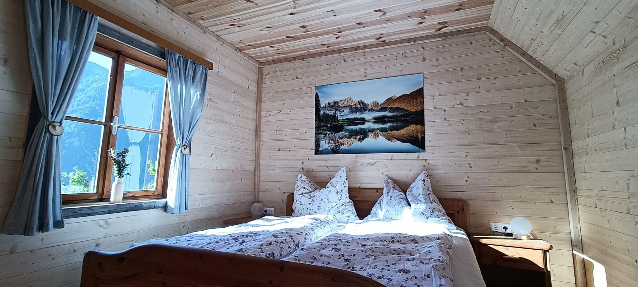 Die 50 m² große und neu renovierte und lichtdurchflutete Almhütte ist ideal für Naturliebhaber sowie Pärchen und verfügt über Warmwasser, einen Holzherd zum Heizen, einen Vorraum, einen Wohn-Essbereich mit ausziehbarer Couch, ein Schlafzimmer mit Doppelbett, ein kleines Badezimmer mit Dusche und WC sowie eine Waschecke. Im Außenbereich steht den Gästen eine Terrasse mit Griller zur Verfügung.