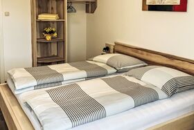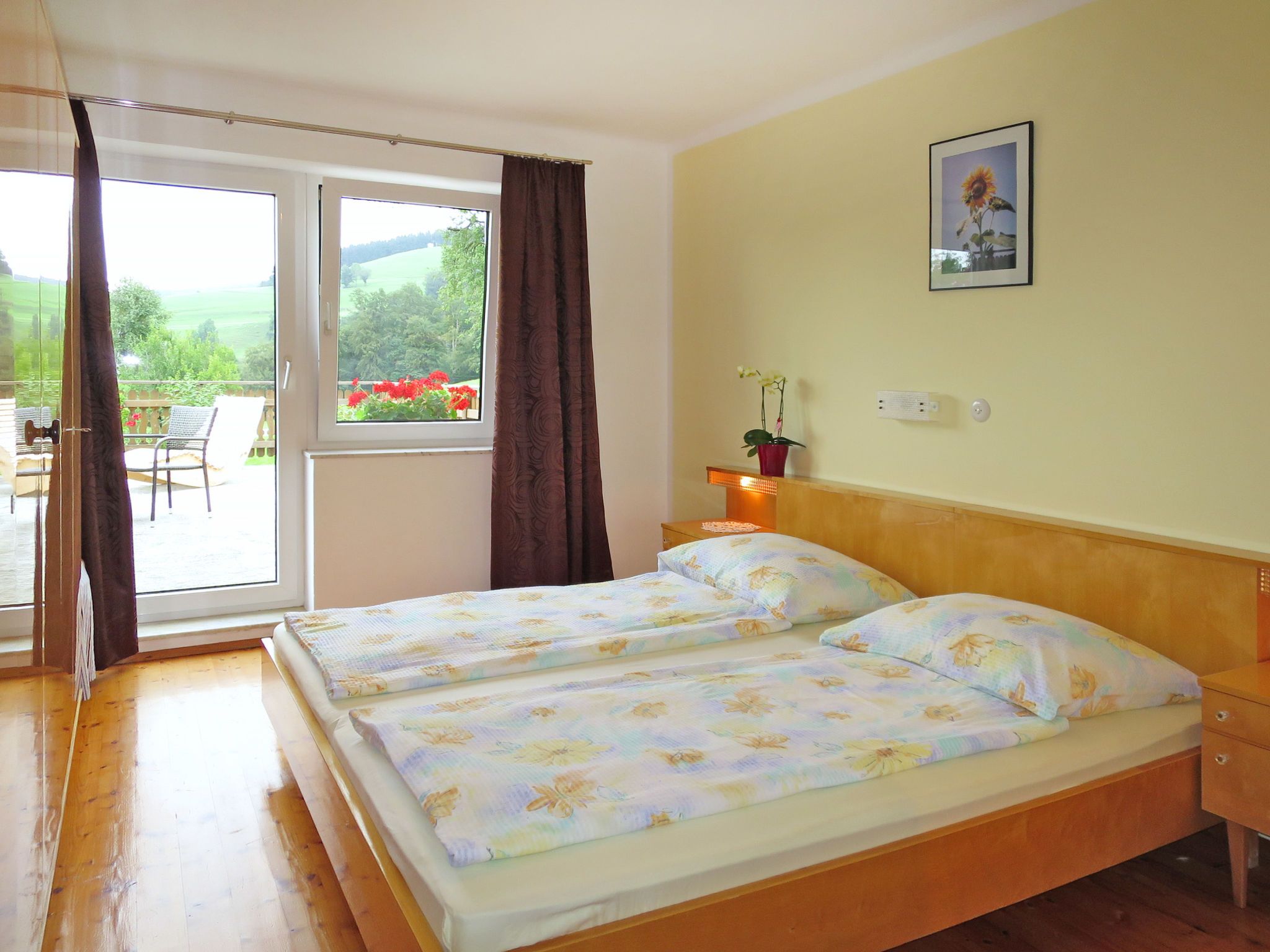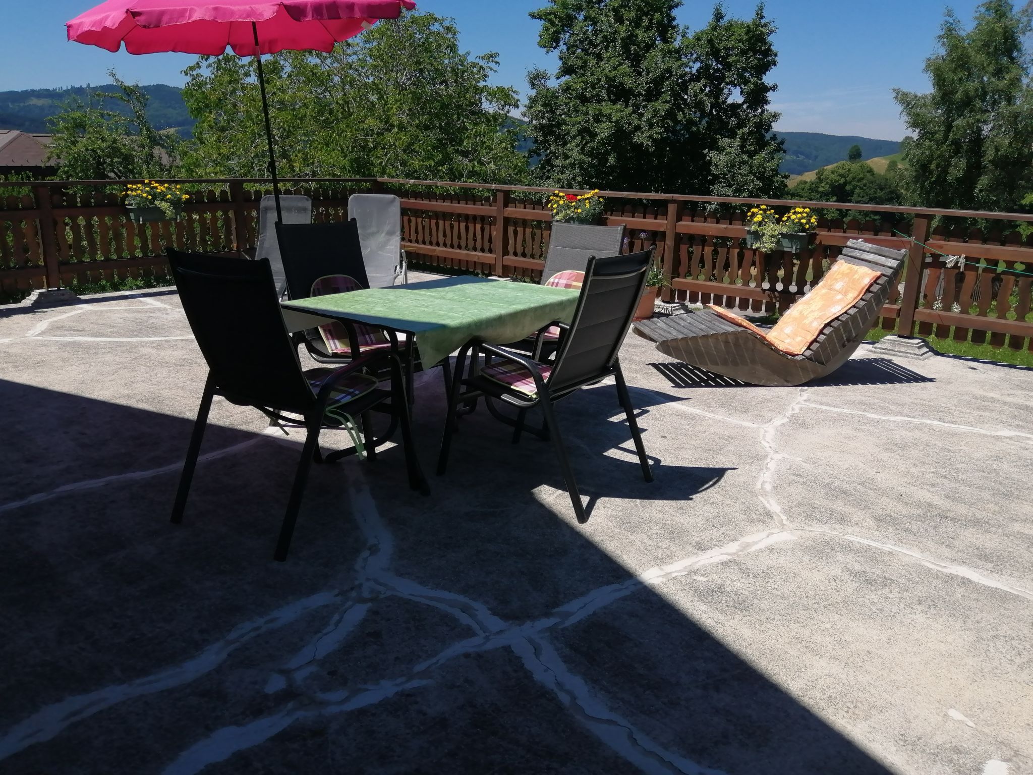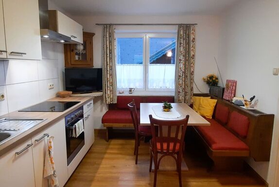 Mayrhofer, 3-Zimmer-Haus 50 m2. Einfach und zweckmässig eingerichtet: 2 Zimmer, jedes Zimmer mit 1 Doppelbett. Ausgang zur Terrasse. Wohnküche (Backofen, 4 Glaskeramikplatten, Toaster, Wasserkocher, elektrische Kaffeemaschine) mit sep. WC, Dusche, TV und Kachelofen. Grosse Terrasse 40 m2. Terrassenmöbel, Liegestühle (3). Herrliche Sicht auf die Berge. Bitte beachten: Nichtraucher-Unterkunft. Rauchmelder.