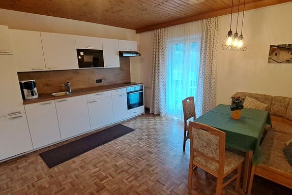 Tanne, 3-Zimmer-Wohnung 65 m2 im 1. Stock. Gemütlich eingerichtet: 1 Zimmer mit 1 Doppelbett. 1 Zimmer mit 1 Doppelbett. Wohnküche (Backofen, 4 Glaskeramikplatten, Toaster, Wasserkocher, Mikrowelle, elektrische Kaffeemaschine) mit 1 Bett (Länge 170 cm), Essecke und Sat-TV. Ausgang zum Balkon. Bad/WC. Heizung. Parkettboden. Balkon. Balkonmöbel. Zur Verfügung: Kinderhochstuhl, Babybett. Internet (Wireless LAN, gratis). Bitte beachten: Nichtraucher-Unterkunft. Rauchmelder.
