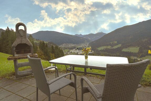 Auer, 4-Zimmer-Doppelhaushälfte 100 m2 auf 2 Stockwerken. Gemütlich und mit viel Holz eingerichtet: Wohnzimmer mit Schwedenofen, Esstisch und Sat-TV. Ausgang zur Terrasse. Offene Küche (Backofen, Geschirrspüler, 4 Glaskeramikplatten, Wasserkocher, elektrische Kaffeemaschine). Sep. WC. Obergeschoss: 3 Doppelzimmer. Dusche, sep. WC, Doppelwaschbecken. Heizung. Holzdielenboden. Terrasse. Terrassenmöbel. Schöne Sicht auf die Berge. Zur Verfügung: Waschmaschine, Kinderhochstuhl, Babybett. Internet (Wireless LAN, gratis). 50406-001396-2020