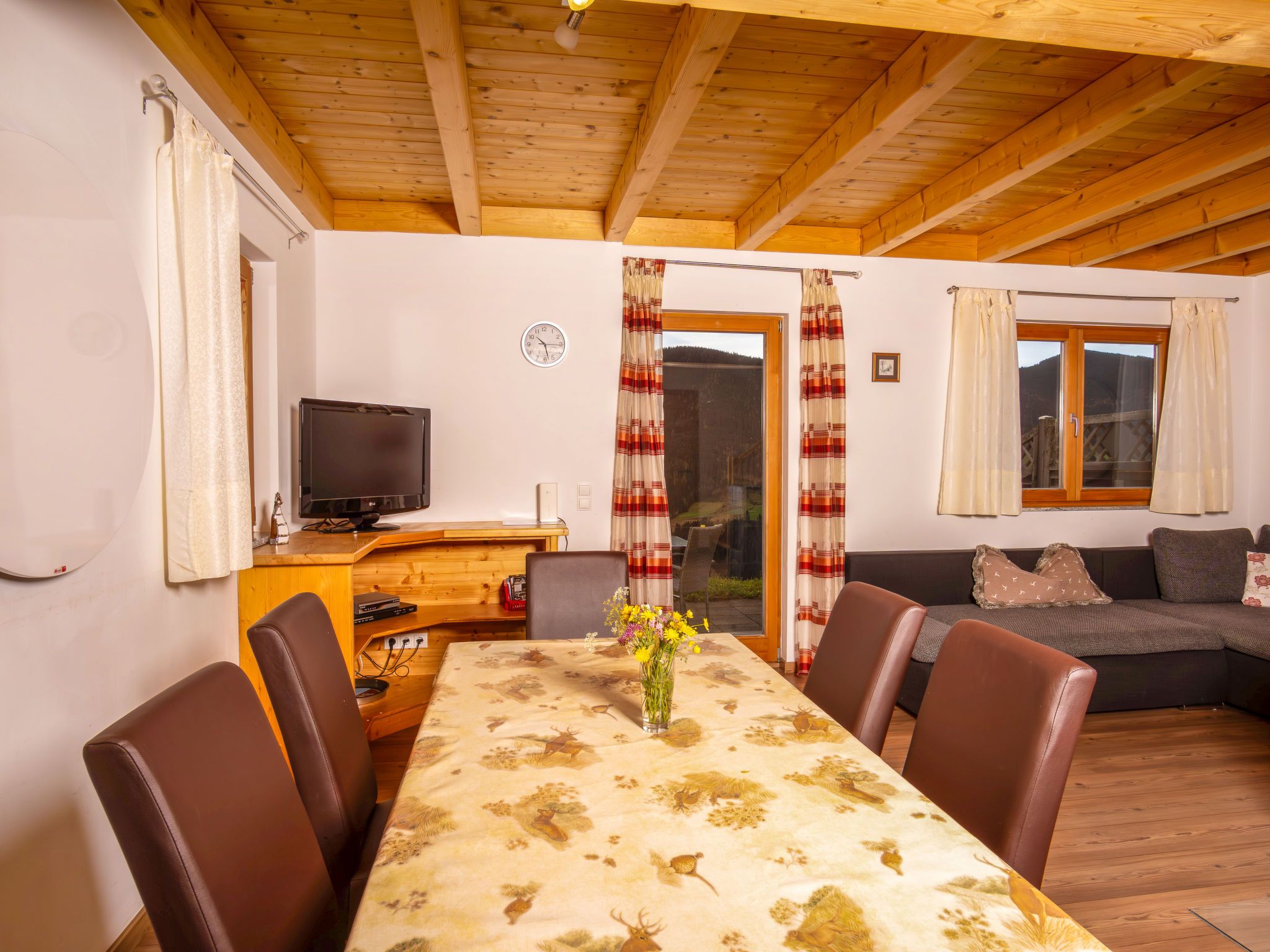 Auer, 8-Zimmer-Haus 200 m2 auf 2 Stockwerken. Gemütlich und mit viel Holz eingerichtet: Wohnzimmer mit Schwedenofen, Esstisch und Sat-TV. Ausgang zur Terrasse. Wohn-/Esszimmer mit Schwedenofen, Esstisch, Küchenblock und Sat-TV. Ausgang zur Terrasse. Offene Küche (Backofen, Geschirrspüler, 4 Glaskeramikplatten, Wasserkocher, elektrische Kaffeemaschine). 2 sep. WC's. Obergeschoss: 6 Doppelzimmer. 2 Duschen, 2 sep. WC's, Doppelwaschbecken. Heizung. Holzdielenboden. 2 Terrassen. Terrassenmöbel. Schöne Sicht auf die Berge. Zur Verfügung: Waschmaschine, Kinderhochstuhl, Babybett. Internet (Wireless LAN, gratis). Dieses Angebot setzt sich zusammen aus den beiden Haushälften AT5531.603.1 und AT5531.603.2 (interne Verbindung im Erdgeschoss). 50406-001396-2020