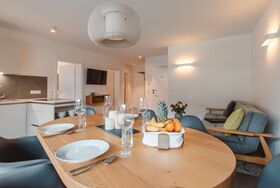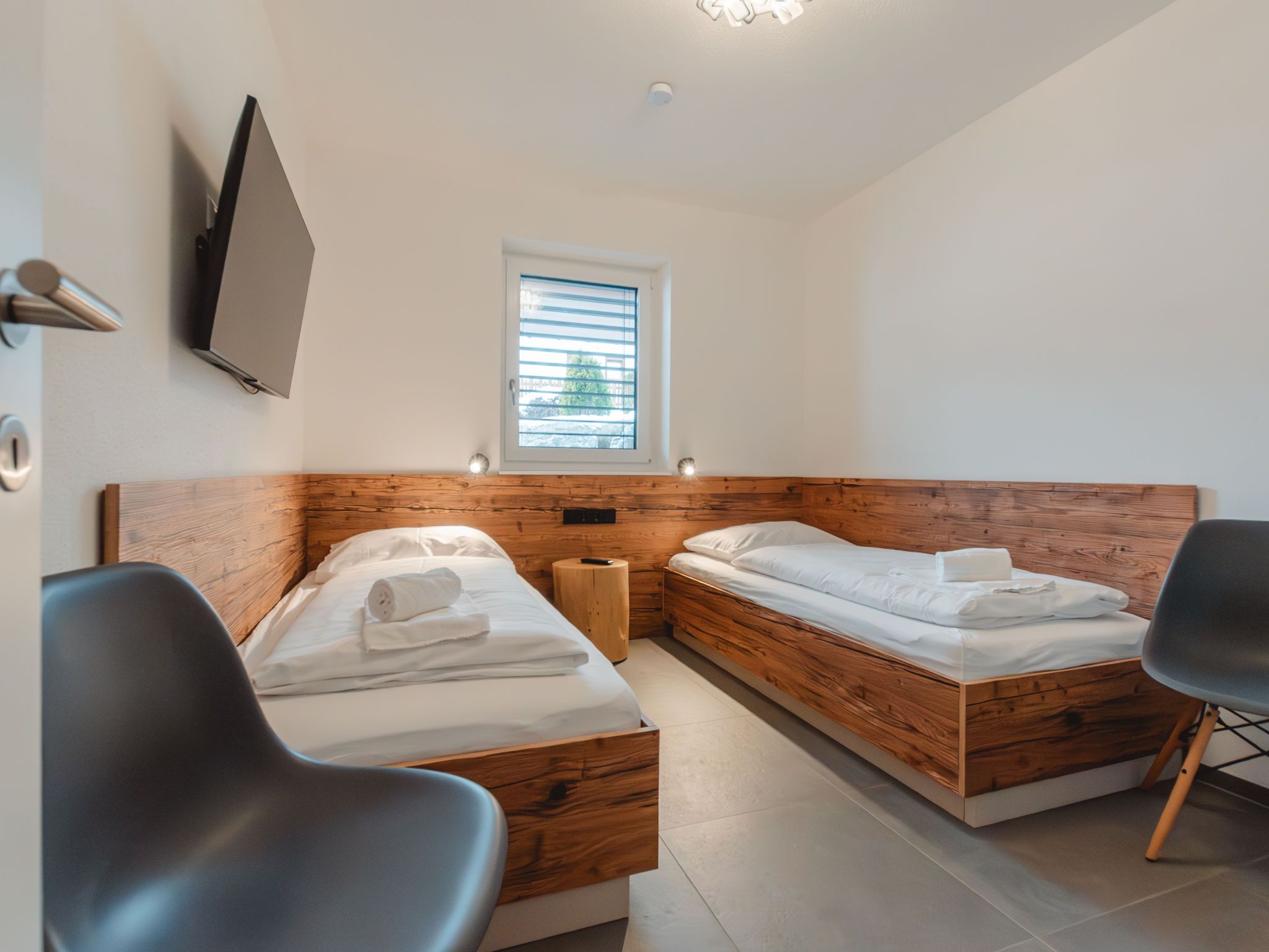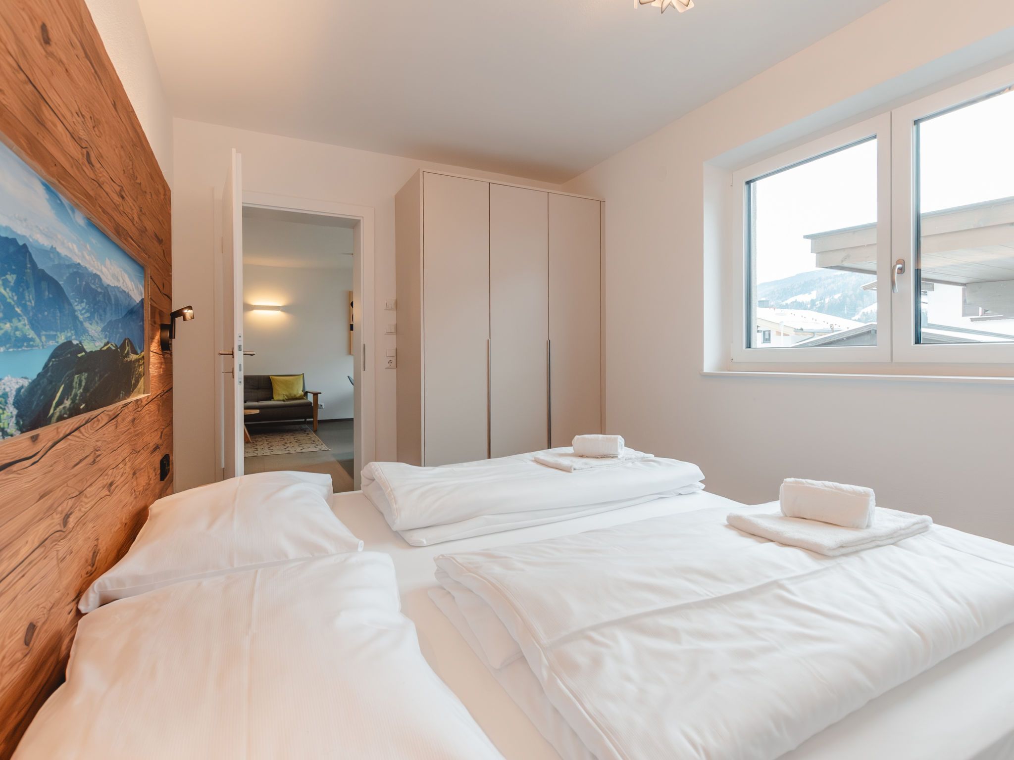 Das Georgen, Schmitten, 3-Zimmer-Wohnung 62 m2, im Erdgeschoss. Komfortabel eingerichtet: Wohn-/Esszimmer mit 1 Doppeldiwanbett, Esstisch und TV (Flachbildschirm). Ausgang zur Terrasse. 1 Doppelzimmer. 1 Zimmer mit 2 Betten und TV (Flachbildschirm). Offene Küche (Geschirrspüler, 4 Glaskeramikplatten, Toaster, Mikrowelle, elektrische Kaffeemaschine). Dusche/WC, sep. WC. Fussbodenheizung. Terrasse. Terrassenmöbel. Zur Verfügung: Bügeleisen, Babybett. Internet (WLAN). Parkplatz (überdacht, 1 Auto). Bitte beachten: Nichtraucher-Unterkunft. 1 Haustier/Hund erlaubt. Rauchmelder. Bei Belegung mit weniger Personen als der maximalen Personenzahl stehen nicht alle Wohneinheiten zur Verfügung. 50602-000341-2020