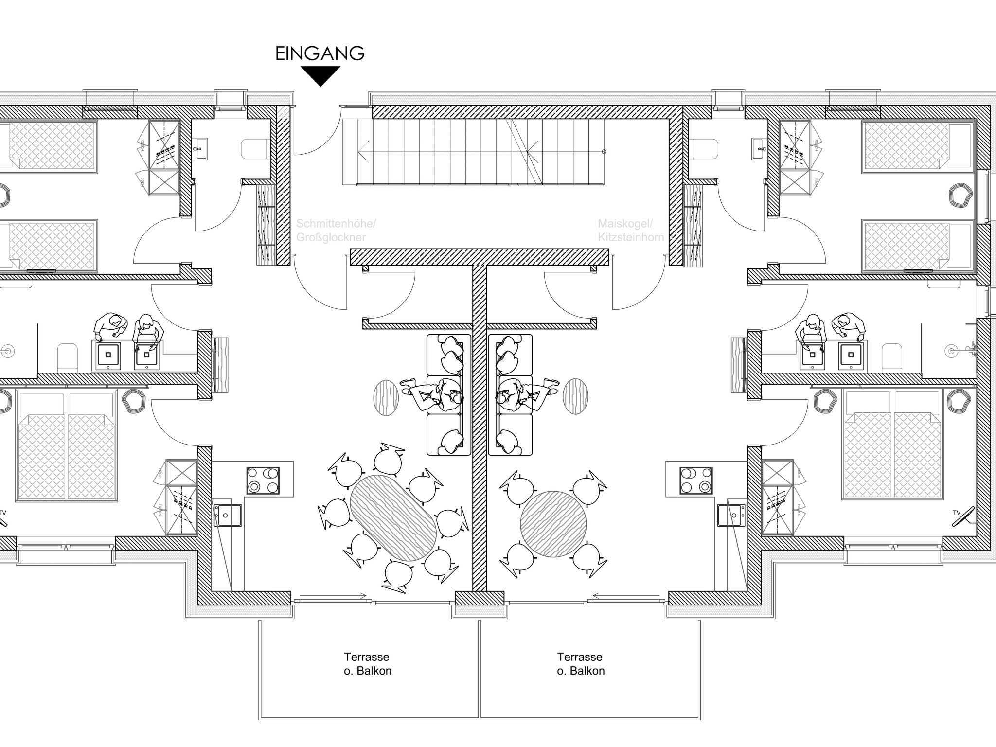 Das Georgen, Schmitten+Maiskogel, 6-Zimmer-Wohnung 124 m2, im Erdgeschoss. Komfortabel eingerichtet: Wohn-/Esszimmer mit 1 Doppeldiwanbett und TV (Flachbildschirm). Ausgang zur Terrasse. 2 Doppelzimmer. 2 Zimmer, jedes Zimmer mit 2 Betten und TV (Flachbildschirm). Wohn-/Schlafzimmer mit 1 Doppeldiwanbett, Esstisch und TV (Flachbildschirm). Ausgang zur Terrasse. Offene Küche (Geschirrspüler, 4 Glaskeramikplatten, Toaster, Mikrowelle, elektrische Kaffeemaschine) mit Esstisch. 2 Duschen/WC, 2 sep. WC's. Fussbodenheizung. 2 Terrassen. Terrassenmöbel. Zur Verfügung: Bügeleisen, Babybett. Internet (WLAN). Parkplatz (überdacht, 2 Autos). Bitte beachten: Nichtraucher-Unterkunft. 1 Haustier/Hund erlaubt. Rauchmelder. Keine interne Verbindung zwischen den separaten Wohneinheiten. Dieses Angebot setzt sich zusammen aus den Wohnungen AT5671.616.1 und AT5671.616.2. 50602-000341-2020