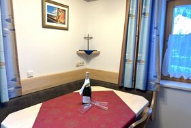 5-Zimmer-Haus 130 m2 auf 2 Stockwerken. Hell, teilweise renoviert, gemütlich eingerichtet: Wohn-/Schlafzimmer mit 1 Diwanbett, Essecke, Kabel-TV und Radio. 1 Zimmer mit 1 Diwanbett, 1 Doppelbett und Bad/WC. Offene Küche (4 Kochplatten, Backofen, Geschirrspüler, Toaster, Mikrowelle, elektrische Kaffeemaschine) mit Holzofen. Obergeschoss: Wohn-/Schlafzimmer mit 1 Doppeldiwanbett, Essecke und Kabel-TV. 1 Zimmer mit 1 Doppeldiwanbett und 1 Doppelbett. 1 Doppelzimmer. Offene Küche (2 Kochplatten, Mikrowelle, elektrische Kaffeemaschine). Dusche/WC. Ölheizung. (4). Zur Verfügung: Safe, Kinderhochstuhl, Babybett. Internet (Wireless LAN, gratis). Bitte beachten: Nichtraucher-Haus. Maximal 1 Haustier/Hund erlaubt. Bei Belegung mit weniger Personen als der maximalen Personenzahl stehen nicht alle Wohneinheiten zur Verfügung. 50604-001029-2020