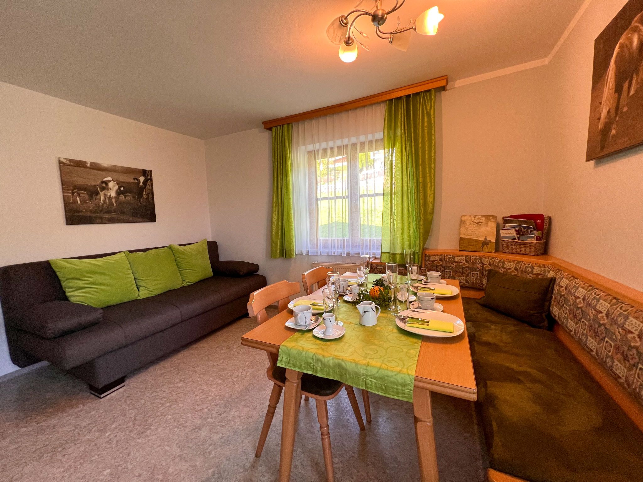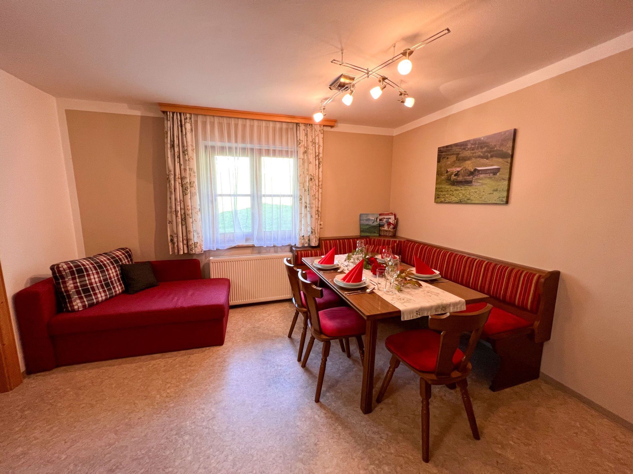 Bauernhof Gasteg (L), 6-Zimmer-Wohnung 120 m2 im 1. Stock. Einfach und gemütlich eingerichtet: 1 Zimmer mit 1 Doppelbett. 1 Zimmer mit 1 x 2 Etagenbetten. 1 Zimmer mit 1 Bett und 1 Doppelbett. 1 Zimmer mit 1 Diwanbett und 1 Doppelbett. Wohn-/Esszimmer mit Essecke, Küchenblock und Kabel-TV. Ausgang zum Balkon. Wohnküche (4 Kochplatten, Backofen, Geschirrspüler, Wasserkocher, elektrische Kaffeemaschine) mit Esstisch, Kabel-TV. Ausgang zum Balkon. Bad/Dusche, Dusche/WC, sep. WC. Heizung. Zur Verfügung: Kinderhochstuhl, Babybett. Internet (WLAN, gratis). Bitte beachten: Nichtraucher-Unterkunft. Maximal 1 Haustier/Hund erlaubt. Rauchmelder. Keine interne Verbindung zwischen den separaten Wohneinheiten. Dieses Angebot setzt sich zusammen aus den Wohnungen AT5710.662.1 und AT5710.662.2. 50616-001093-2020