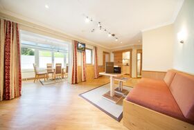 XL-Appartement mit ca. 100 m ² Wohlfühlfläche: 3 Doppelzimmer (1 Schlafzimmer mit Badezimmer liegt außerhalb vom Appartement, gleich nebenan mit separatem Eingang) mit Kabel Flat-TV, Safe; 3 Badezimmer mit Dusche/WC, Kosmetikspiegel, Föhn, vollausgestattete Wohnküche mit großzügigen Essbereich und gemütliches Sofa (Schlafmöglichkeit für 2 weitere Personen), Flat-TV; Balkon mit herrlicher Aussicht (teilweise auch zusätzlich mit Wintergarten).