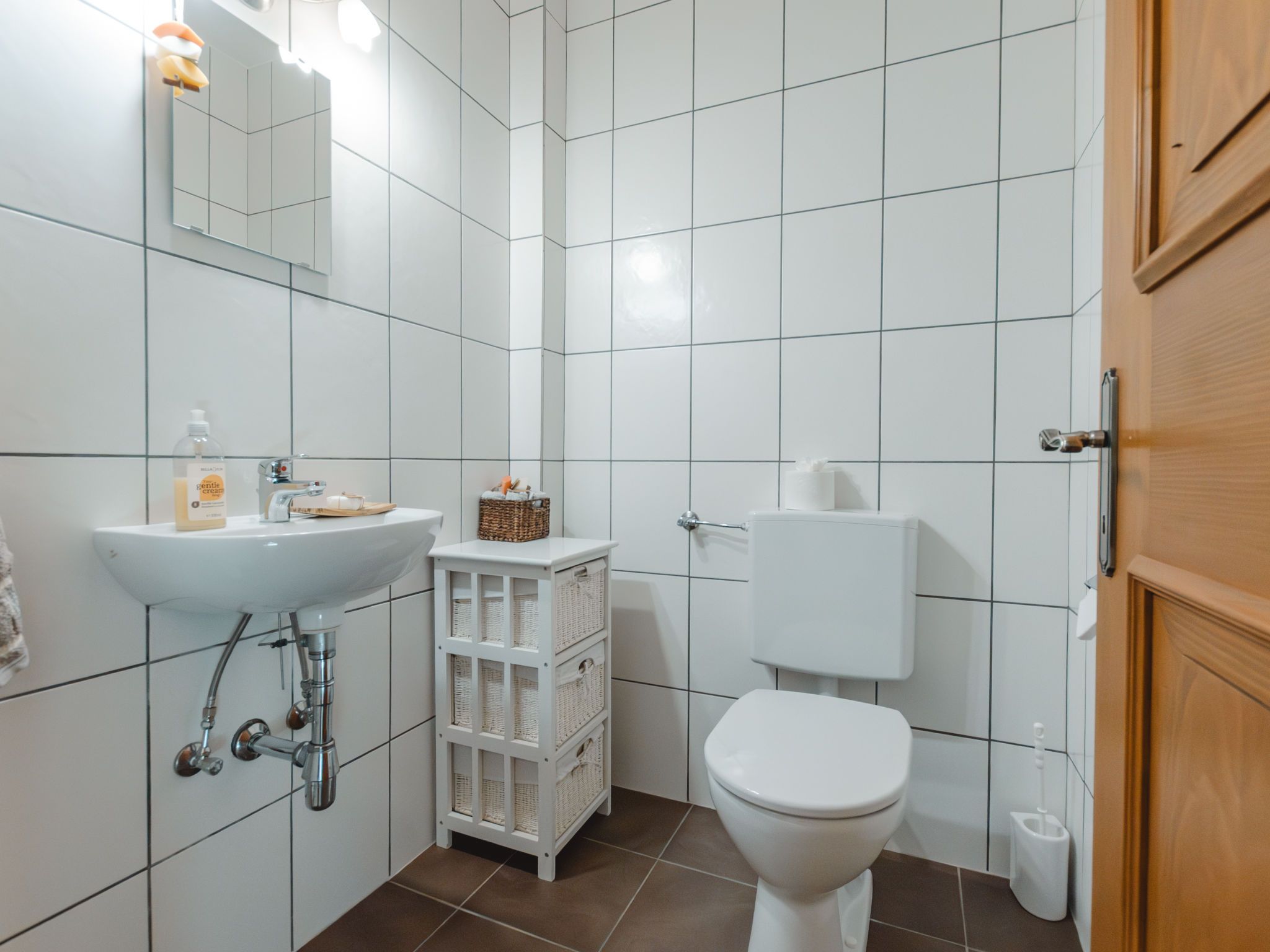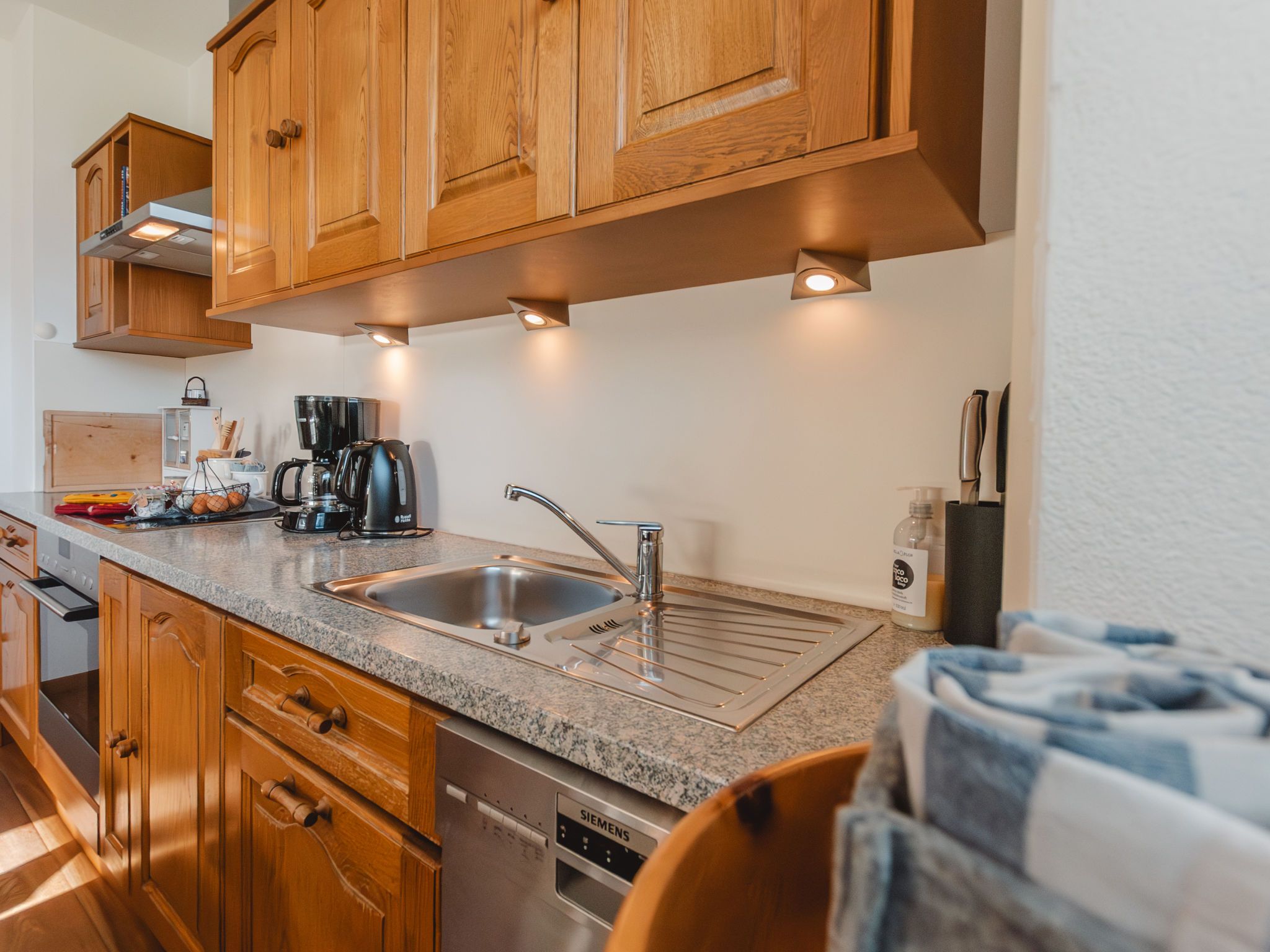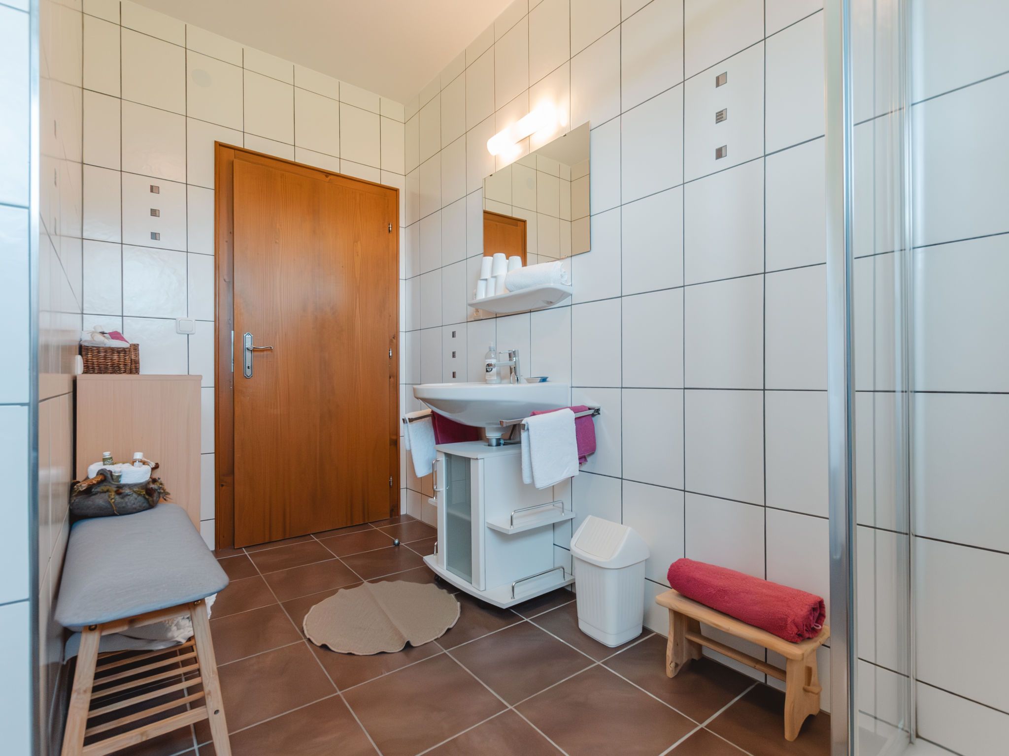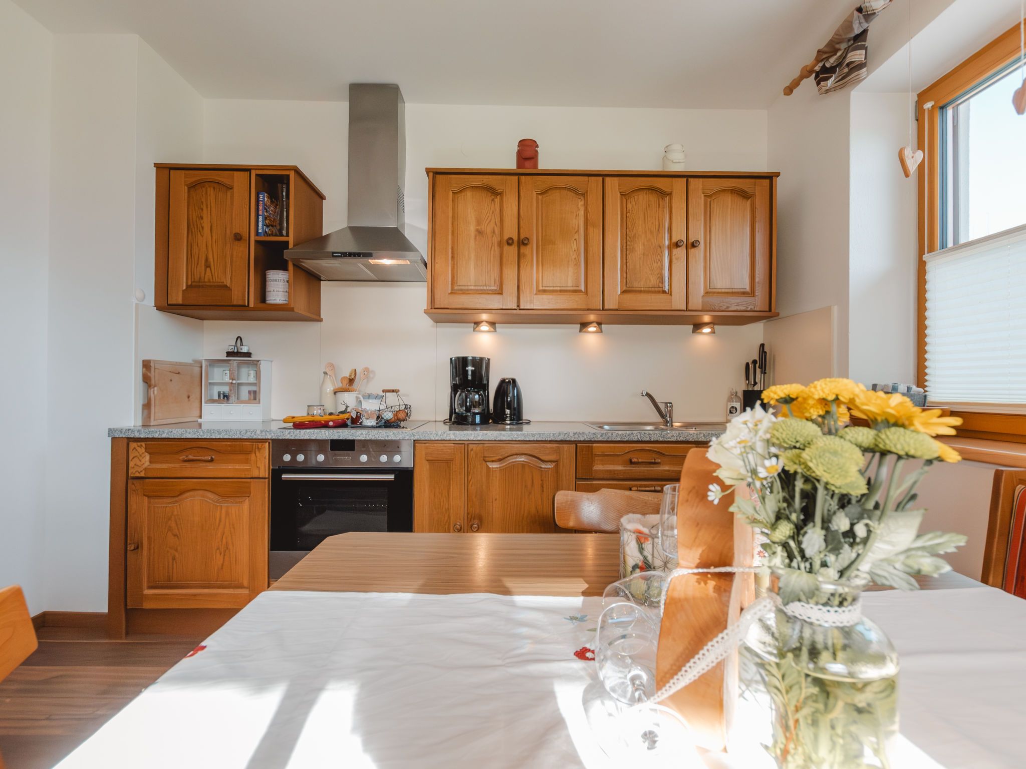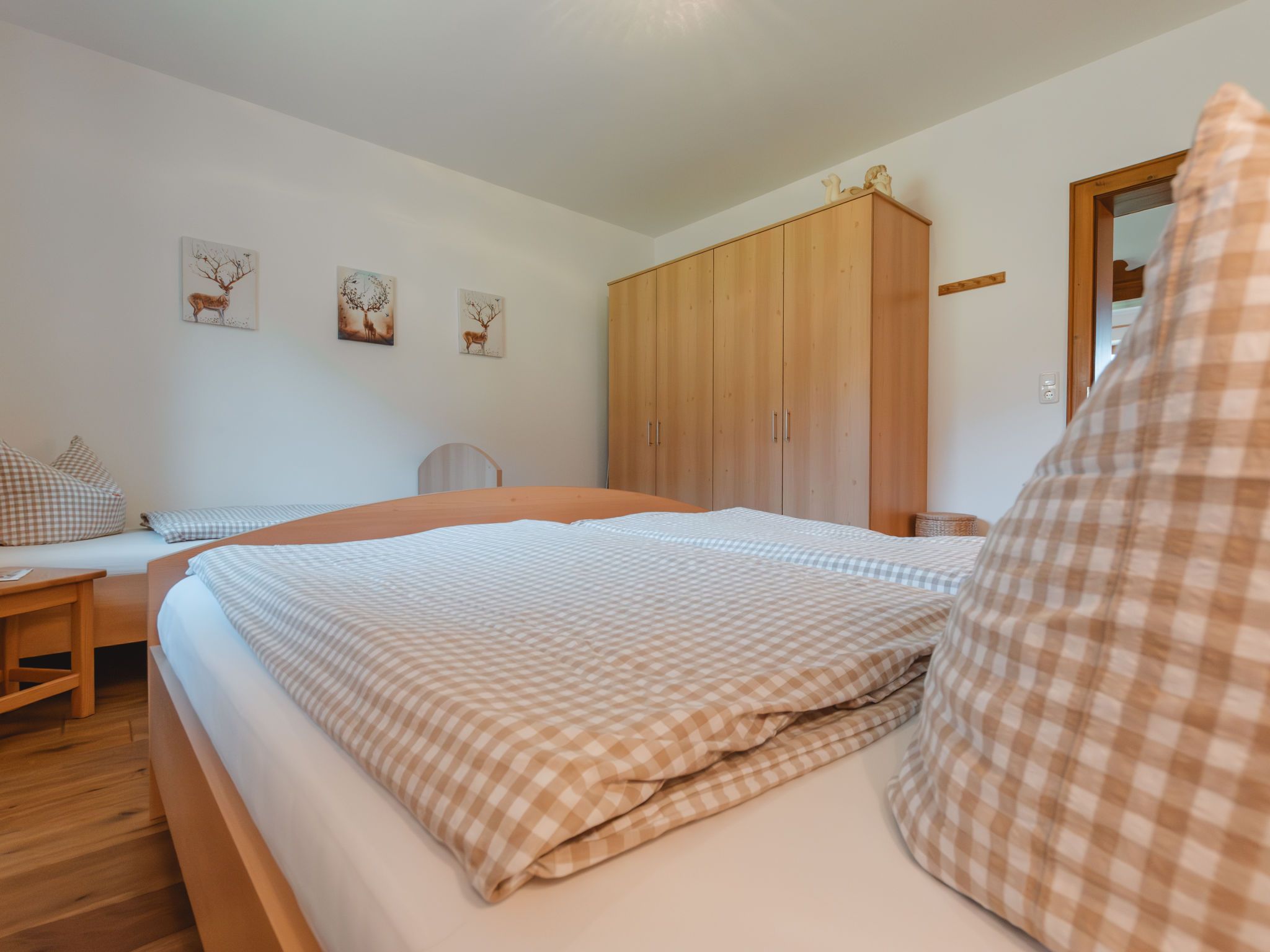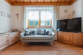 Erlachhof, 3-Zimmer-Haus 80 m2, im Erdgeschoss. Hell, gemütlich eingerichtet: Wohn-/Esszimmer mit Esstisch, Kabel-TV und Kachelofen. 1 Zimmer mit 1 Doppelbett. 1 Zimmer mit 1 Bett und 1 Doppelbett. Küche (Backofen, Geschirrspüler, 4 Glaskeramikplatten, Toaster, Wasserkocher, Mikrowelle, elektrische Kaffeemaschine, Racletteofen) mit Esstisch. Bad/Dusche, sep. WC. Heizung. Parkettboden. Zur Verfügung: Kinderhochstuhl, Babybett. Internet (Wireless LAN, gratis). Bitte beachten: Nichtraucher-Unterkunft. 50615-000239-2020