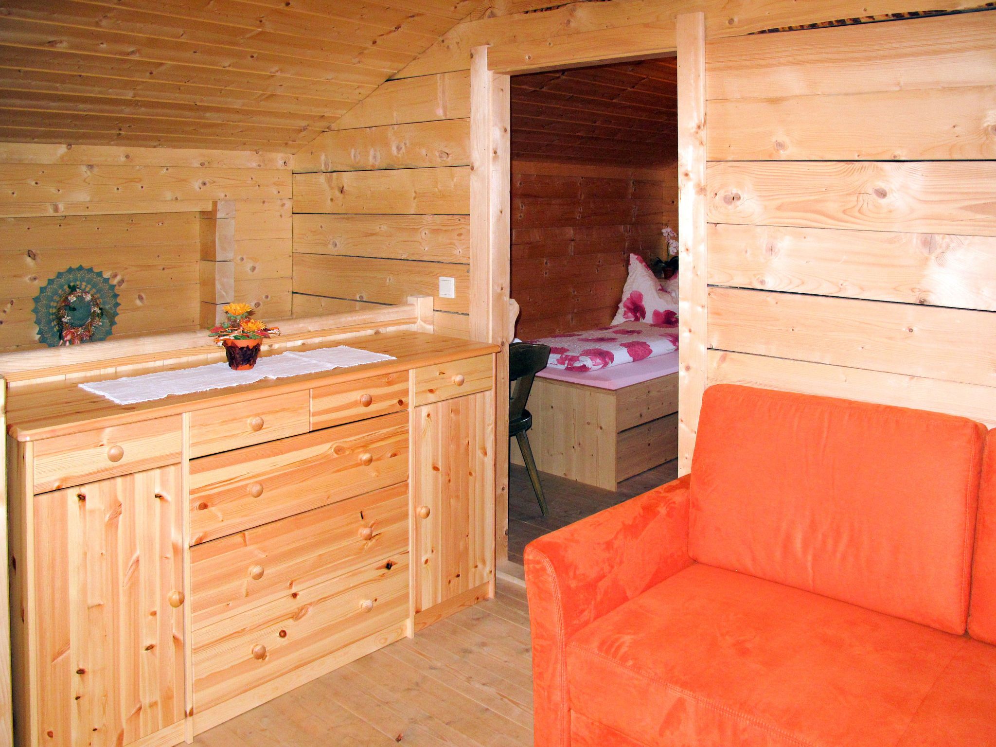Sturmbachhütte, 3-Zimmer-Haus 73 m2 auf 2 Stockwerken. Geschmackvoll und mit viel Holz eingerichtet: Wohn-/Esszimmer mit Schwedenofen, Esstisch und Sat-TV. 1 Zimmer mit 1 Doppelbett. Küche (2 Kochplatten, Toaster, Wasserkocher, Mikrowelle, elektrische Kaffeemaschine, Racletteofen) mit Esstisch, Holzofen. Dusche/WC. Heizung nicht in allen Räumen. Obergeschoss: offener Eingang mit 1 Doppeldiwanbett. 1 Zimmer mit 2 Betten. Ausgang zum Balkon. Holzdielenboden. Terrasse. Terrassenmöbel, Gartengrill, Liegestühle, Abstellkammer. Panoramasicht. Zur Verfügung: Internet (Wireless LAN, gratis). Bitte beachten: Nichtraucher-Unterkunft. Rauchmelder. 50624-000306-2020