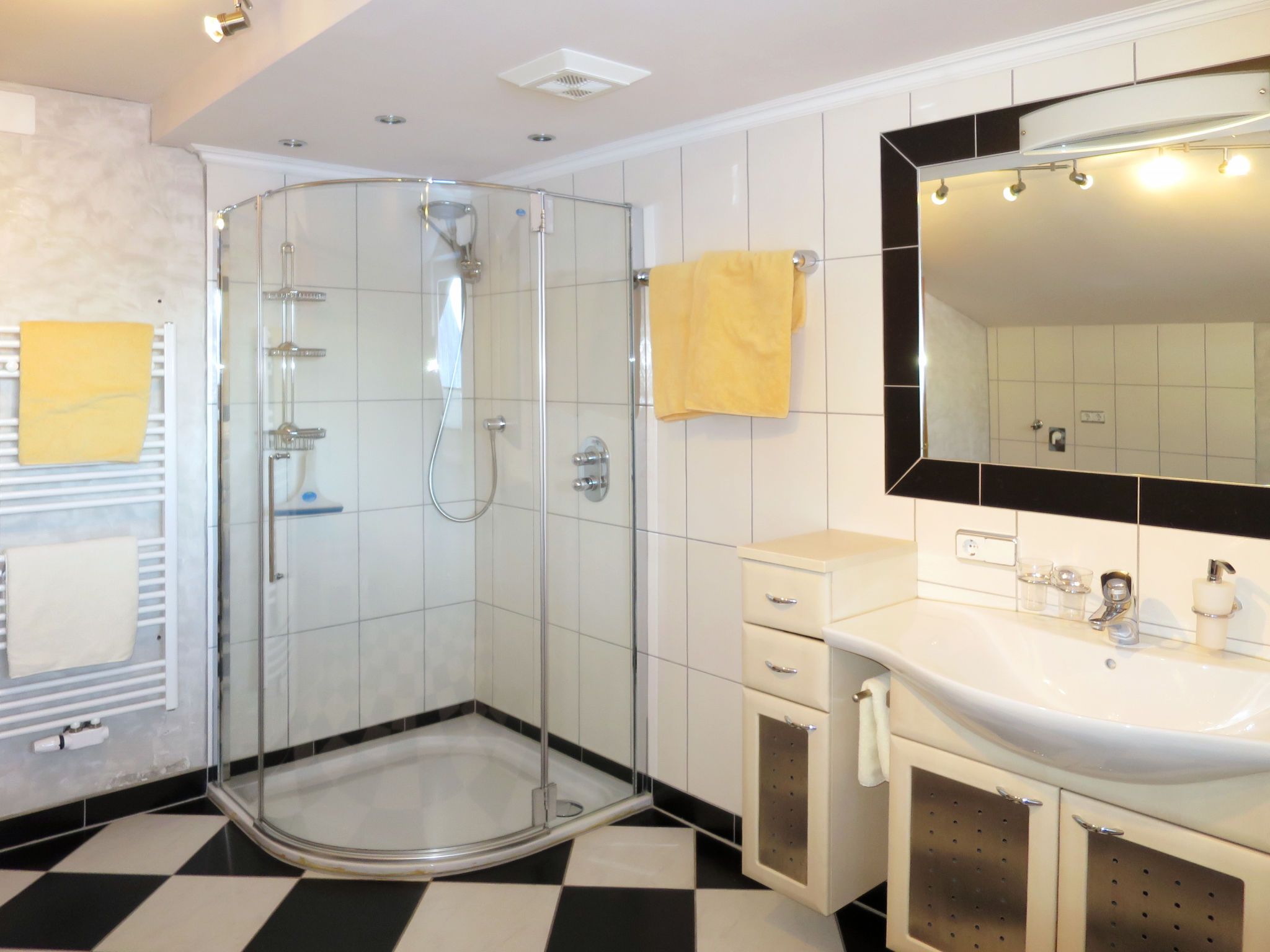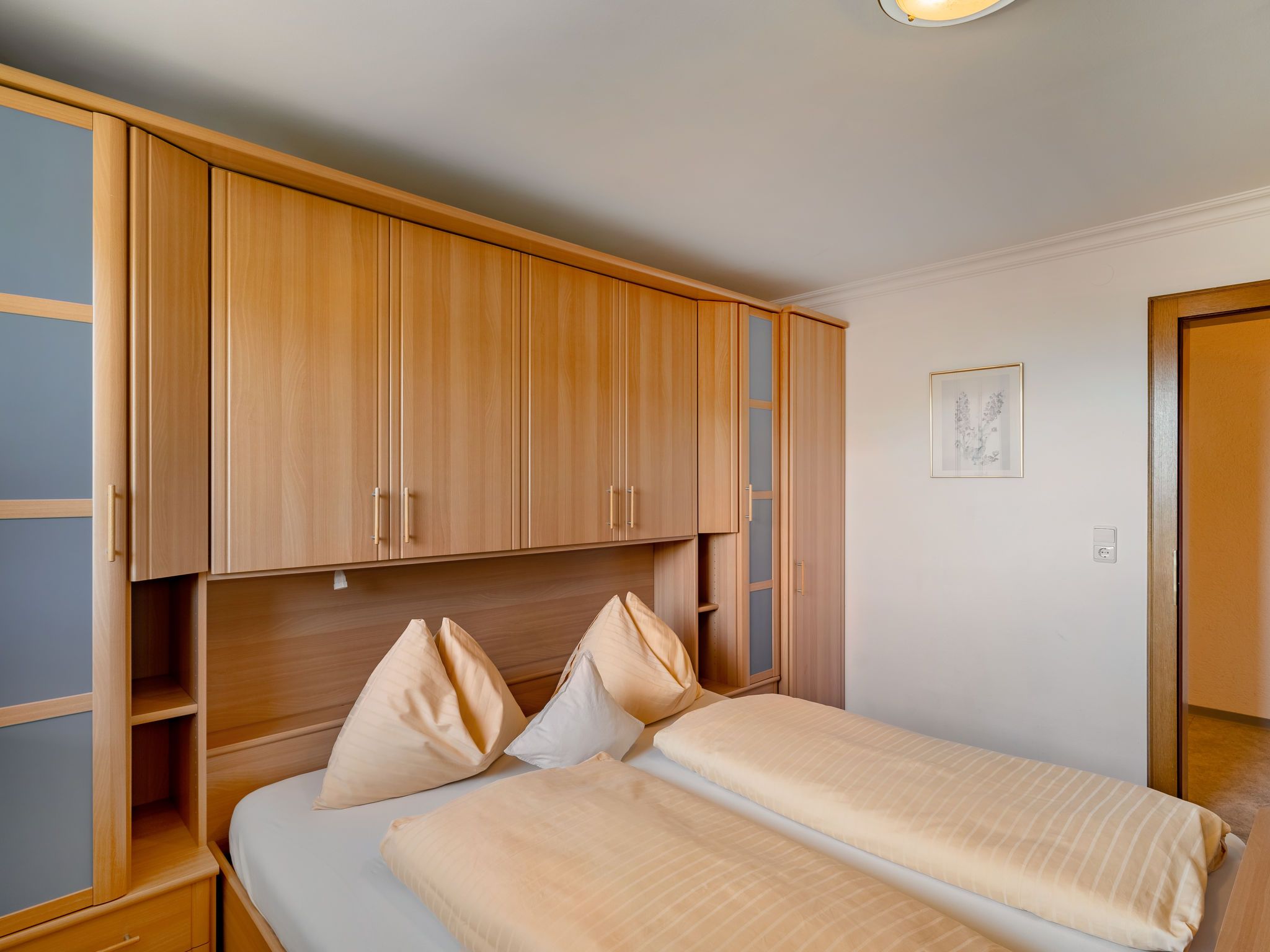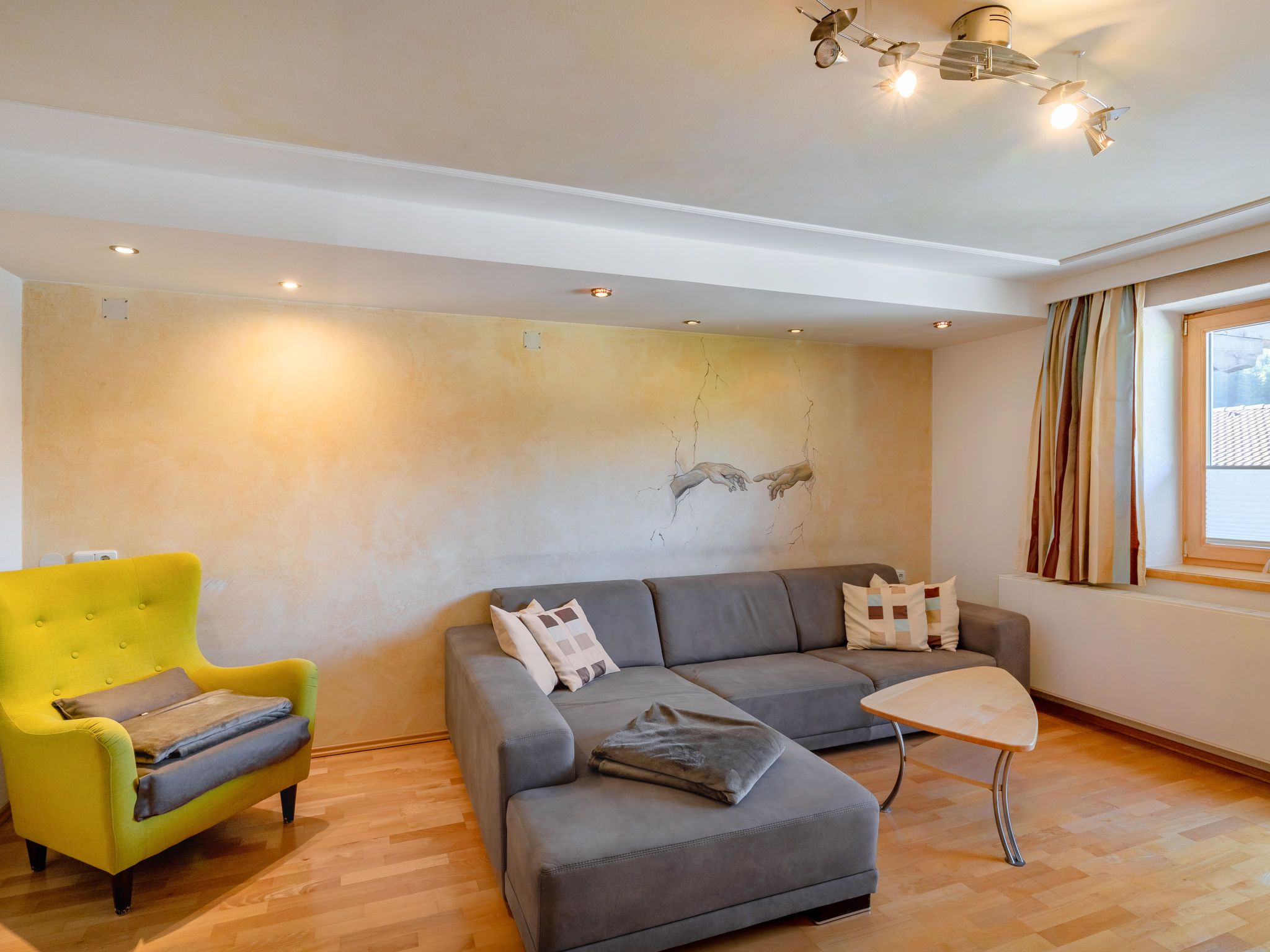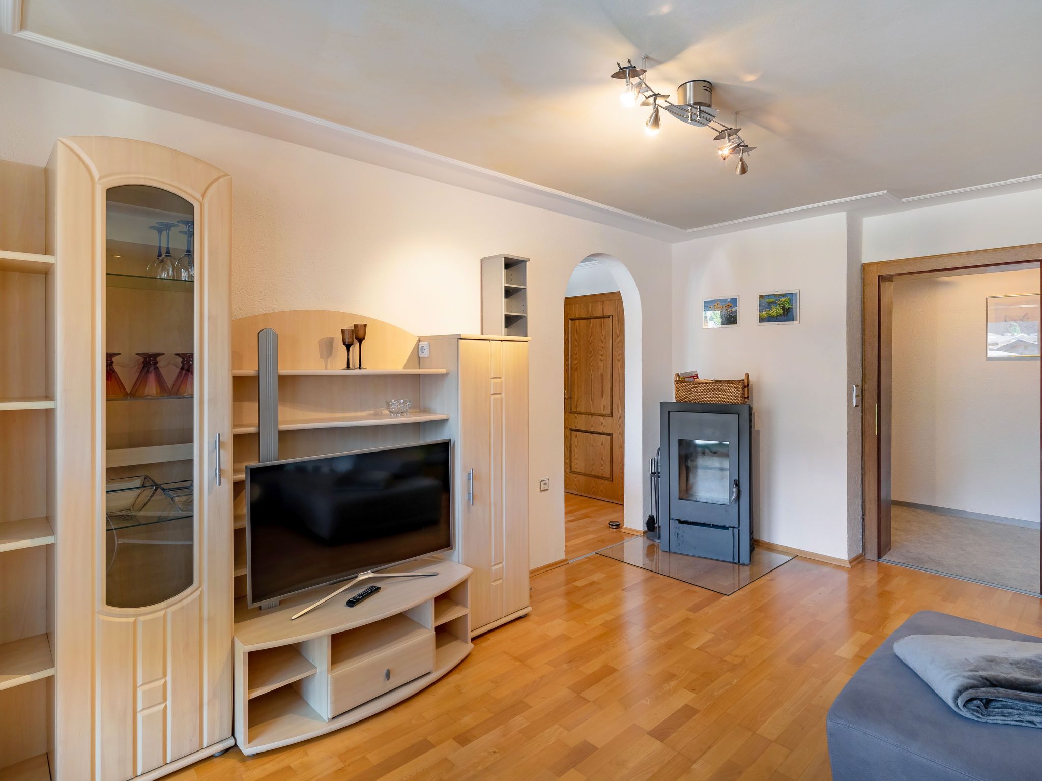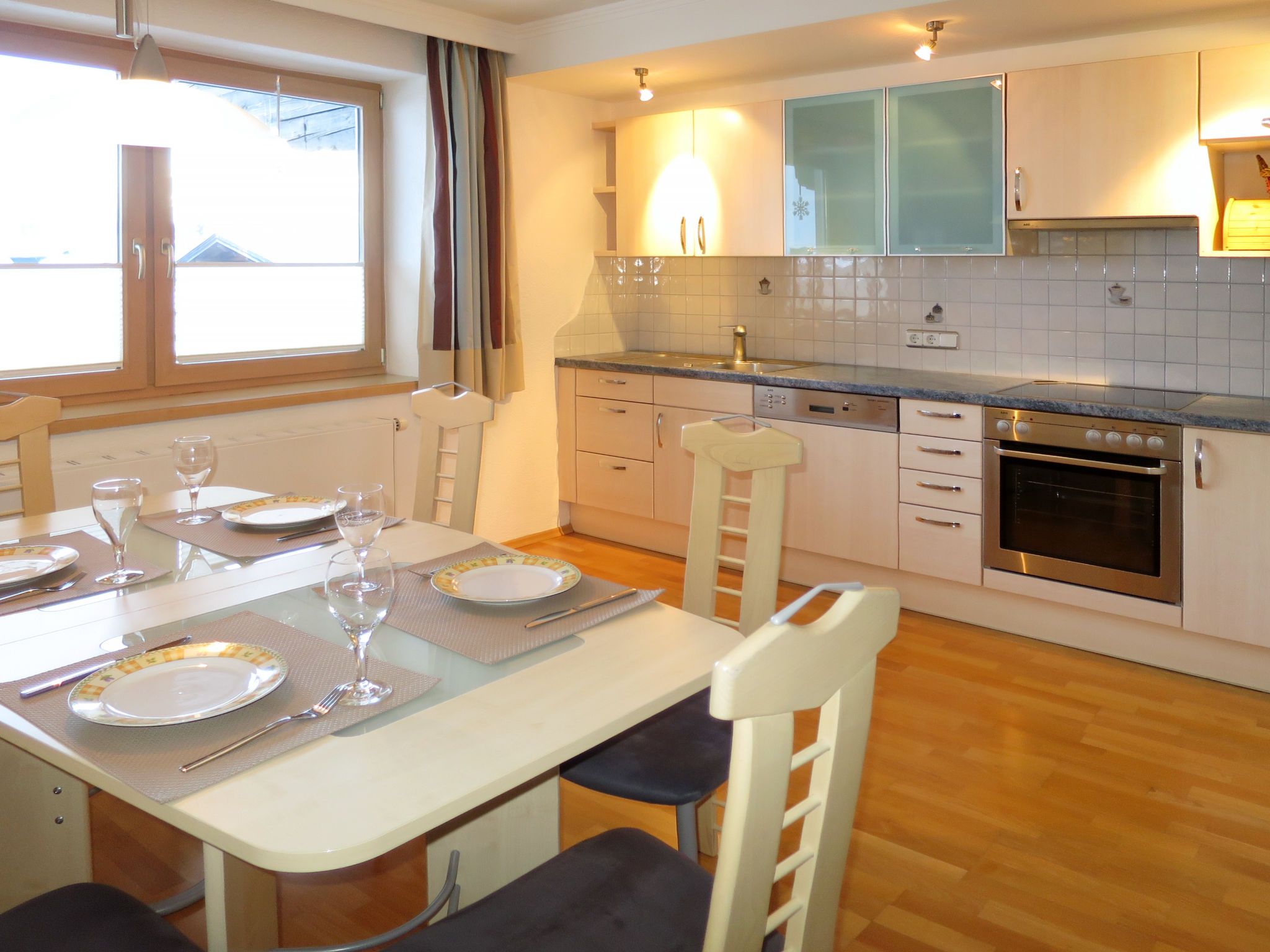 6-Zimmer-Wohnung 146 m2 auf 2 Stockwerken. Hell, gemütlich eingerichtet: Obergeschoss: Wohn-/Schlafzimmer mit 1 Doppeldiwanbett, Esstisch und Kabel-TV. 1 Doppelzimmer. Offene Küche (4 Kochplatten, Backofen, Geschirrspüler, Toaster, Wasserkocher, Mikrowelle, elektrische Kaffeemaschine). Dusche/WC. 2. Obergeschoss: Wohnzimmer mit Schwedenofen und Kabel-TV. 1 Doppelzimmer mit Dusche/WC. 2 Zimmer, jedes Zimmer mit 1 franz. Bett (145 cm). Offene Küche (Backofen, Geschirrspüler, 4 Glaskeramikplatten, Toaster, Wasserkocher, Mikrowelle, elektrische Kaffeemaschine) mit Esstisch. Bad/Dusche, sep. WC. Heizung. 2 Balkone. Balkonmöbel. Zur Verfügung: Kinderhochstuhl, Babybett. Internet (WLAN, gratis). Bitte beachten: Nichtraucher-Haus. Keine interne Verbindung zwischen den separaten Wohneinheiten.