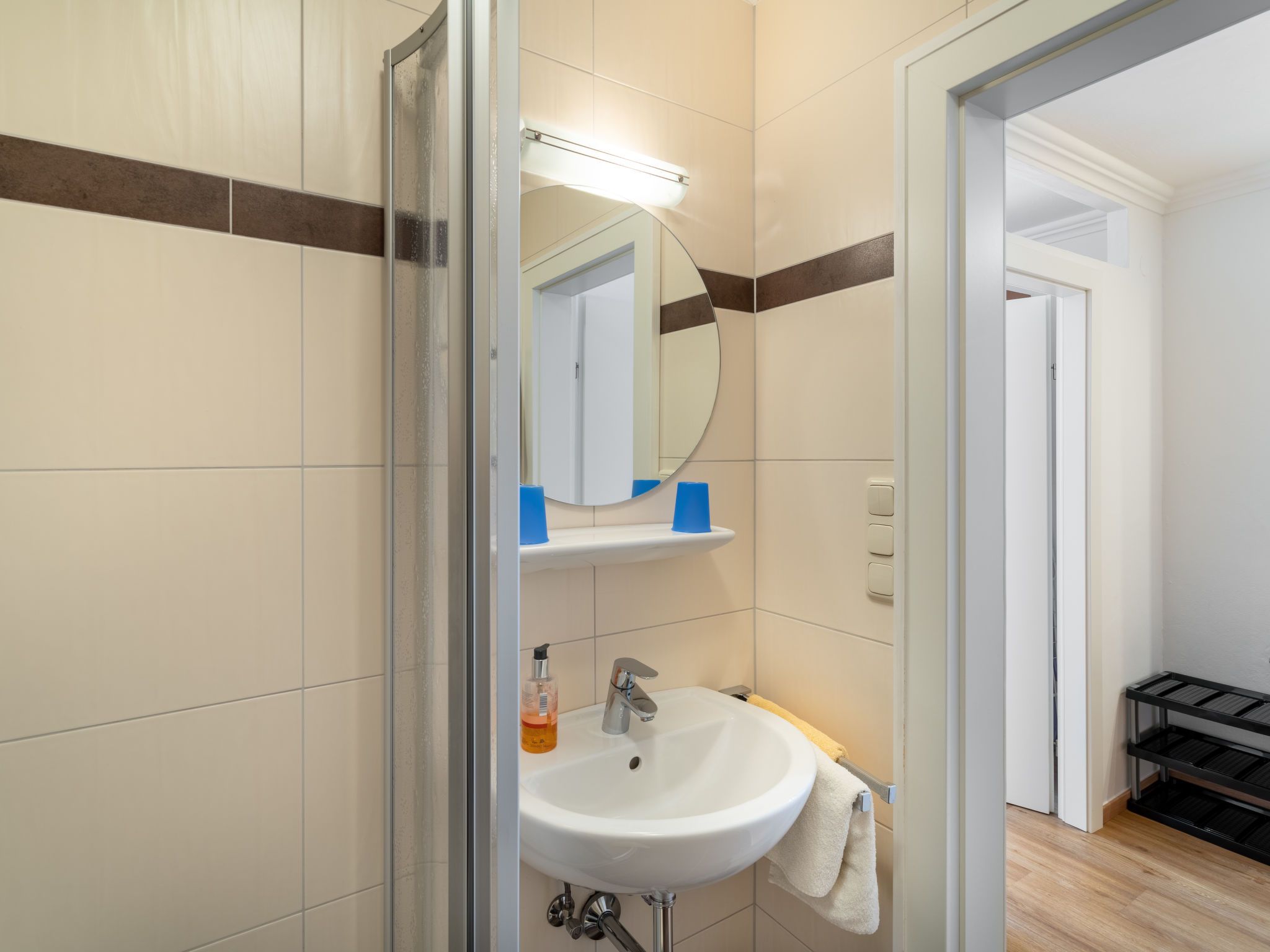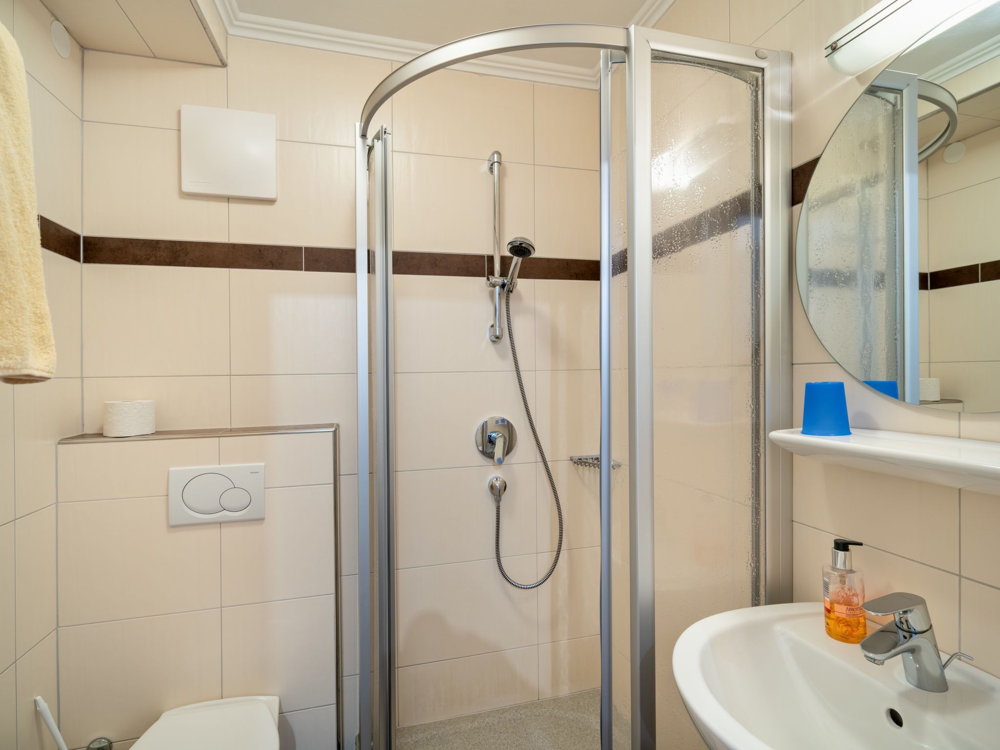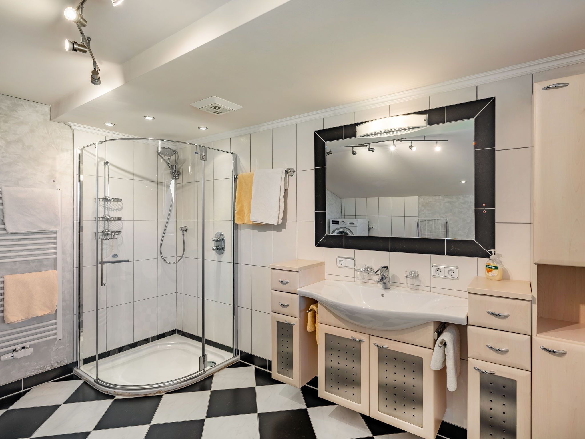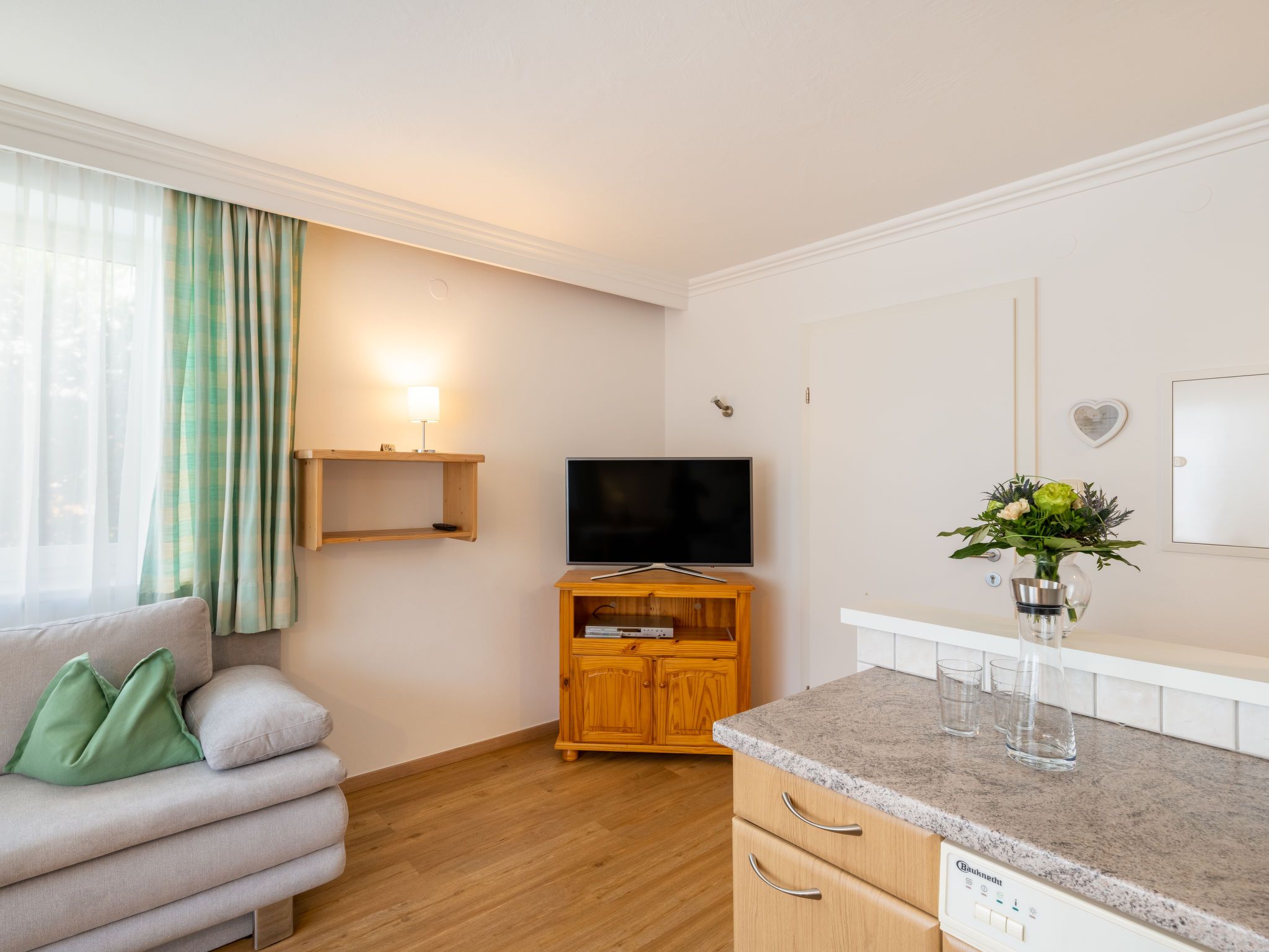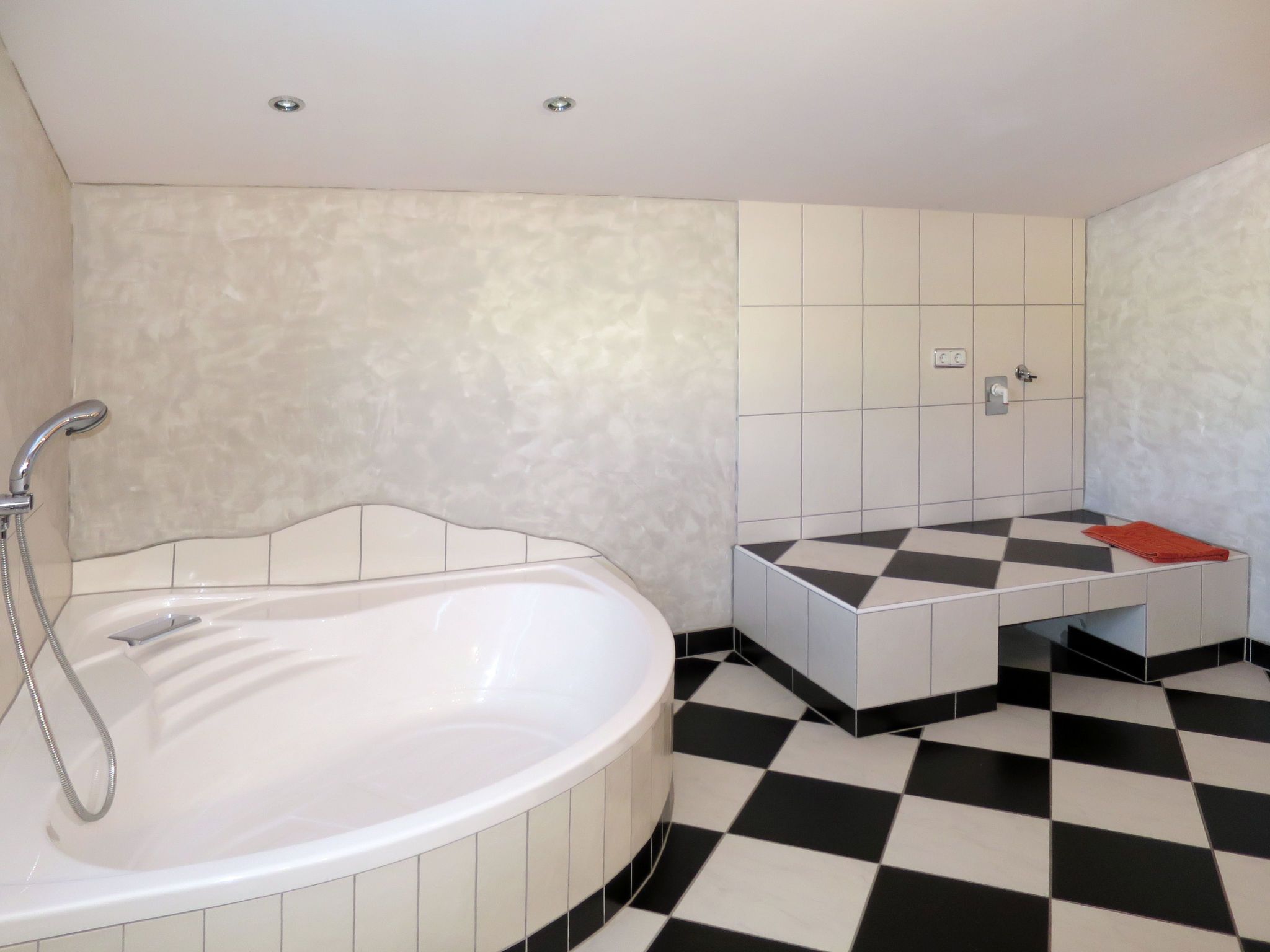 6-Zimmer-Wohnung 146 m2 auf 2 Stockwerken. Hell, gemütlich eingerichtet: Obergeschoss: Wohn-/Schlafzimmer mit 1 Doppeldiwanbett, Esstisch und Kabel-TV. 1 Doppelzimmer. Offene Küche (4 Kochplatten, Backofen, Geschirrspüler, Toaster, Wasserkocher, Mikrowelle, elektrische Kaffeemaschine). Dusche/WC. 2. Obergeschoss: Wohnzimmer mit Schwedenofen und Kabel-TV. 1 Doppelzimmer mit Dusche/WC. 2 Zimmer, jedes Zimmer mit 1 franz. Bett (145 cm). Offene Küche (Backofen, Geschirrspüler, 4 Glaskeramikplatten, Toaster, Wasserkocher, Mikrowelle, elektrische Kaffeemaschine) mit Esstisch. Bad/Dusche, sep. WC. Heizung. 2 Balkone. Balkonmöbel. Zur Verfügung: Kinderhochstuhl, Babybett. Internet (WLAN, gratis). Bitte beachten: Nichtraucher-Haus. Keine interne Verbindung zwischen den separaten Wohneinheiten.