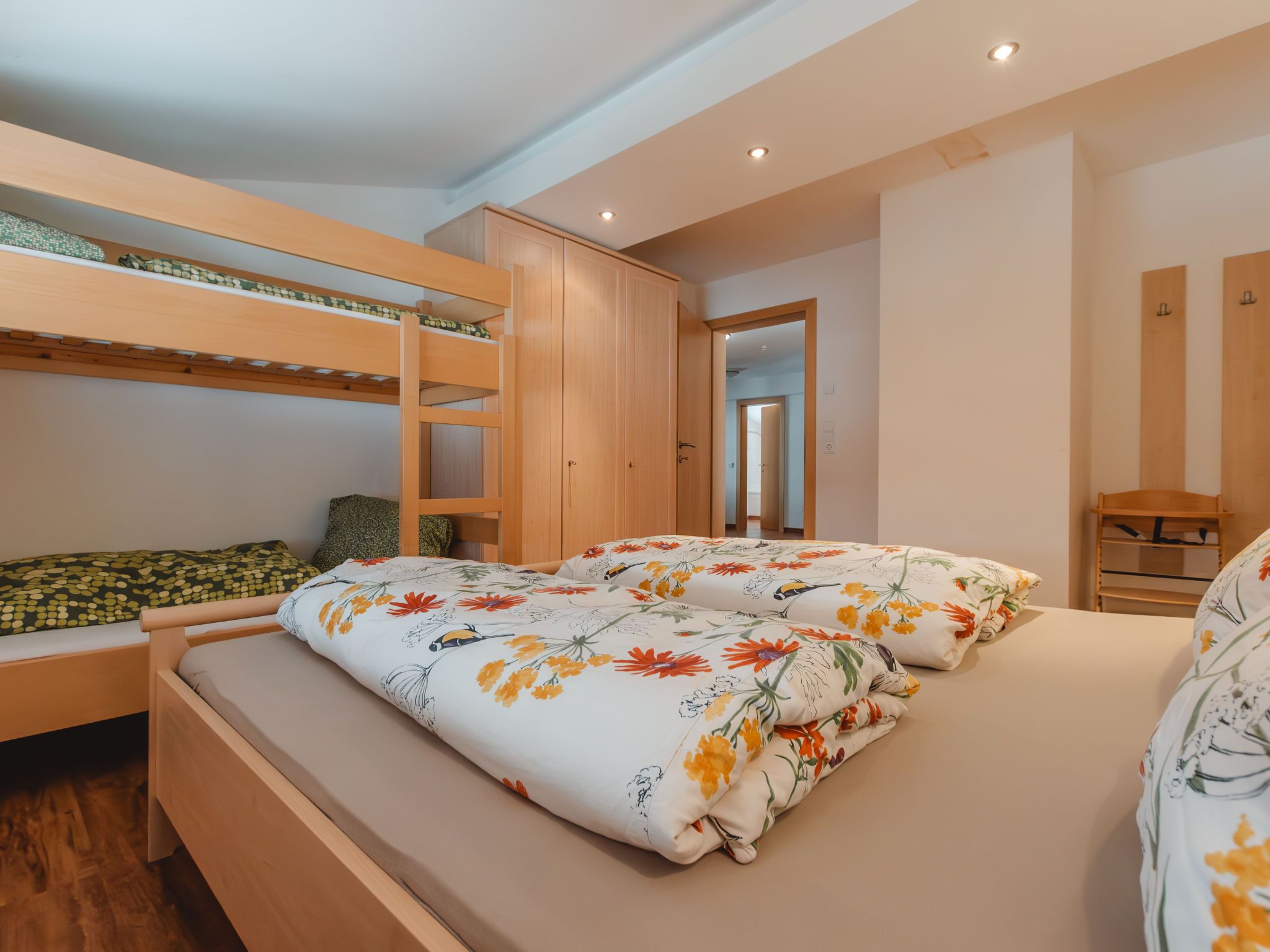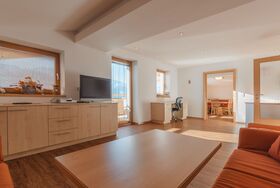 Tauernblick, 4-Zimmer-Wohnung 120 m2 im 2. Stock. Hell, komfortabel eingerichtet: abgeschrägtes Wohnzimmer mit Sat-TV. Ausgang zum Balkon. 2 abgeschrägte Zimmer, jedes Zimmer mit 1 x 2 Etagenbetten, 1 Doppelbett. 1 Zimmer mit 1 Doppelbett. Küche (Backofen, Geschirrspüler, 4 Glaskeramikplatten, Wasserkocher, Mikrowelle, elektrische Kaffeemaschine) mit Essecke. Ausgang zum Balkon. 2 Bäder/Duschen, 2 sep. WC's. Fussbodenheizung. Natursteinboden. Balkon. Balkonmöbel. Panoramasicht. Zur Verfügung: Kinderhochstuhl, Babybett. Internet (Wireless LAN, gratis). Bitte beachten: Nichtraucher-Unterkunft. Maximal 2 Haustiere/Hunde erlaubt. Eigener Eingang. Bei Belegung mit weniger Personen als der maximalen Personenzahl stehen nicht alle Wohneinheiten zur Verfügung. 50601-000641-2020