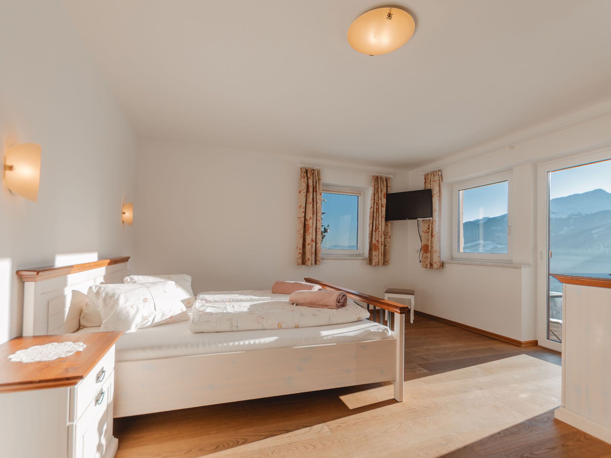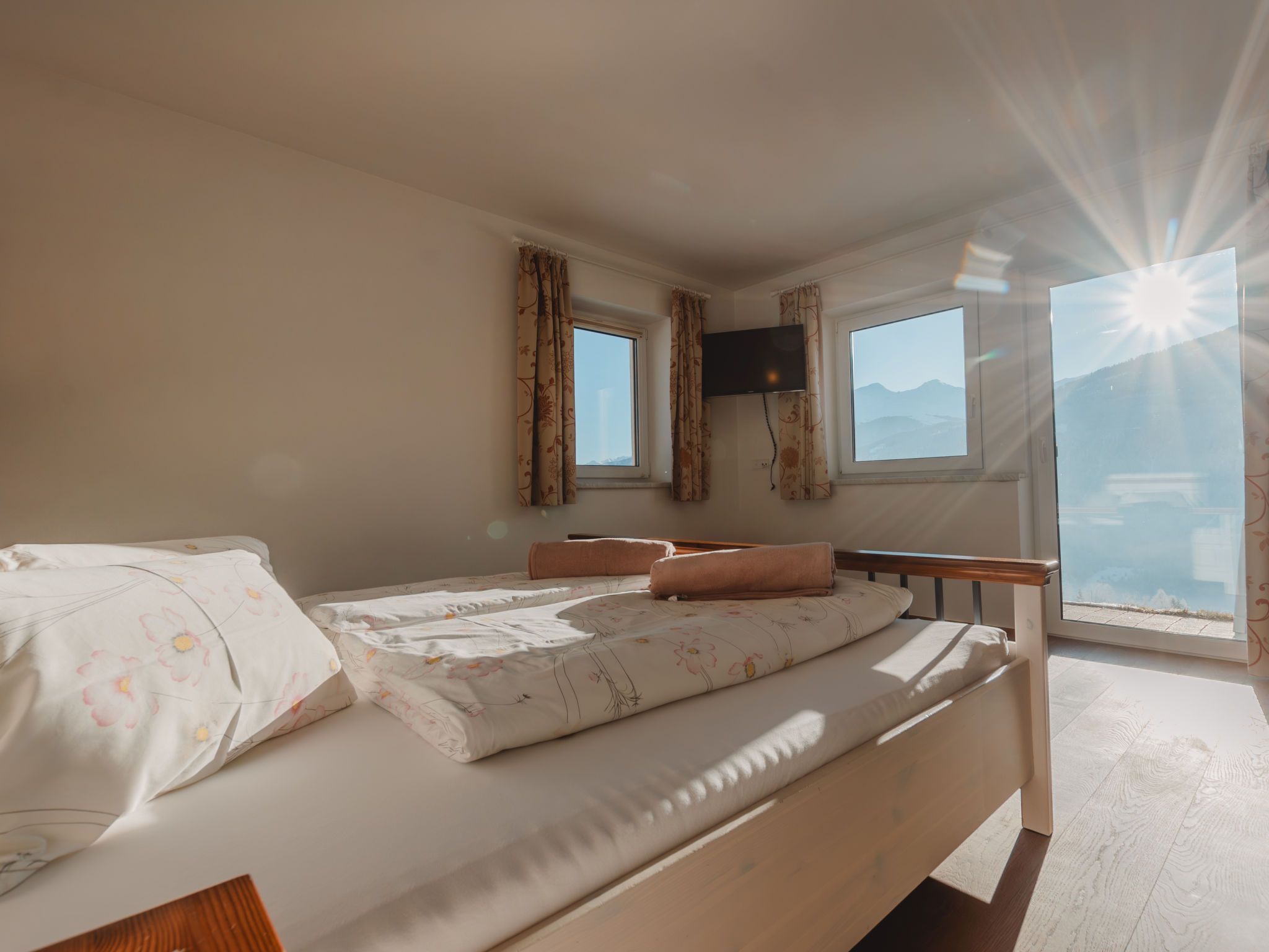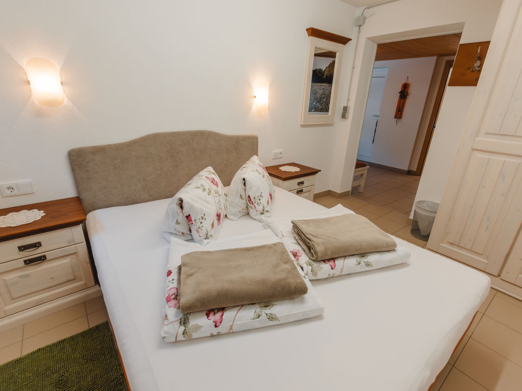 Talmoosen-Bauer, 5-Zimmer-Wohnung 120 m2, im ebenerdigen Untergeschoss. Hell, gemütlich eingerichtet: kleines Wohnzimmer. 1 Doppelzimmer. 2 Zimmer, jedes Zimmer mit 1 Bett, 1 Doppelbett, Dusche/WC und Sat-TV. Wohnküche (Backofen, Geschirrspüler, 4 Glaskeramikplatten, Toaster, Wasserkocher, Mikrowelle, elektrische Kaffeemaschine) mit Essecke und Sat-TV. Sep. WC. Fussbodenheizung. Holzdielenboden. Terrasse überdacht. Terrassenmöbel, Abstellkammer. Schöne Sicht auf die Berge. Zur Verfügung: Waschmaschine (extra). Kinderhochstuhl, Babybett. Internet (Wireless LAN, gratis). Bitte beachten: Nichtraucher-Unterkunft. Bei Belegung mit weniger Personen als der maximalen Personenzahl stehen nicht alle Wohneinheiten zur Verfügung. 50601-000537-2020