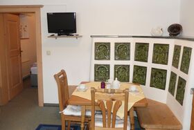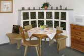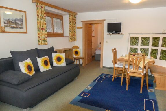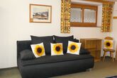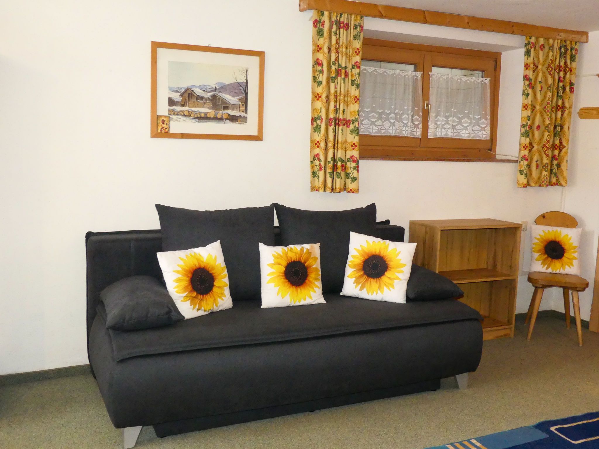 Eusch, 3-Zimmer-Wohnung 62 m2, im Erdgeschoss. Gemütlich eingerichtet: Wohn-/Schlafzimmer mit 1 Doppeldiwanbett, Esstisch, Sat-TV und Kachelofen. 1 Zimmer mit 1 franz. Bett (140 cm), Waschbecken. 1 Zimmer mit 1 Doppelbett und Waschbecken. Offene Küche (4 Kochplatten, Backofen, Geschirrspüler, Toaster, Wasserkocher, Mikrowelle, elektrische Kaffeemaschine). Dusche/WC, sep. WC. Heizung. Teppichboden. Zur Verfügung: Kinderhochstuhl. Bitte beachten: ein Doppelzimmer liegt außerhalb der Wohnung. Nichtraucher-Unterkunft. Rauchmelder. 50625-000155-2020