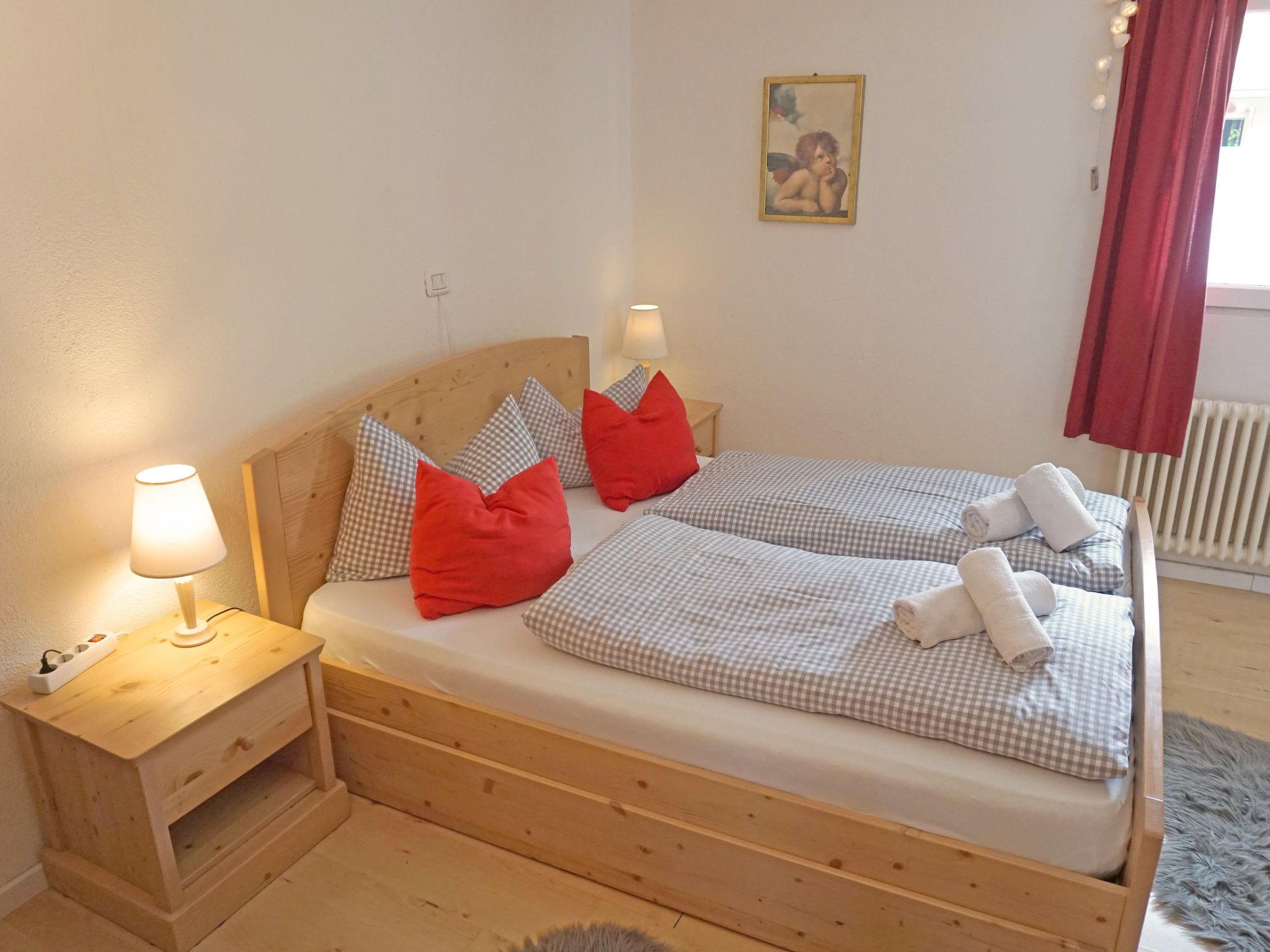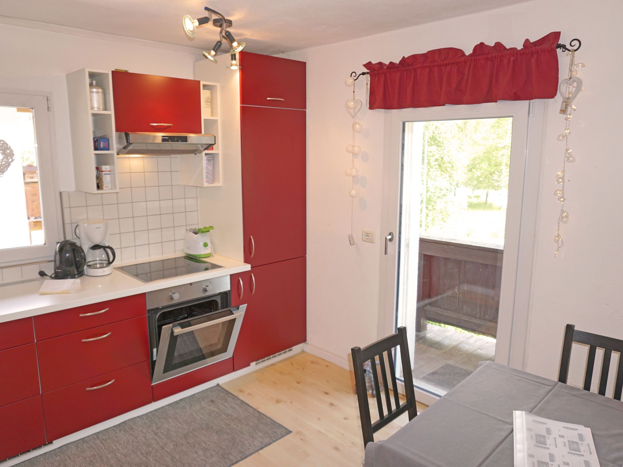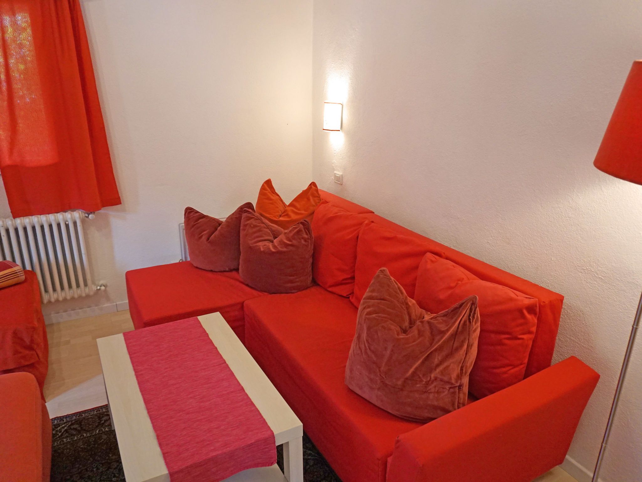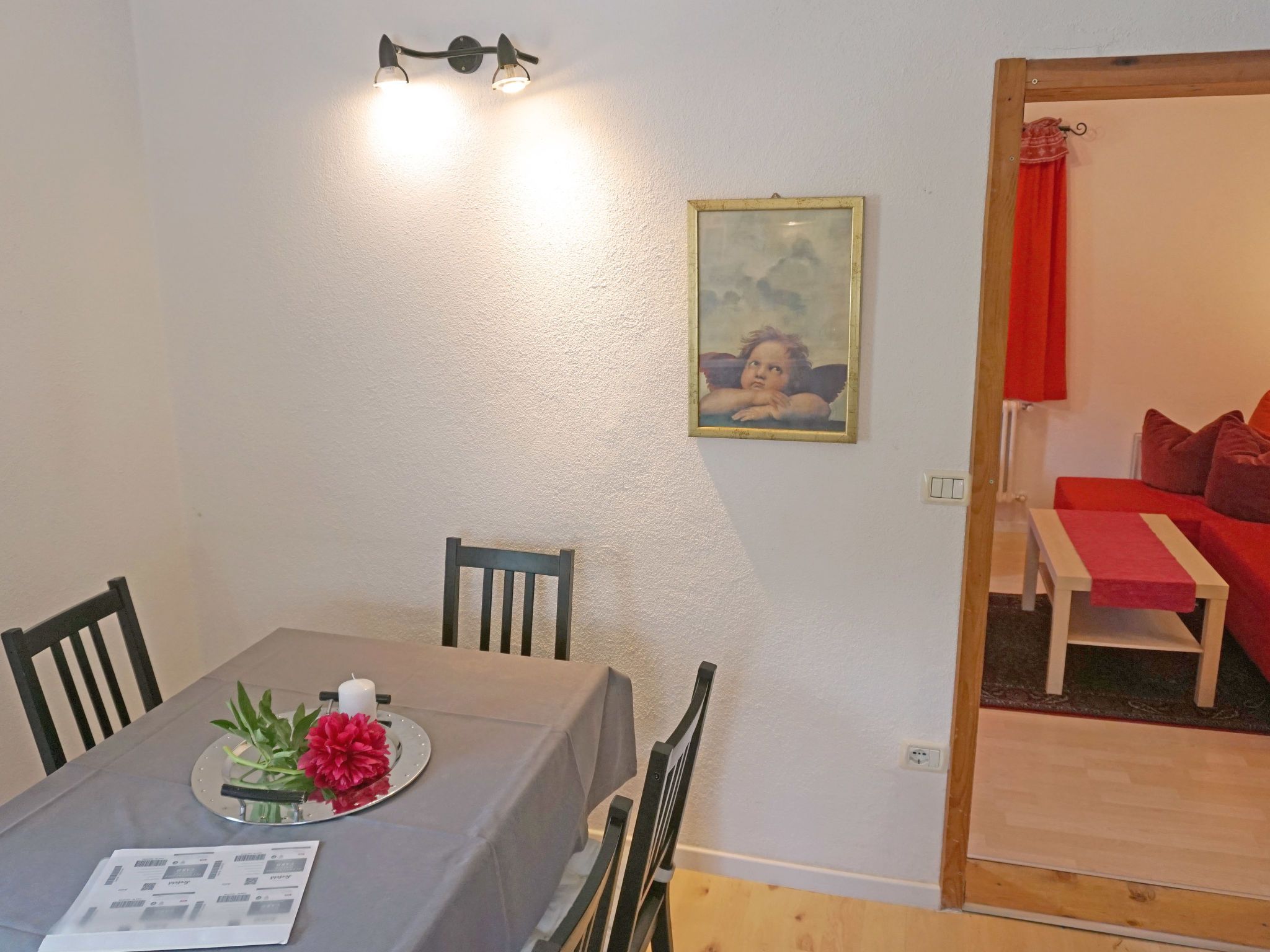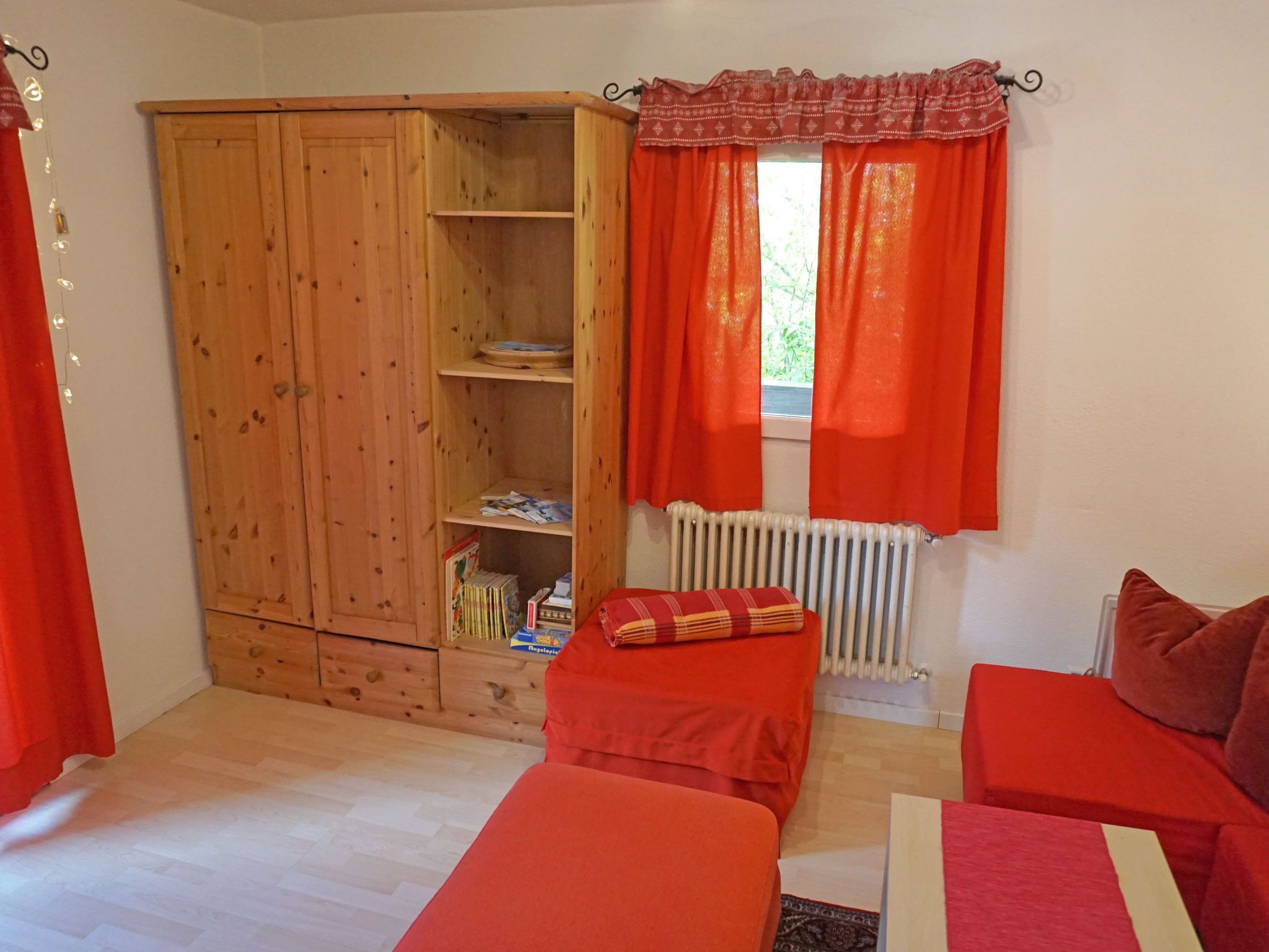 Föhrenheim, 2-Zimmer-Wohnung 58 m2 im 1. Stock. Zweckmässig eingerichtet: Wohn-/Schlafzimmer mit 1 Doppeldiwanbett und Sat-TV. Ausgang zum Balkon. 1 Doppelzimmer mit Dusche/WC. Ausgang zum Balkon. Wohnküche (Backofen, 4 Glaskeramikplatten, Toaster, Wasserkocher, elektrische Kaffeemaschine) mit Essecke. Ausgang zum Balkon. Dusche/WC. Holzdielenboden. Balkon. Balkonmöbel. Zur Verfügung: Internet (WLAN, extra). Parkplatz (1 Auto). Bitte beachten: Nichtraucher-Unterkunft. Maximal 2 Haustiere/Hunde erlaubt. Vorraum/Lesezimmer mit Tisch und 2 Sesseln. Teilüberdachter Balkon mit Mobiliar. Laminat- und Holzböden.