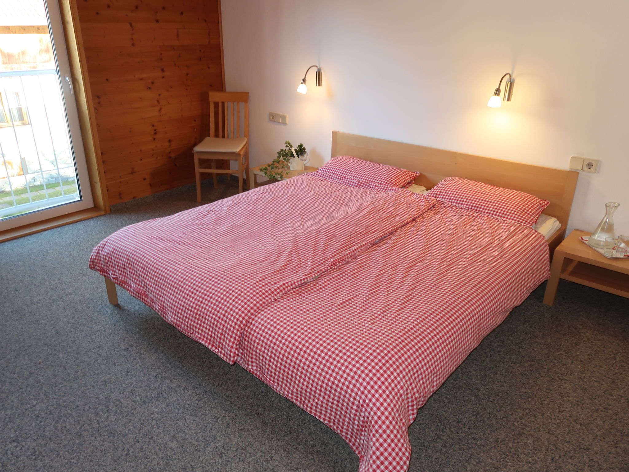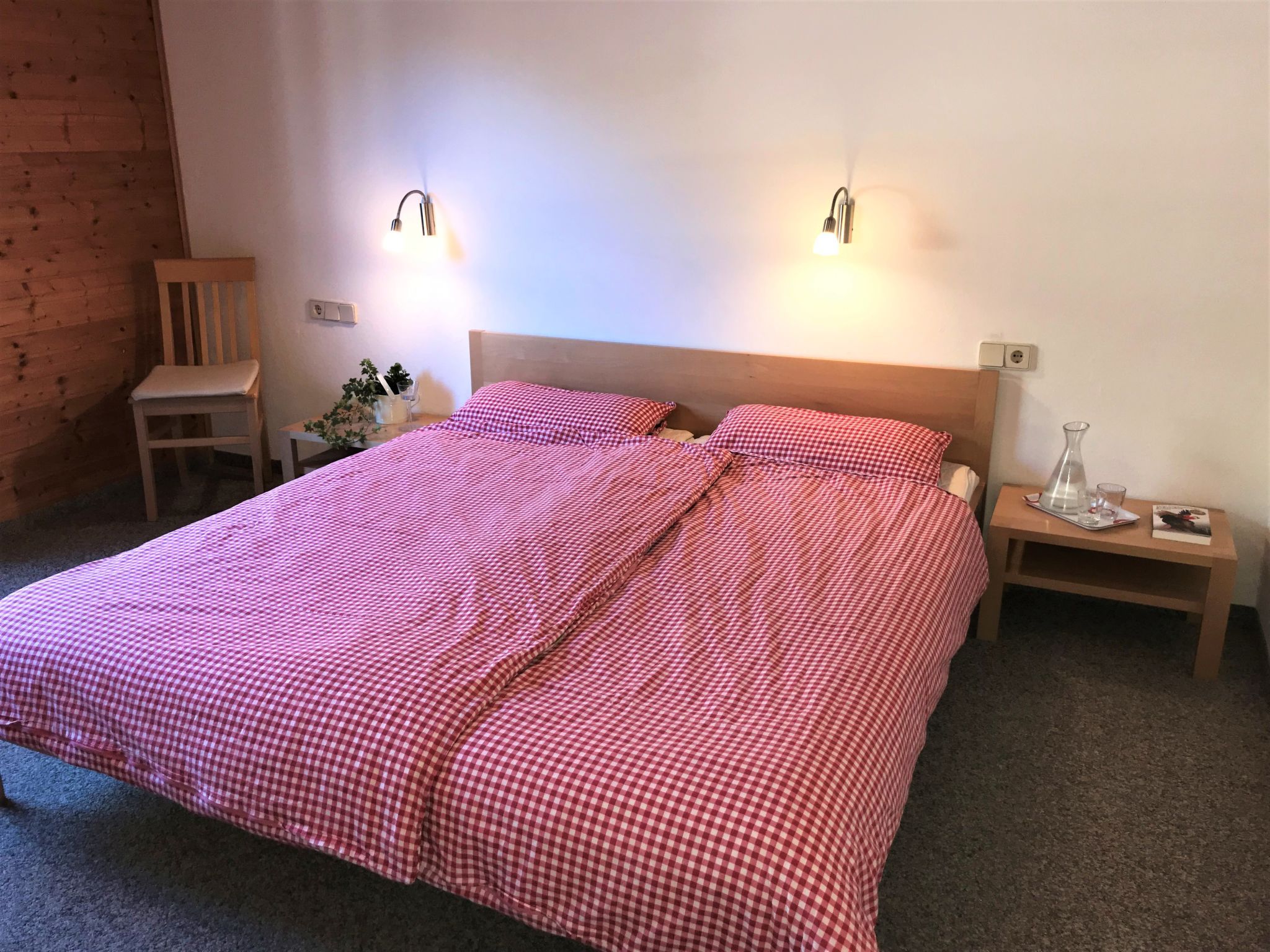 Hochunnutz, 3-Zimmer-Wohnung 54 m2 im 1. Stock. Geräumig und hell, mit viel Holz eingerichtet: 2 Doppelzimmer. Wohnküche (Backofen, Geschirrspüler, 4 Glaskeramikplatten, Wasserkocher, elektrische Kaffeemaschine) mit Essecke und Sat-TV (Flachbildschirm). Bad/WC. Heizung. Teppichboden. Schöne Sicht auf die Berge und die Landschaft. Zur Verfügung: Internet (WLAN, gratis). Parkplatz (überdacht, 1 Auto). Bitte beachten: Nichtraucher-Unterkunft. Auf der selben Etage ist ein Gemeinschaftsbalkon (Westausrichtung) mit Balkonmöbeln über das Treppenhaus/den Etagenflur zu erreichen.