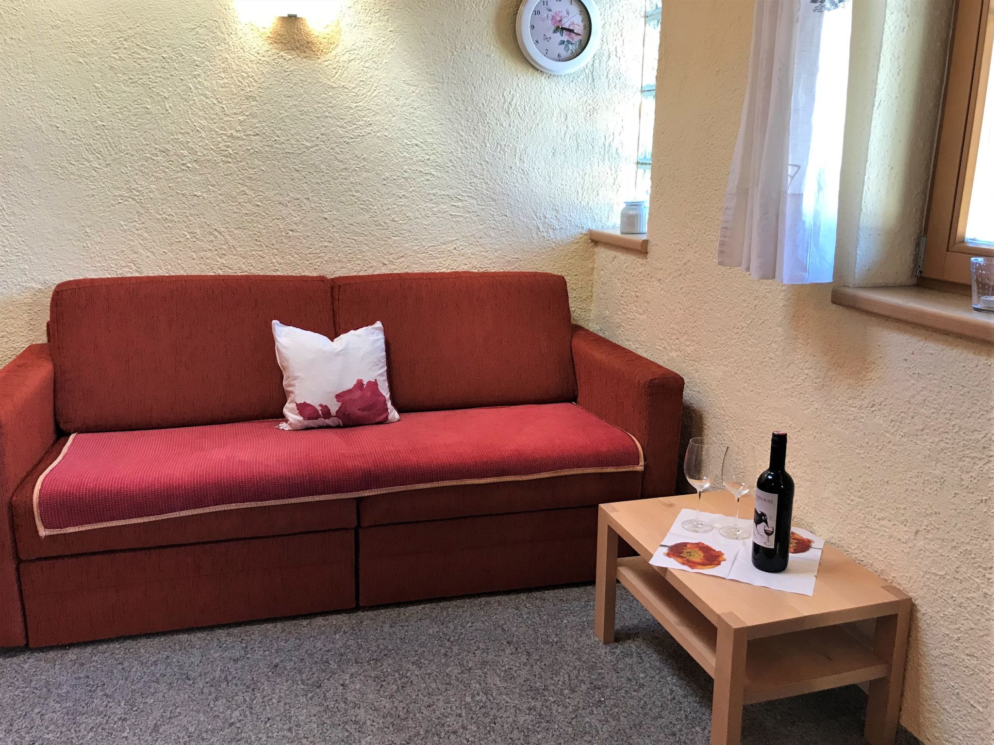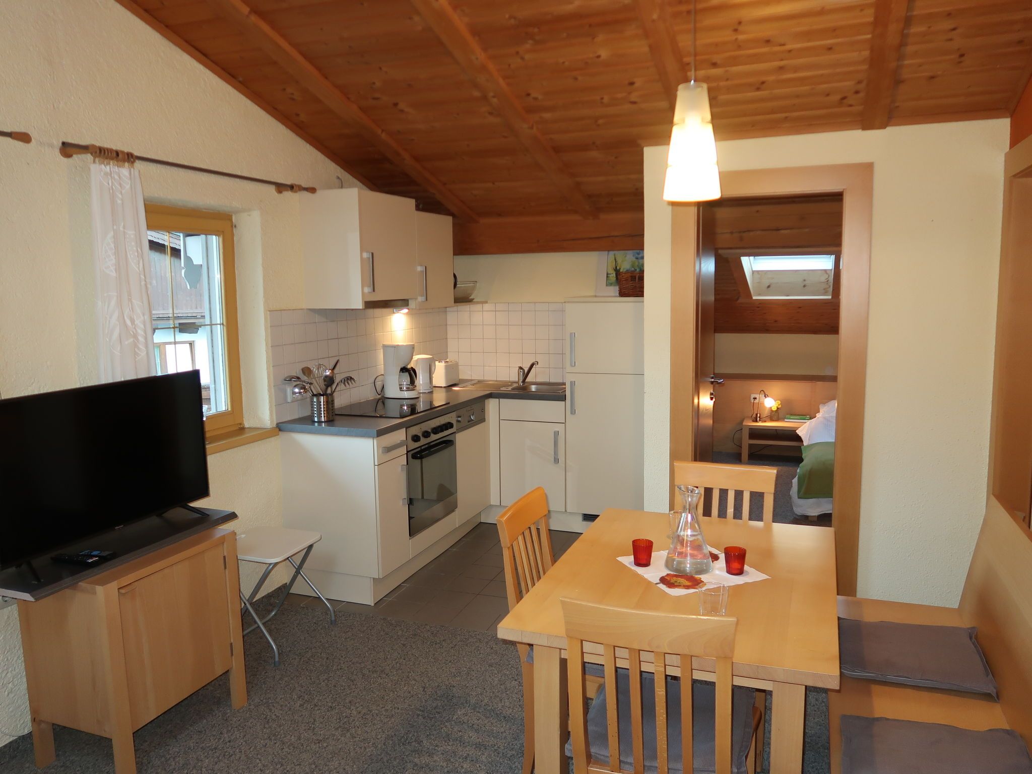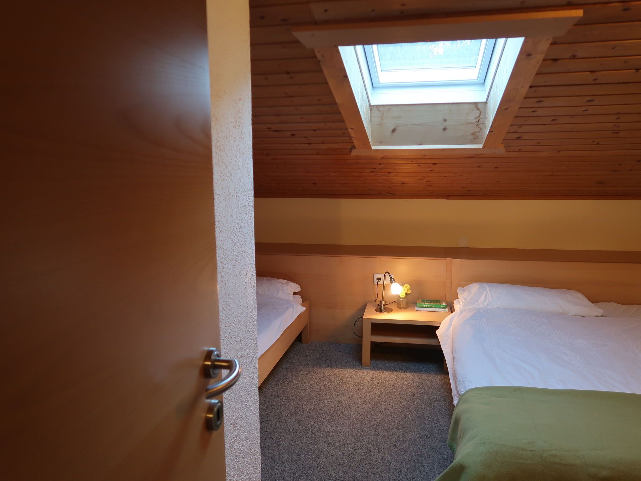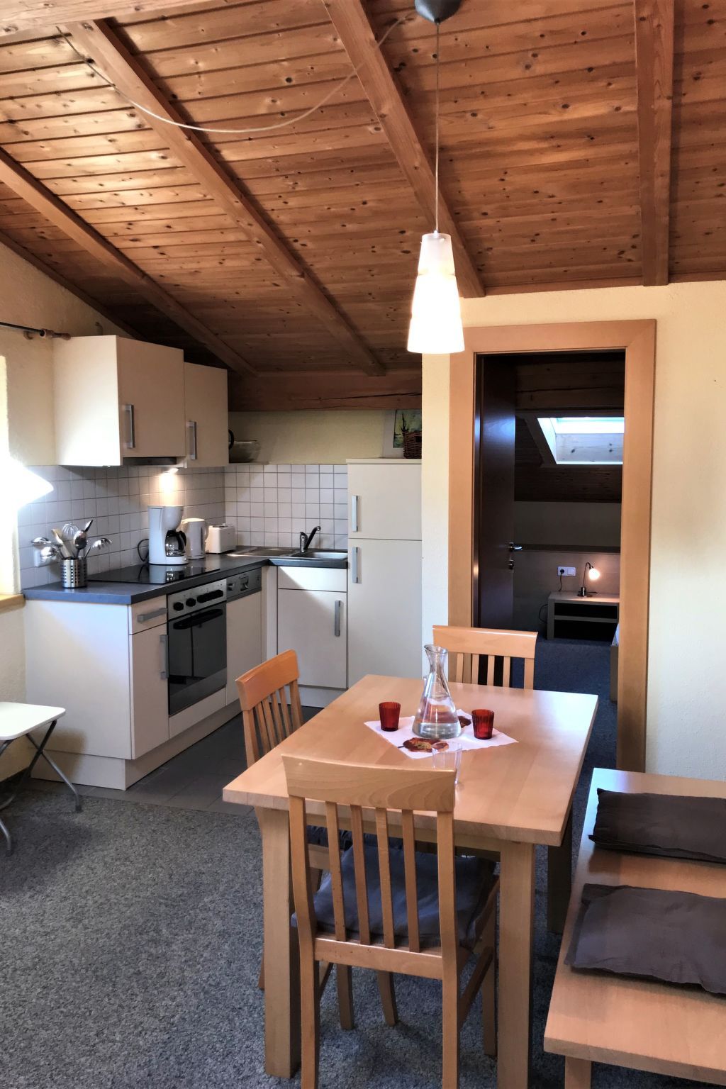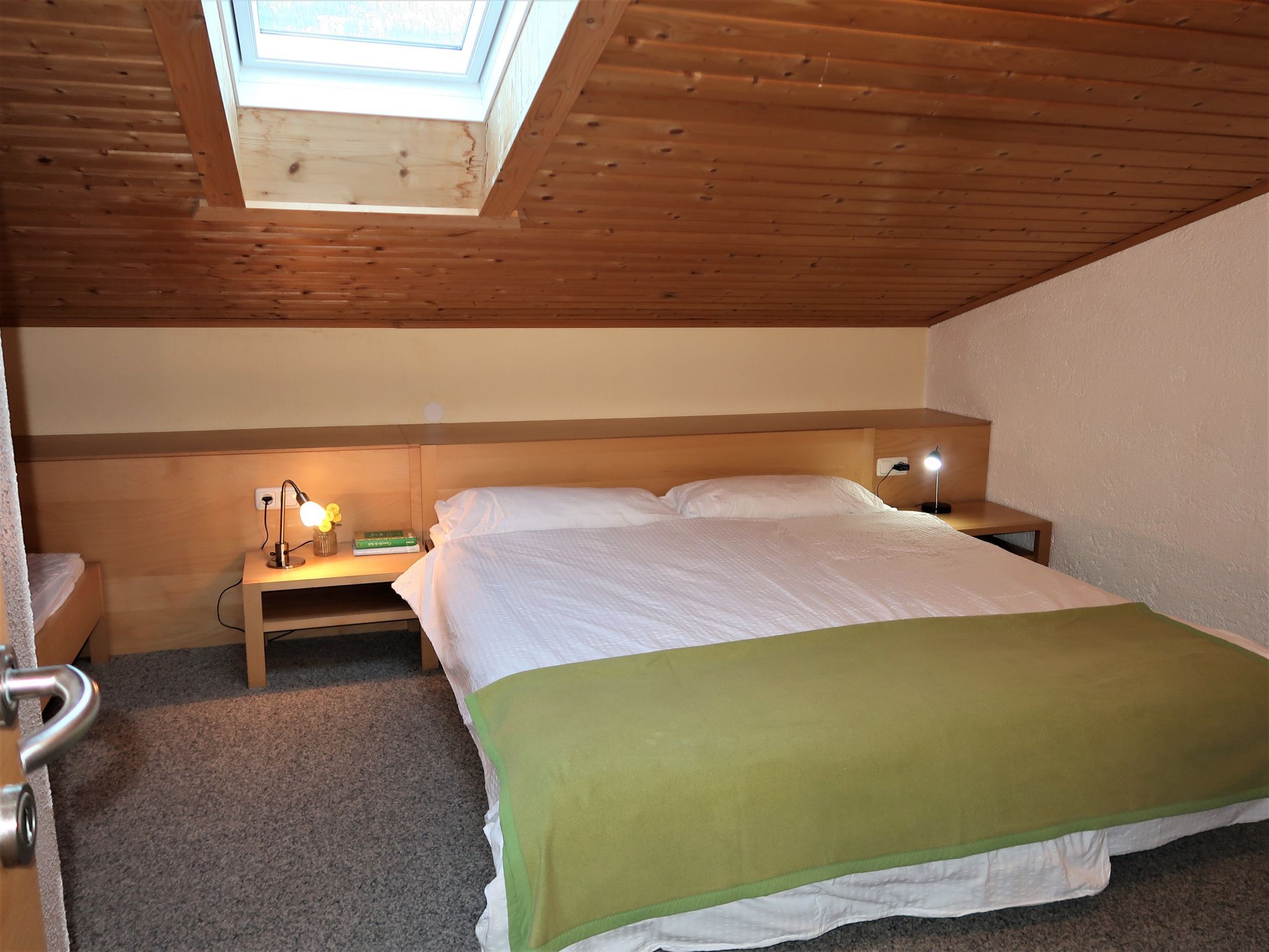 Christlum, 2-Zimmer-Wohnung 51 m2, im Dachgeschoss. Teilweise abgeschrägt, mit viel Holz eingerichtet: Wohn-/Schlafzimmer mit 1 Diwanbett (140 cm), Esstisch und Sat-TV (Flachbildschirm). 1 Zimmer mit 1 Bett und 1 Doppelbett. Offene Küche (Backofen, Geschirrspüler, 4 Glaskeramikplatten, Wasserkocher, elektrische Kaffeemaschine). Bad, sep. WC. Heizung. Teppichboden. Schöne Sicht auf die Berge und die Landschaft. Zur Verfügung: Internet (WLAN, gratis). Parkplatz (überdacht, 1 Auto). Bitte beachten: Nichtraucher-Unterkunft. Ein Gemeinschaftsbalkon (Westausrichtung) mit Balkonmobiliar im 1. OG kann über das Treppenhaus erreicht werden.
