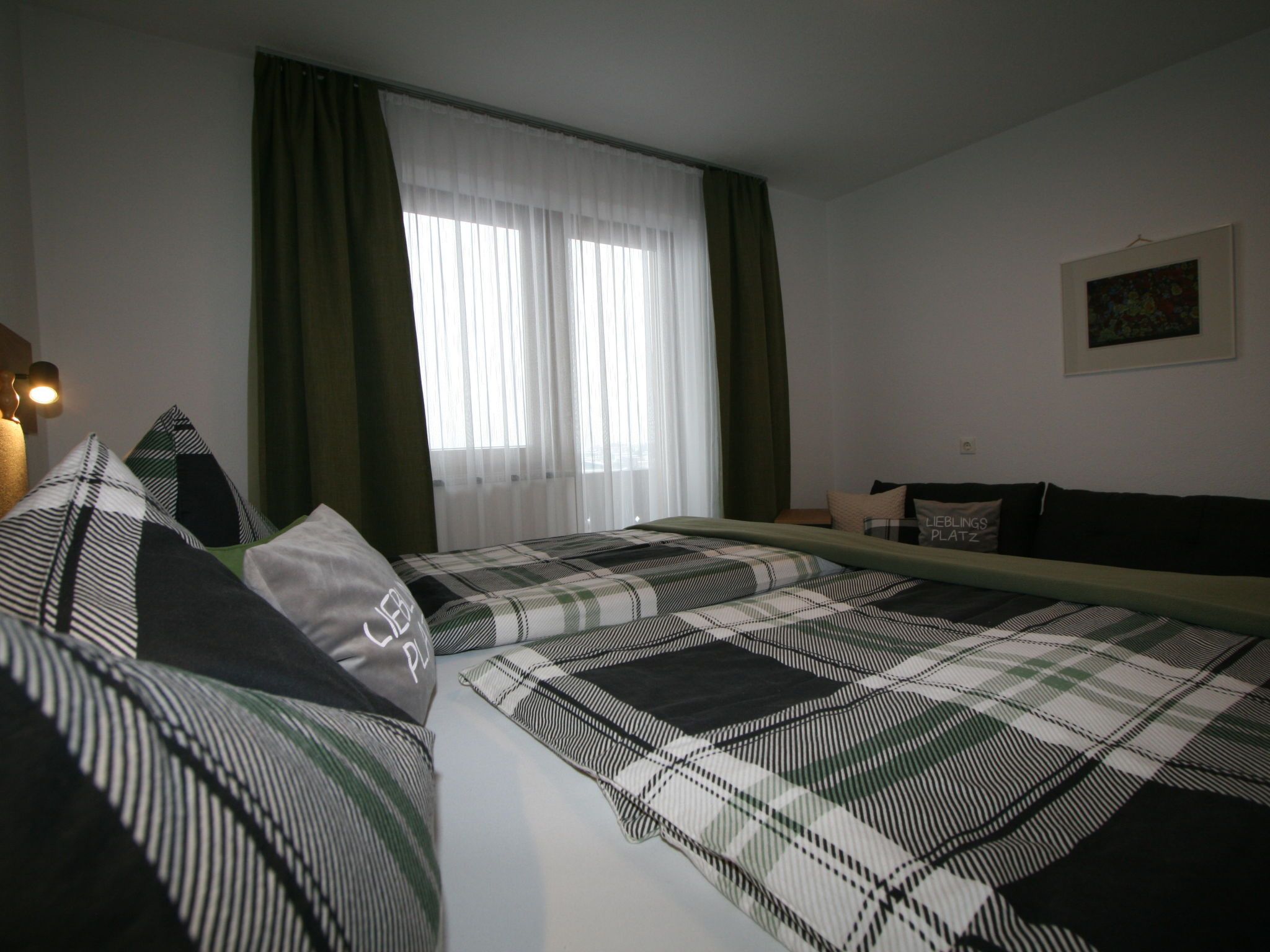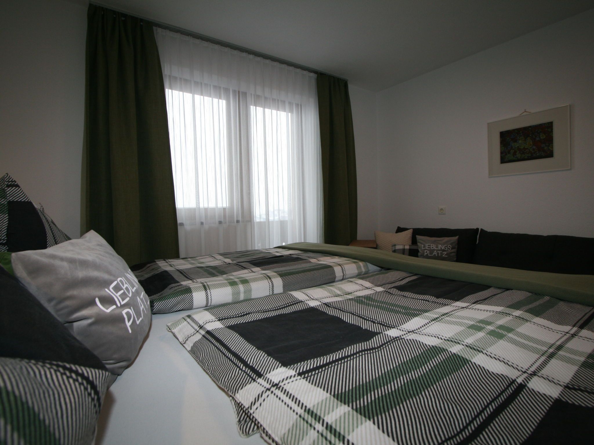 Neurauter, 3-Zimmer-Wohnung 90 m2 im 2. Stock. Hell, geschmackvoll eingerichtet: Wohn-/Schlafzimmer mit 1 Diwanbett und Sat-TV. Ausgang zum Balkon. 1 Doppelzimmer mit begehbarem Kleiderschrank. 1 Zimmer mit 1 Bett und 1 Doppelbett. Küche (4 Kochplatten, Backofen, Geschirrspüler, Wasserkocher, Mikrowelle, elektrische Kaffeemaschine) mit Essecke. Dusche/WC, sep. WC. Heizung. Holzdielenboden, Teppichboden. Balkon. Schöne Sicht auf die Berge und das Tal. Zur Verfügung: Internet (Wireless LAN, gratis). Garage. Bitte beachten: Nichtraucher-Unterkunft. Rauchmelder.