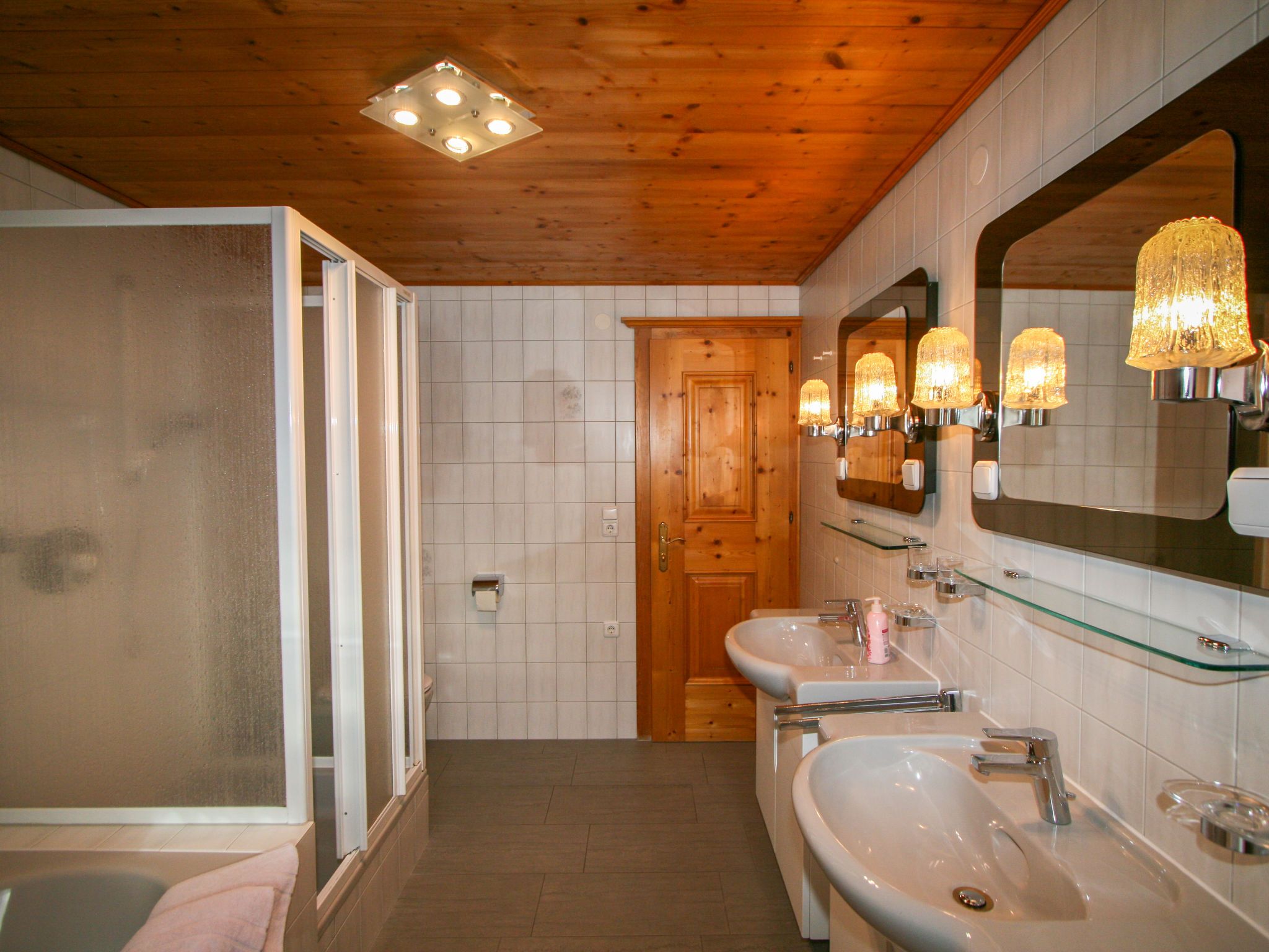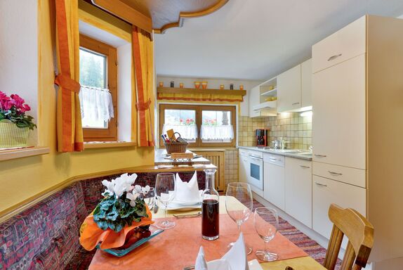 Comfortappart Eberharter, 5-Zimmer-Wohnung 120 m2 auf 2 Stockwerken. Geschmackvoll und mit viel Holz eingerichtet: Dusche, sep. WC. Obergeschoss: Wohnzimmer mit Sat-TV, Radio, CD und DVD. Küche (Backofen, Geschirrspüler, 4 Glaskeramikplatten, Toaster, Wasserkocher, Mikrowelle, elektrische Kaffeemaschine) mit Esstisch. 2. Obergeschoss: 1 Doppelzimmer mit Waschbecken. 1 Zimmer mit 2 Betten. 1 Zimmer mit 1 Bett und 1 Doppelbett. 1 Zimmer mit 1 Bett und 1 x 2 Etagenbetten. Bad/Dusche/WC, Doppelwaschbecken. Heizung. Parkettboden, Teppichboden. Balkon, Terrasse überdacht. Terrassenmöbel. Schöne Panoramasicht. Zur Verfügung: Kinderhochstuhl, Babybett. Internet (Wireless LAN, gratis). Bitte beachten: Nichtraucher-Unterkunft. Eigener Eingang, Rauchmelder.
