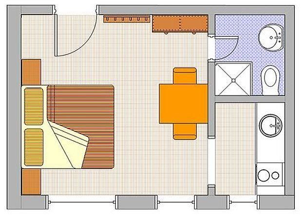 Unser kleinstes Appartement im Hotel! Einraum-Appartement im 1. Stock mit herrlichem Ausblick auf die Ötztaler Bergwelt: 1 Wohn-Schlafraum mit Doppelbett (getrennte Betten möglich), Flat-TV, Safe und Essbereich, optisch abgetrennte kleine Kochnische; 1 Badezimmer mit Dusche/WC, Föhn und Kosmetikspiegel. Größe: ca. 33 m²