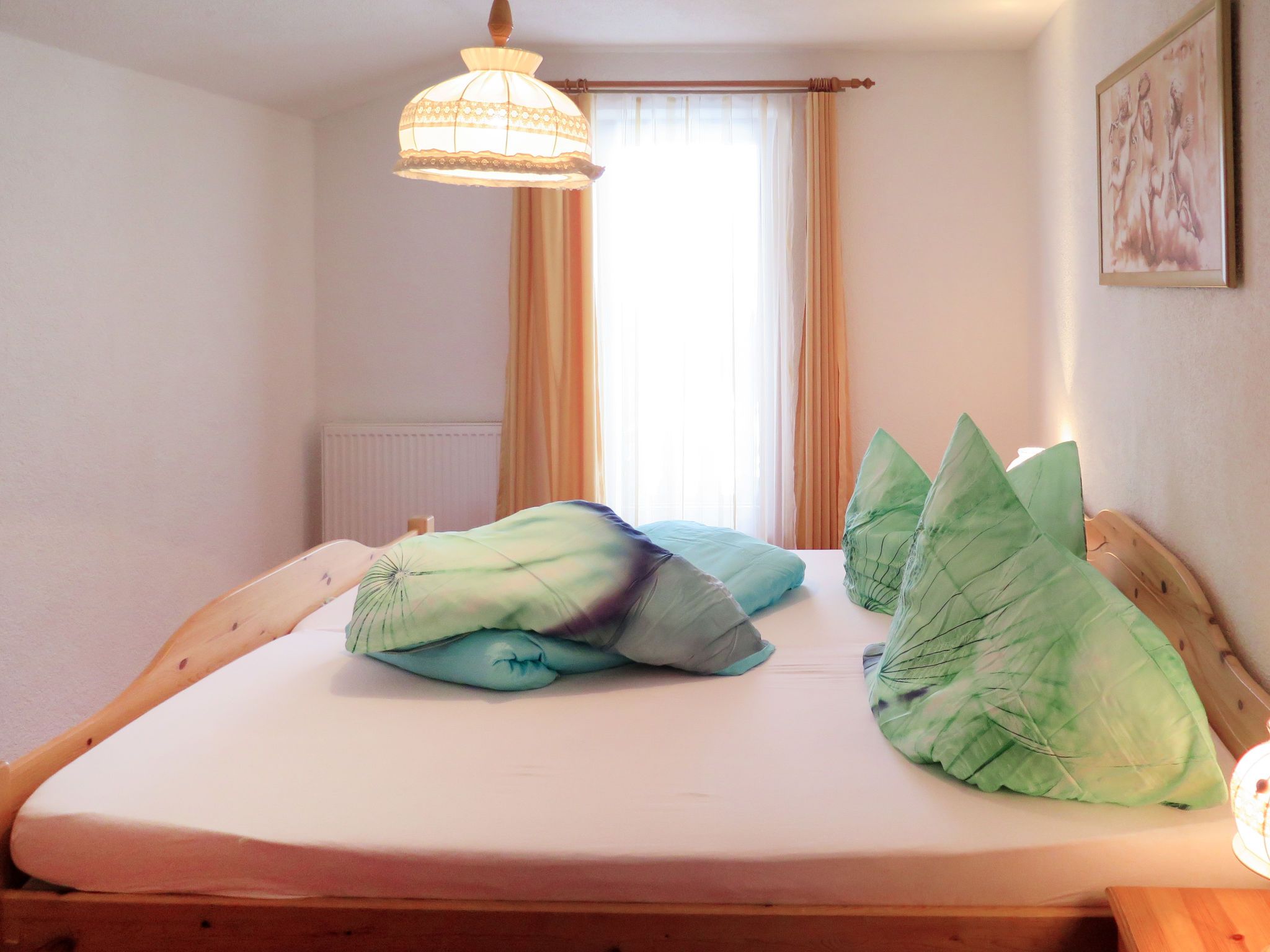 Luxner, 4-Zimmer-Wohnung 65 m2 im 3. Stock. Abgeschrägt, rustikal eingerichtet: 1 Doppelzimmer. Ausgang zum Balkon. 1 Doppelzimmer. 1 Zimmer mit 2 Betten. Wohnküche (4 Kochplatten, Backofen, Toaster, Wasserkocher, elektrische Kaffeemaschine) mit Esstisch und Sat-TV (Flachbildschirm). Ausgang zum Balkon. Dusche/WC. Ölheizung. Balkon. Balkonmöbel. Herrliche Sicht auf die Berge. Zur Verfügung: Kinderhochstuhl, Babybett. Internet (WLAN, gratis). Bei Belegung mit weniger Personen als der maximalen Personenzahl stehen nicht alle Schlafzimmer zur Verfügung.