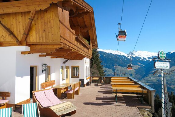 Haus Skistadl. 6 km vom Zentrum von Kaltenbach, 11 km vom Zentrum von Fügen, 18 km vom Zentrum von Mayrhofen, sonnige Lage am Hang, direkt am Skigebiet. Zur Mitbenutzung: Grundstück mit Wiese. Grill. Im Hause: Restaurant, Zentralheizung. 1.5 km lange sehr holprige, steile, schmale Zufahrt bis zum Grundstück. Im Winter bitte Schneeketten mitbringen. Steiler Fussweg bis zum Haus. Parkplatz beim Haus, im Winter 900 m. Einkaufsgeschäft 6 km, Bushaltestelle Kaltenbach-Stumm Bahnhof 6.2 km, Bahnstation Kaltenbach-Stumm Bahnhof 6.2 km, Hallenbad 10 km. Golfplatz (18 Loch) 10 km, Wanderwege ab Haus 10 m, Bergeisenbahn, Skilift 500 m, Skipisten 10 m. Bitte beachten: Bei guter Schneelage Zufahrt mit den Skiern bis zum Haus. Winter-Infos: Haus SKISTADL steht direkt an der beschneiten Talabfahrt nach Kaltenbach, ca. 500 m oberhalb der Mittelstation der Hochzillertalbahn (siehe Skikarte). Im Erdgeschoss des Hauses betreiben die Vermieter ein gemütliches Bergrestaurant mit Sonnenterrasse (geöffnet von ca. 10-17 Uhr, Hausgäste erhalten 10% Ermäßigung auf die Tagesmenüs, im Sommer geschlossen!). Das Haus kann auf zwei Wegen erreicht werden: 1) Zufahrt mit dem Pkw ab Kaltenbach (4 km) auf kleiner Bergstraße zum Haus des Vermieters in der Nähe der Mittelstation, Schneeketten können erforderlich sein. Von dort führt ein ansteigender Fuß- und Transportweg zum Haus (ca. 900 m). 2) Auffahrt mit der Hochzillertalbahn zur Bergstation (Betriebszeiten 8.30-16.30 Uhr). Von dort über 3 km lange, präparierte und beschneite Skipiste zum Haus (Piste für geübte Skifahrer). Am Anreisetag kann die Seilbahn ab 15 Uhr kostenlos benutzt werden, sofern die Skipässe für den Folgetag gekauft werden. Extra: Der Vermieter übernimmt den Gepäcktransport von seinem Haus mit einem Pistenbully zu den Wohnungen. Anreise unbedingt zwischen 14-16 Uhr (wegen Gepäcktransport), am Abreisetag (Sonntag) bis 8 Uhr. Parkplatz beim Haus des Vermieters oder an der Talstation.