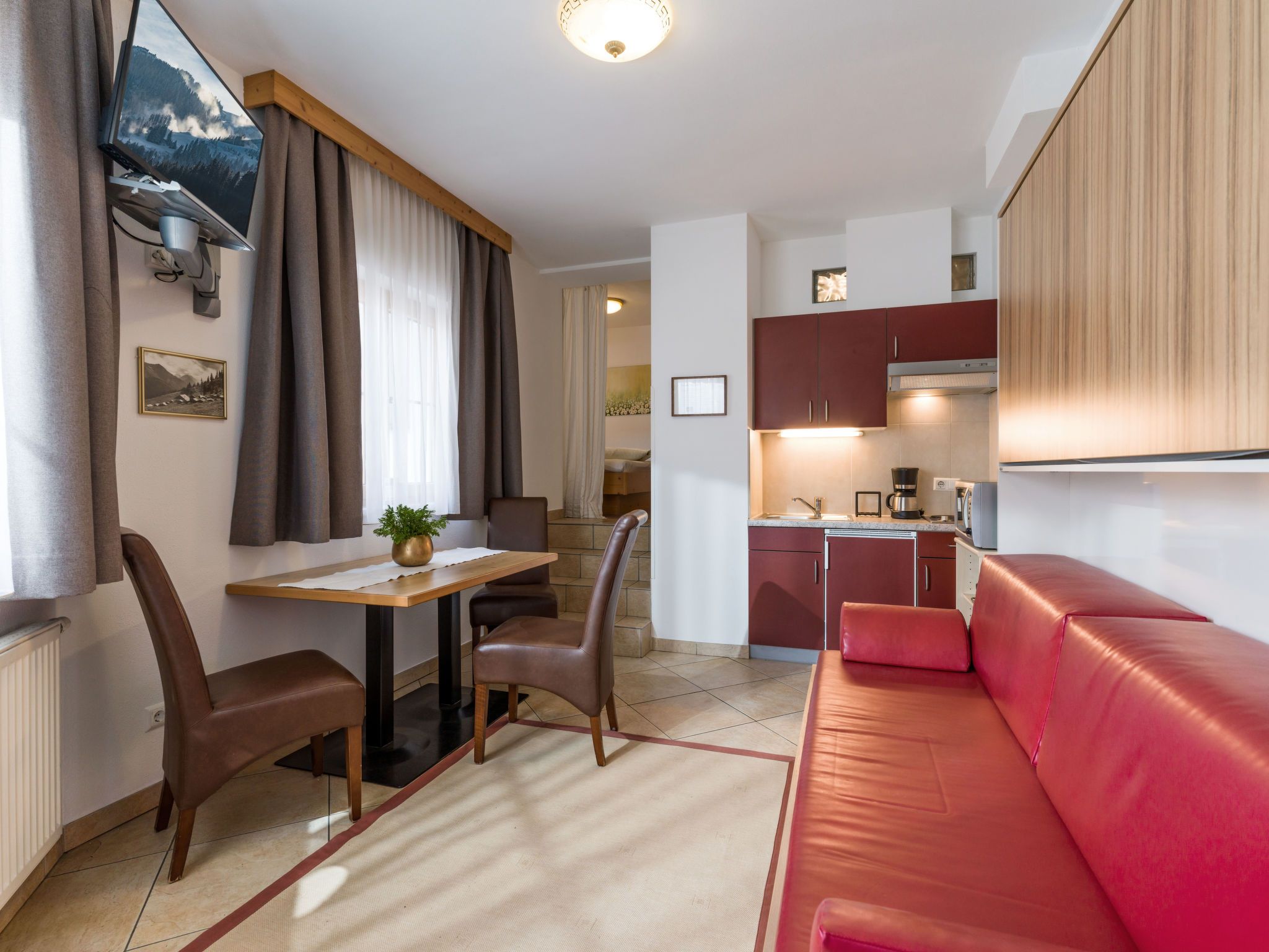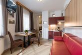 Lechners Wohnwelt, 2-Zimmer-Wohnung 30 m2, im erhöhten Erdgeschoss. Objekt geeignet für 2 Erwachsene + 2 Kinder. Komfortabel und geschmackvoll eingerichtet: Wohn-/Schlafzimmer mit 1 x 2 Etagenbetten, Esstisch und Sat-TV. Ausgang zum Balkon. 1 offenes Zimmer mit Vorhang mit 1 franz. Bett (140 cm). Kleine, offene Küche (2 Kochplatten, Toaster, Wasserkocher, Mikrowelle, elektrische Kaffeemaschine). Dusche/WC, Doppelwaschbecken. Heizung. Teppichboden. Balkon. Balkonmöbel, Elektrogrill. Schöne Panoramasicht. Zur Verfügung: Internet (WLAN, gratis). Bitte beachten: Nichtraucher-Unterkunft. Maximal 1 Haustier/Hund erlaubt. Rauchmelder.