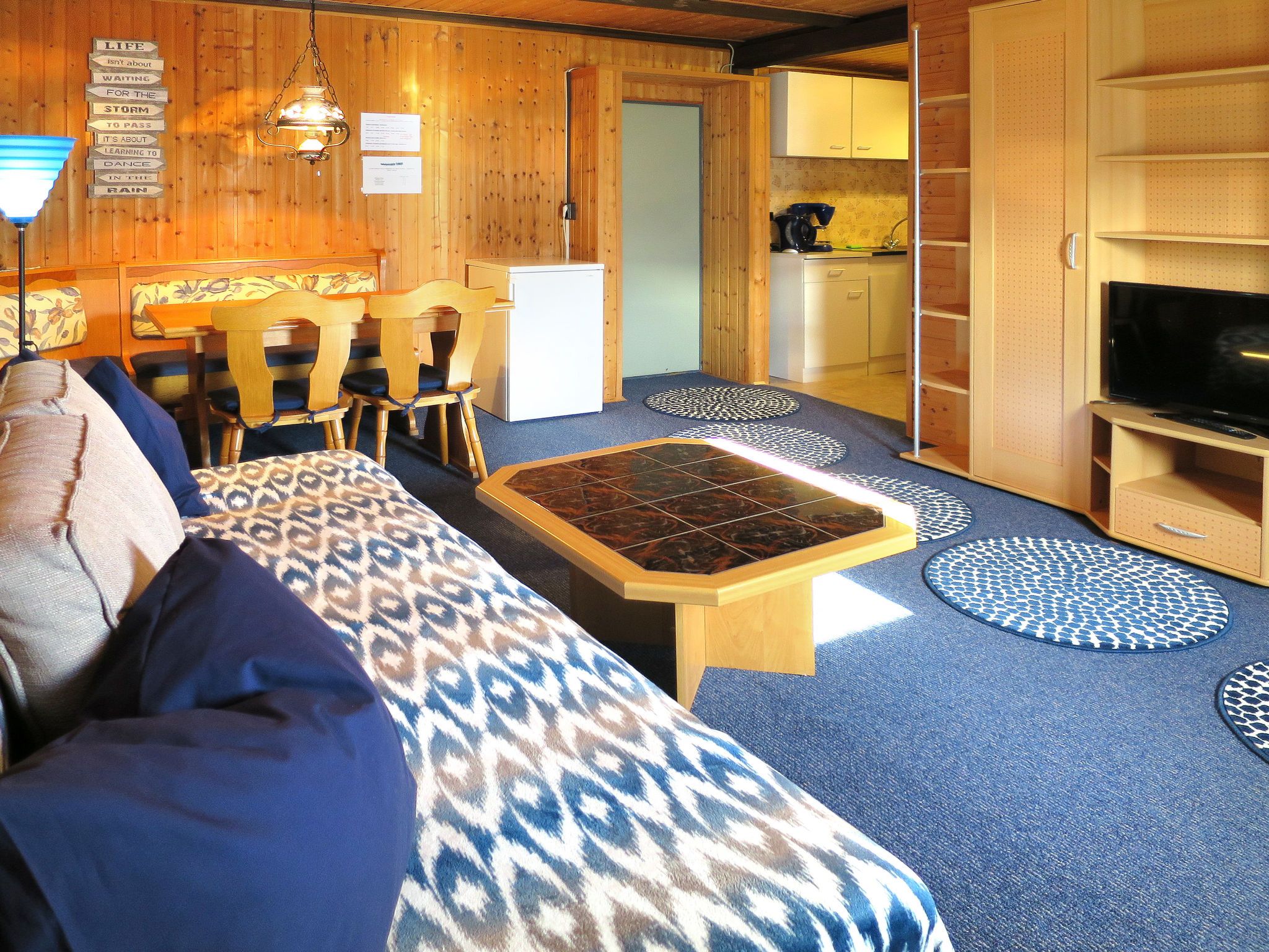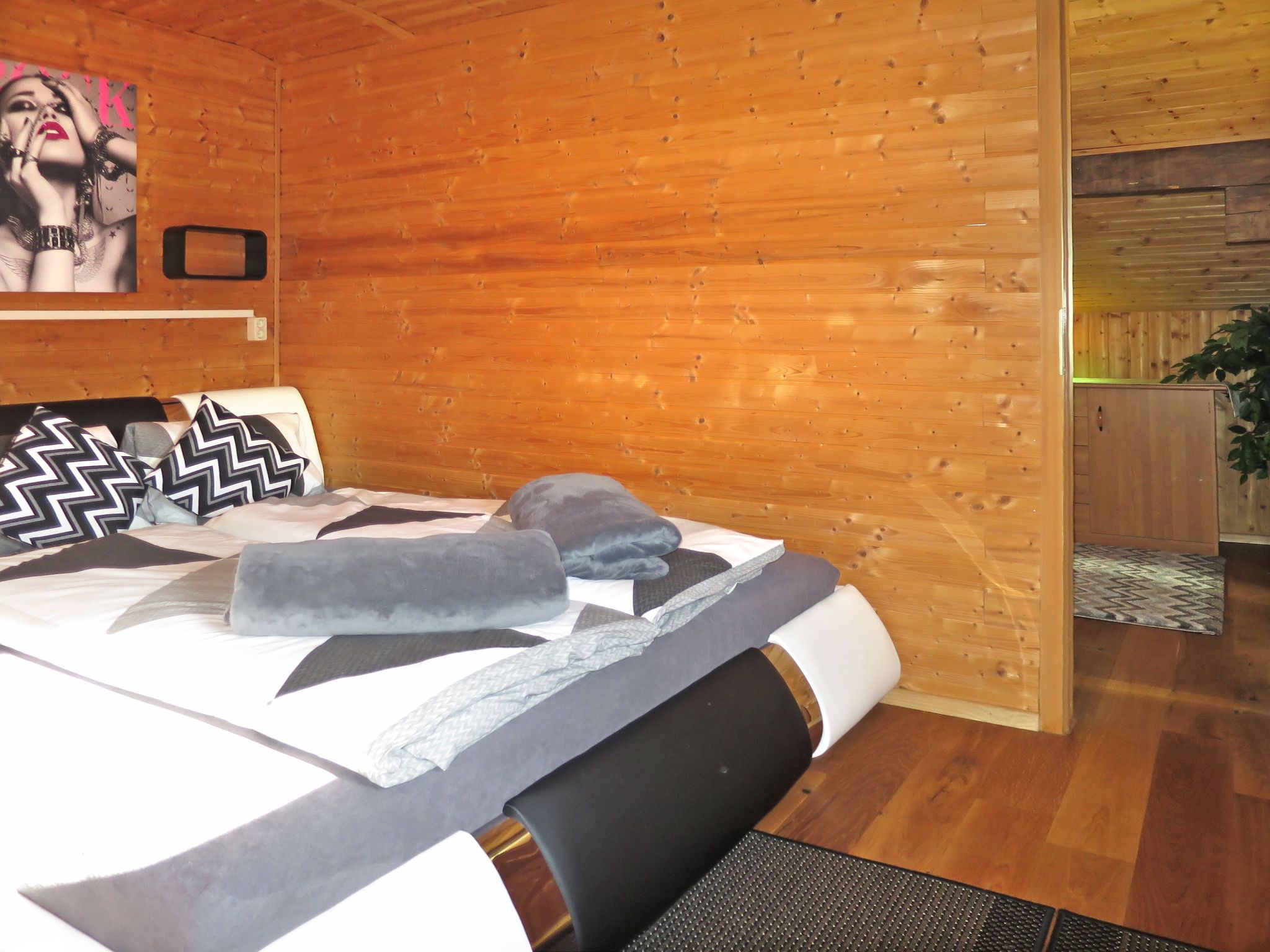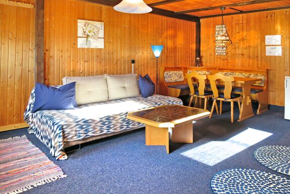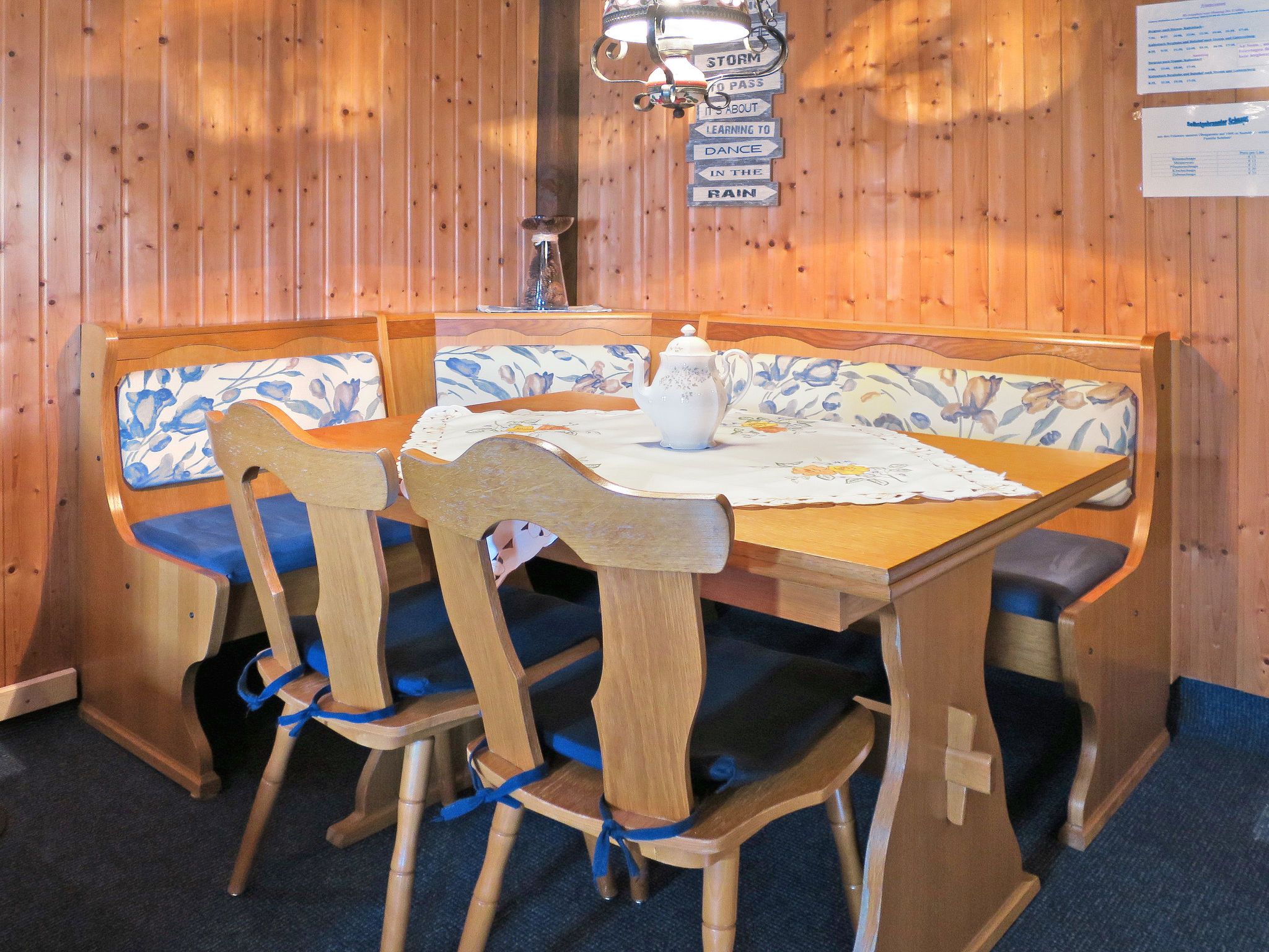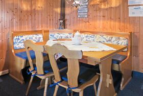 Schöser, 3-Zimmer-Wohnung 50 m2, im Dachgeschoss. Gemütlich und mit viel Holz eingerichtet: Wohn-/Esszimmer mit Esstisch, Essecke und Sat-TV. Ausgang zum Balkon. Durchgangszimmer mit 1 Doppelbett und E-Heizofen. 1 abgeschrägtes Doppelzimmer mit Bad/Dusche/WC und E-Heizofen. Offene Küche (4 Kochplatten, Backofen, Geschirrspüler, Toaster, Wasserkocher, elektrische Kaffeemaschine). G-Heizung. Teppichboden. Balkon. Schöne Panoramasicht auf die Berge und das Tal. Zur Verfügung: Babybett.