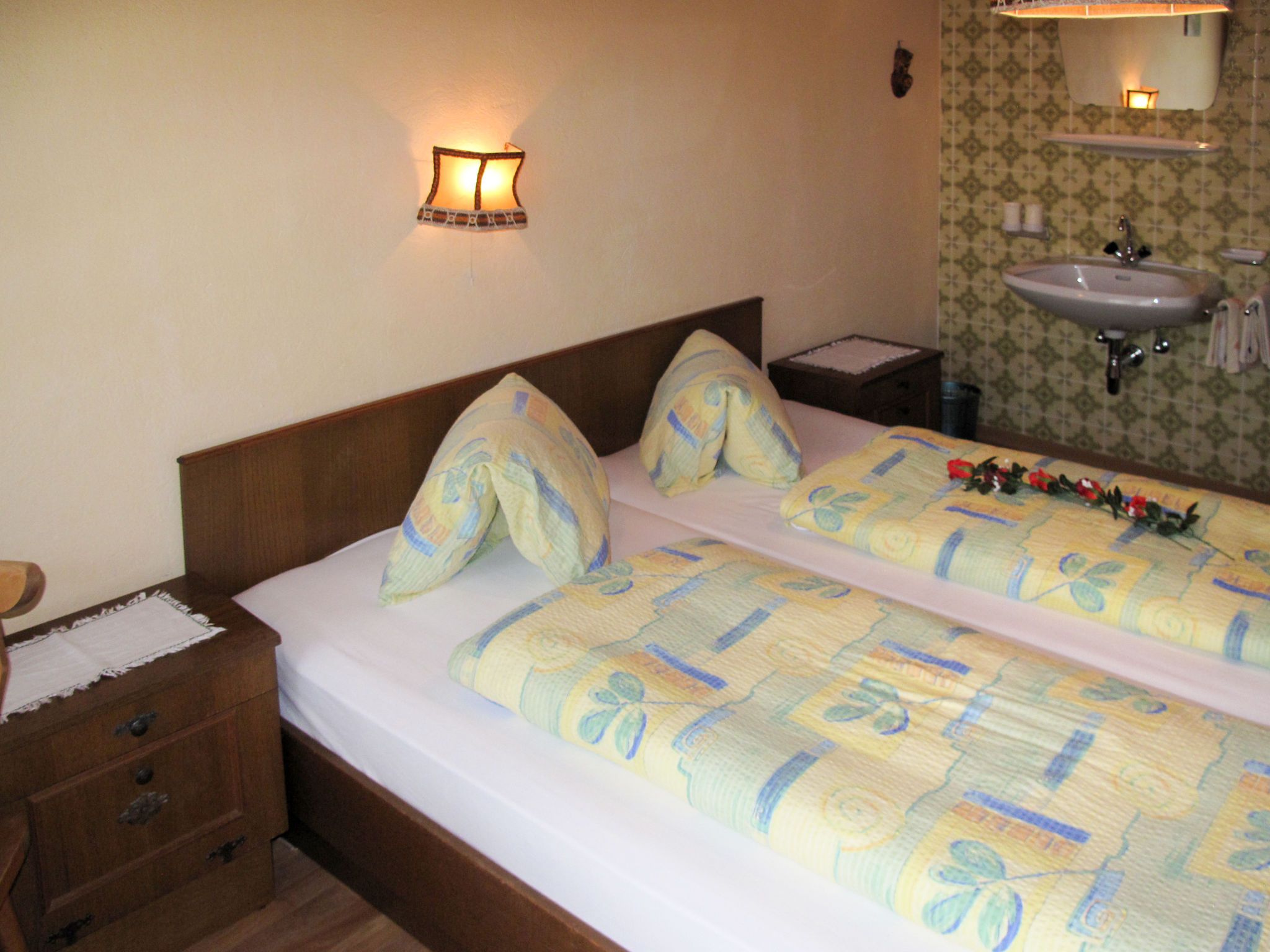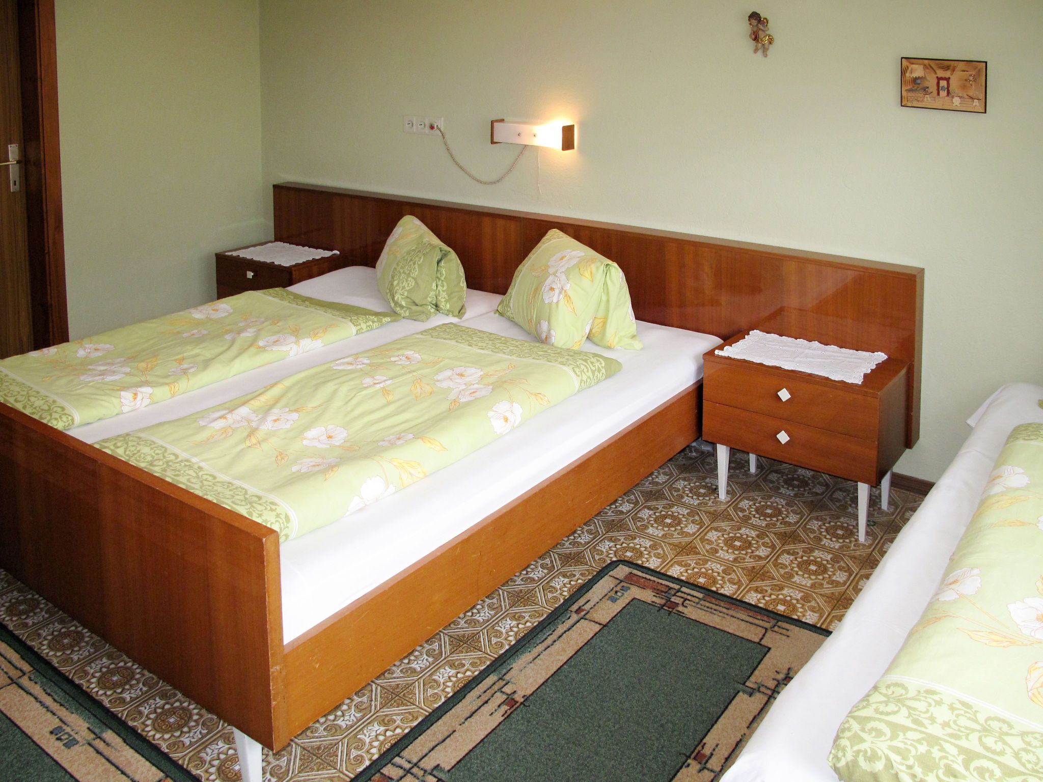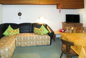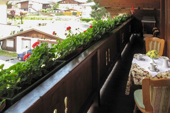 Elisabeth, 4-Zimmer-Wohnung 90 m2 im 2. Stock. Zweckmässig eingerichtet: abgeschrägtes Wohnzimmer mit Esstisch und Sat-TV. 1 abgeschrägtes Zimmer mit 1 Bett, 1 Doppelbett und Dusche/WC. Ausgang zum Balkon. 2 abgeschrägte Doppelzimmer, jedes Zimmer mit Waschbecken. Ausgang zum Balkon. Abgeschrägte Küche (4 Kochplatten, Backofen, Geschirrspüler, Toaster, Wasserkocher, Mikrowelle, elektrische Kaffeemaschine) mit Esstisch. Dusche, Dusche/WC, sep. WC. Teppichboden. Balkon 10 m2. Balkonmöbel. Schöne Sicht auf die Berge. Zur Verfügung: Internet (WLAN, gratis). Bitte beachten: Nichtraucher-Unterkunft. Rauchmelder, Feuerlöscher. Bei Belegung mit weniger Personen als der maximalen Personenzahl stehen nicht alle Wohneinheiten zur Verfügung.