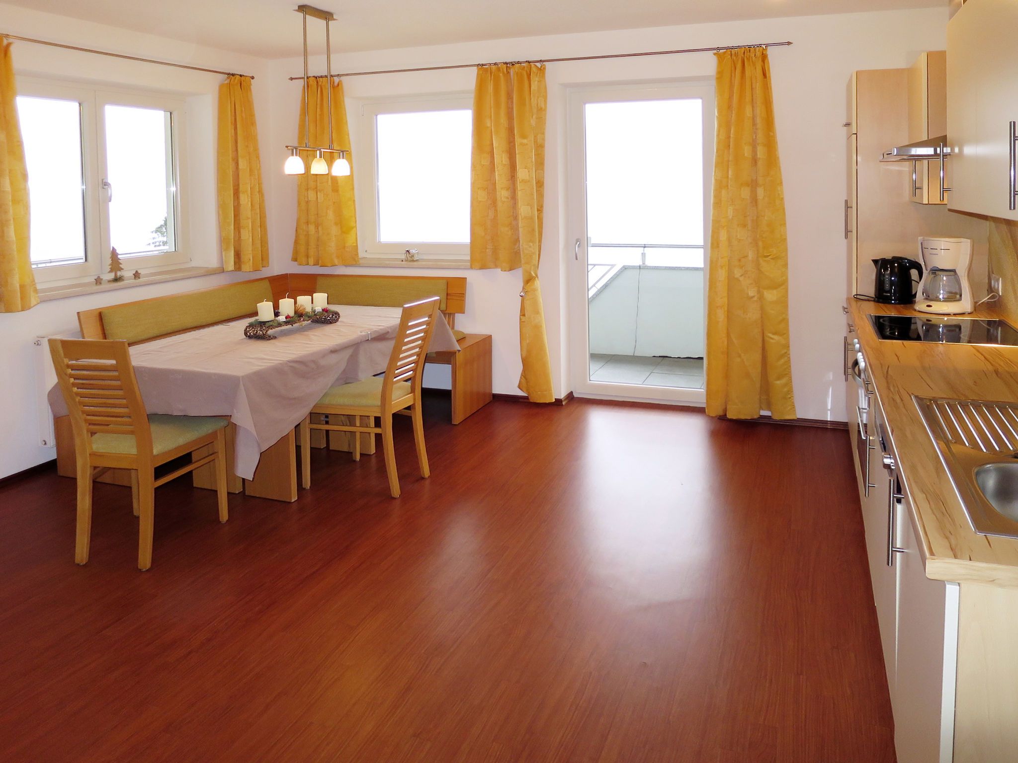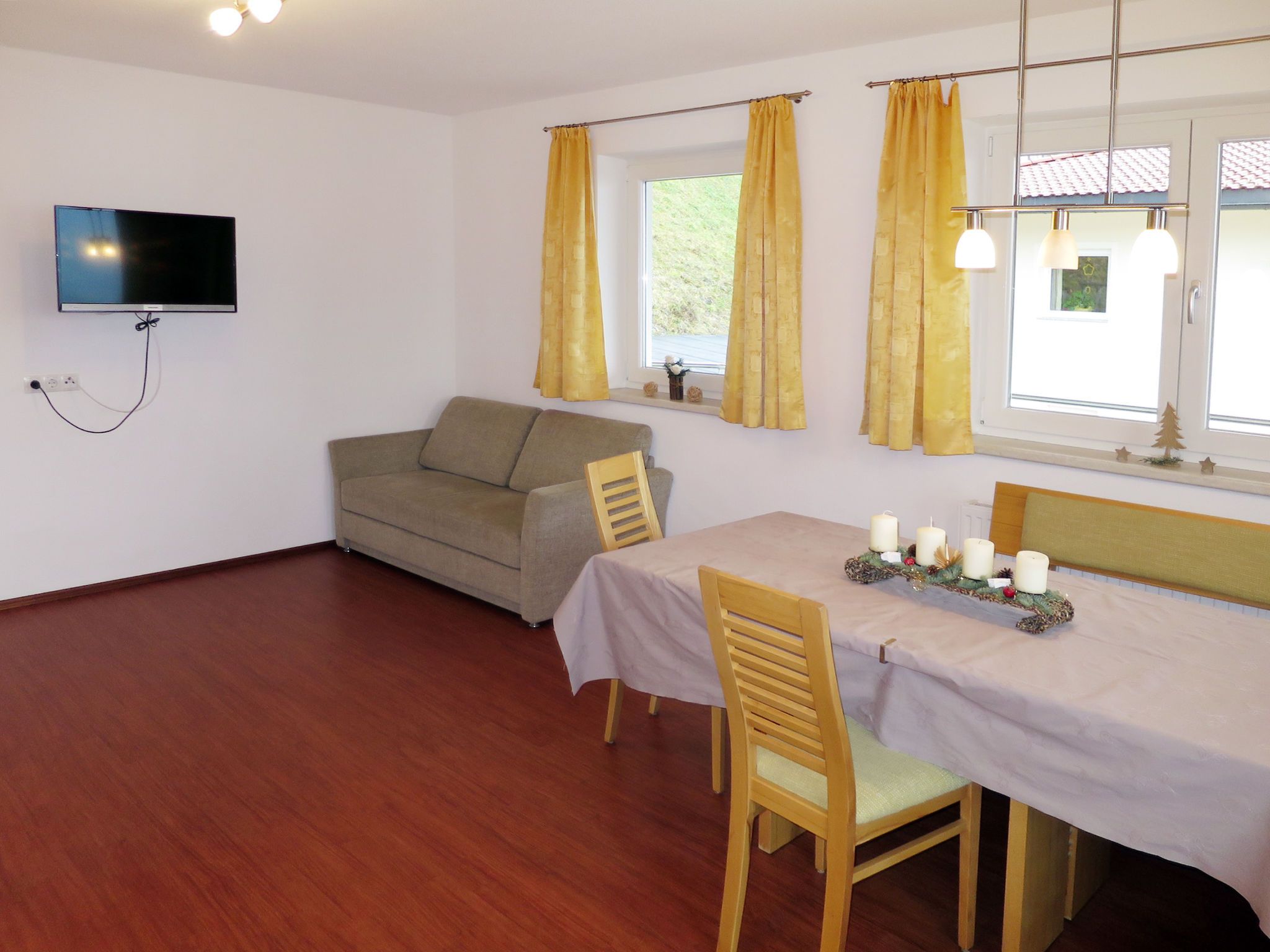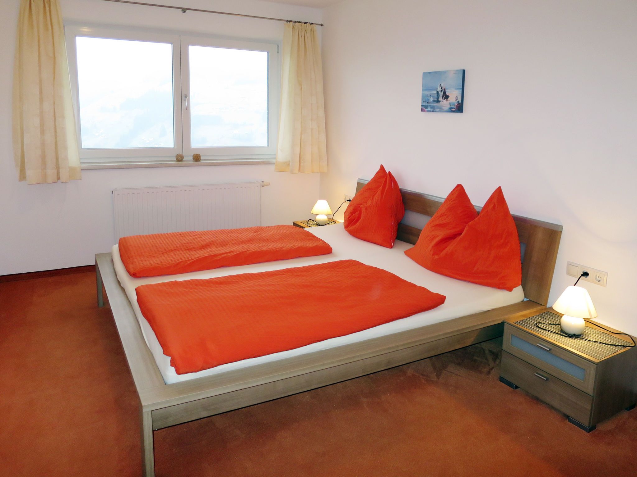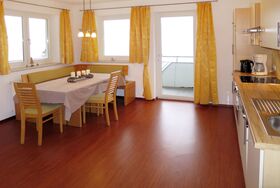 3-Zimmer-Wohnung 70 m2 im 2. Stock. Hell, zweckmässig eingerichtet: Wohn-/Schlafzimmer mit 1 Doppeldiwanbett (1 x 180 cm), Essecke und Sat-TV (Flachbildschirm). 2 Doppelzimmer. Offene Küche (Backofen, Geschirrspüler, 4 Glaskeramikplatten, Wasserkocher, Mikrowelle, elektrische Kaffeemaschine). Ausgang zum Balkon. Dusche, sep. WC. Ölheizung. Teppichboden. Balkon. Balkonmöbel. Herrliche Panoramasicht auf die Berge und das Tal. Zur Verfügung: Internet (WLAN, gratis). Bitte beachten: Nichtraucher-Unterkunft. Rauchmelder, Feuerlöscher.