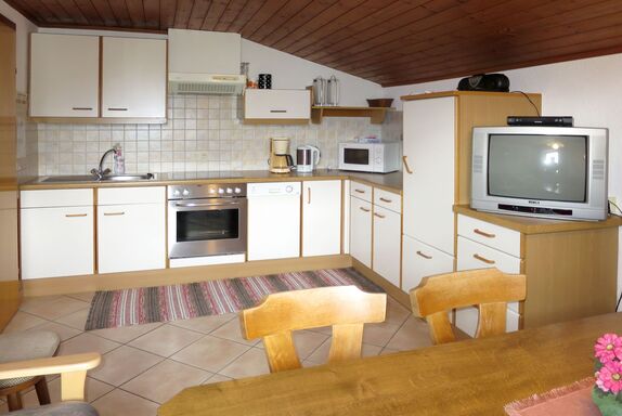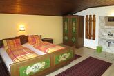Bloserhof, 4-Zimmer-Wohnung 90 m2, im Dachgeschoss. Einfach eingerichtet: 1 abgeschrägtes Zimmer mit 1 Doppelbett und Waschbecken. Ausgang zum Balkon. 1 abgeschrägtes Zimmer mit 1 Bett, 1 Doppelbett und Waschbecken. Ausgang zum Balkon. 1 abgeschrägtes Zimmer mit 1 Bett, 1 Doppelbett und Waschbecken. Wohnküche (Backofen, Geschirrspüler, 4 Glaskeramikplatten, Toaster, Wasserkocher, Mikrowelle, elektrische Kaffeemaschine) mit Esstisch, Sat-TV und Radio. Dusche, sep. WC. Kleiner Balkon 10 m2. Balkonmöbel, Liegestühle (2). Herrliche Panoramasicht auf die Berge und das Tal. Zur Verfügung: Kinderhochstuhl, Babybett. Internet (Wireless LAN, gratis). Bitte beachten: Nichtraucher-Unterkunft. Feuerlöscher. Bei Belegung mit weniger Personen als der maximalen Personenzahl stehen nicht alle Schlafzimmer zur Verfügung.