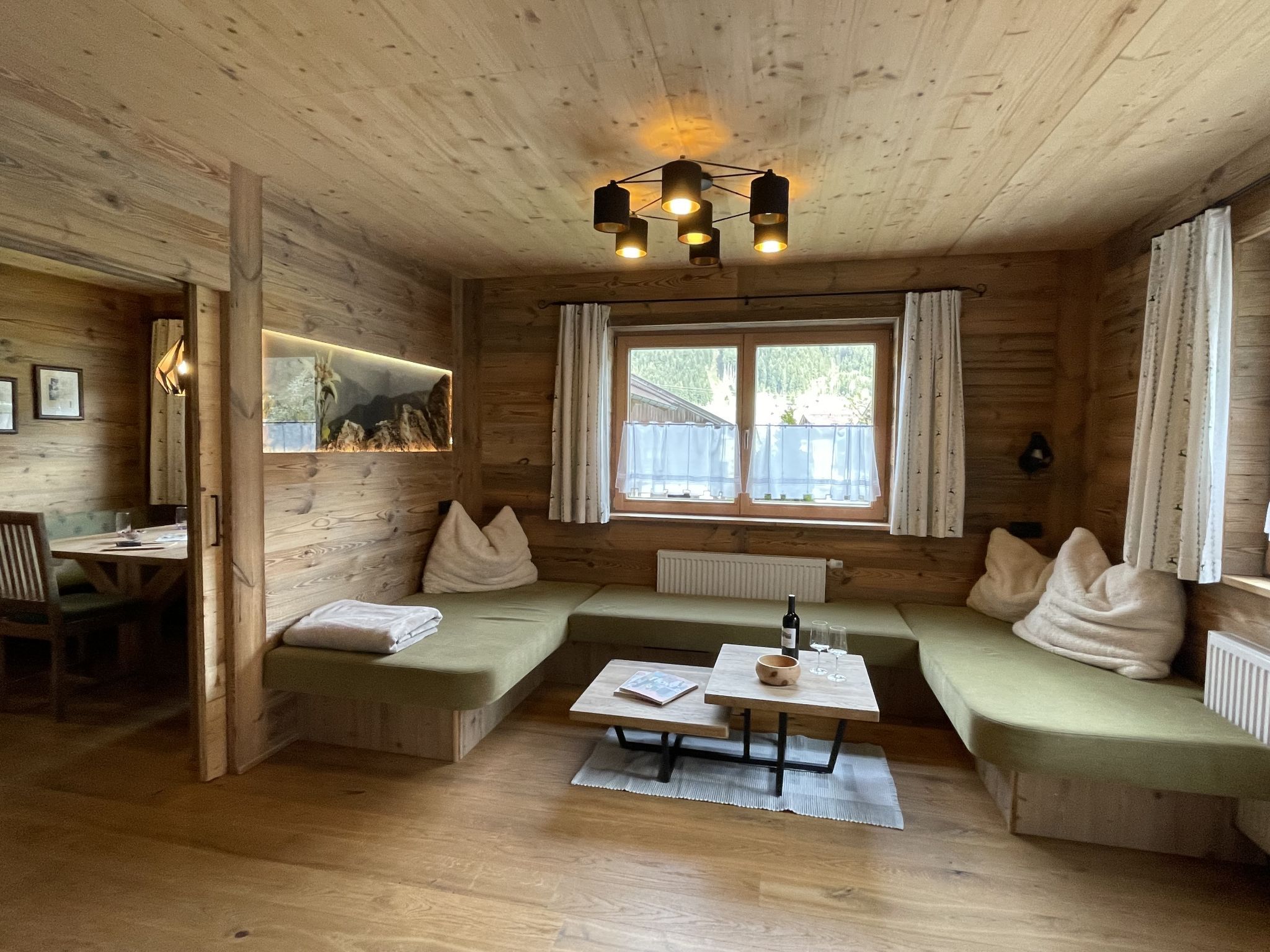 Eberharter, 4-Zimmer-Wohnung 90 m2 im 1. Stock. Vollständig renoviert im Jahre 2019, gemütlich und mit viel Holz eingerichtet: Wohnzimmer mit Sat-TV. Ausgang zur Terrasse. 2 Doppelzimmer. 1 Zimmer mit 1 Bett. Küche (Backofen, Geschirrspüler, 4 Glaskeramikplatten, Toaster, Wasserkocher, Tiefkühler, elektrische Kaffeemaschine) mit Essecke. Dusche, sep. WC, Doppelwaschbecken. Holzdielenboden. Terrasse 20 m2. Terrassenmöbel, Gartengrill (mobil). Zur Verfügung: Internet (Wireless LAN, gratis). Bitte beachten: Nichtraucher-Unterkunft. Eigener Eingang, Feuerlöscher.