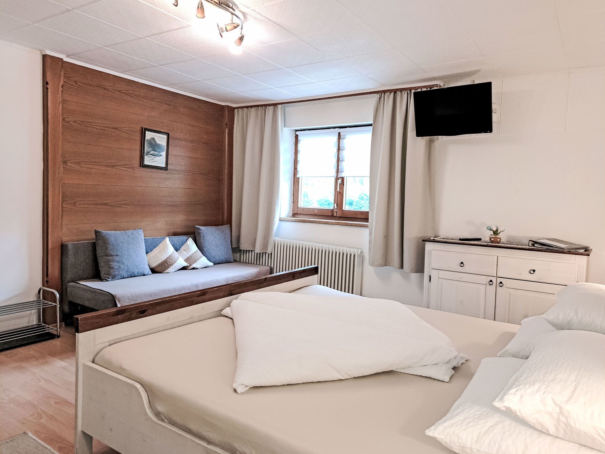 Gielerhof, 2-Zimmer-Wohnung 45 m2 im 1. Stock. Zweckmässig eingerichtet: 1 Zimmer mit 1 Diwanbett, 1 Doppelbett und Sat-TV (Flachbildschirm). Wohnküche (Backofen, Geschirrspüler, 4 Glaskeramikplatten, Toaster, Wasserkocher, elektrische Kaffeemaschine) mit Esstisch. Dusche/WC. Heizung. Parkettboden. Zur Verfügung: Internet (WLAN, gratis). Bitte beachten: Nichtraucher-Unterkunft. Maximal 1 Haustier/Hund erlaubt. Feuerlöscher. (1) Haustier nur im Sommer erlaubt.