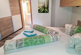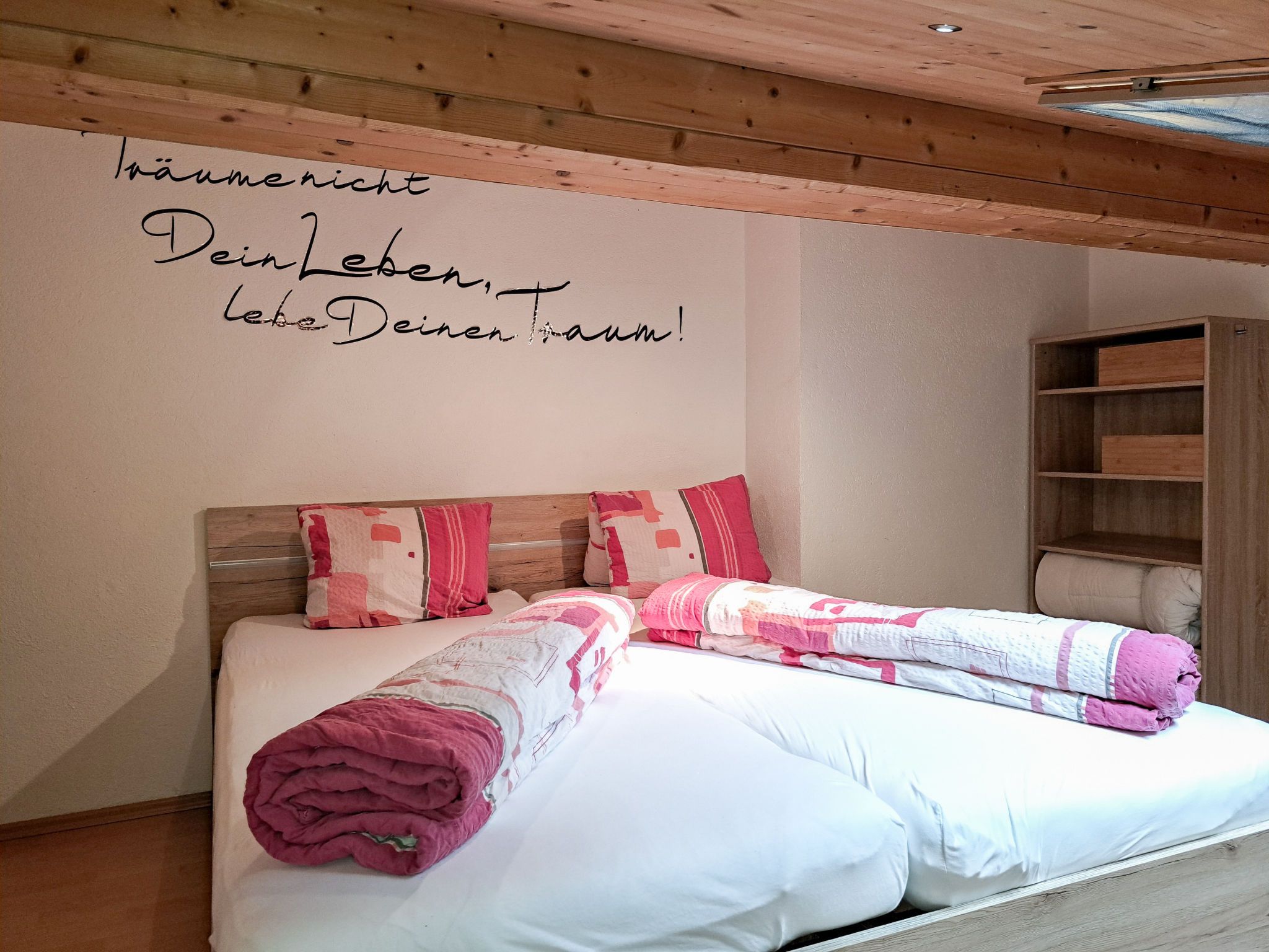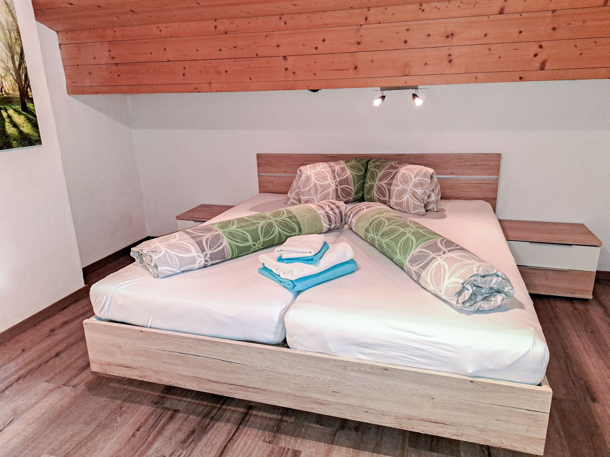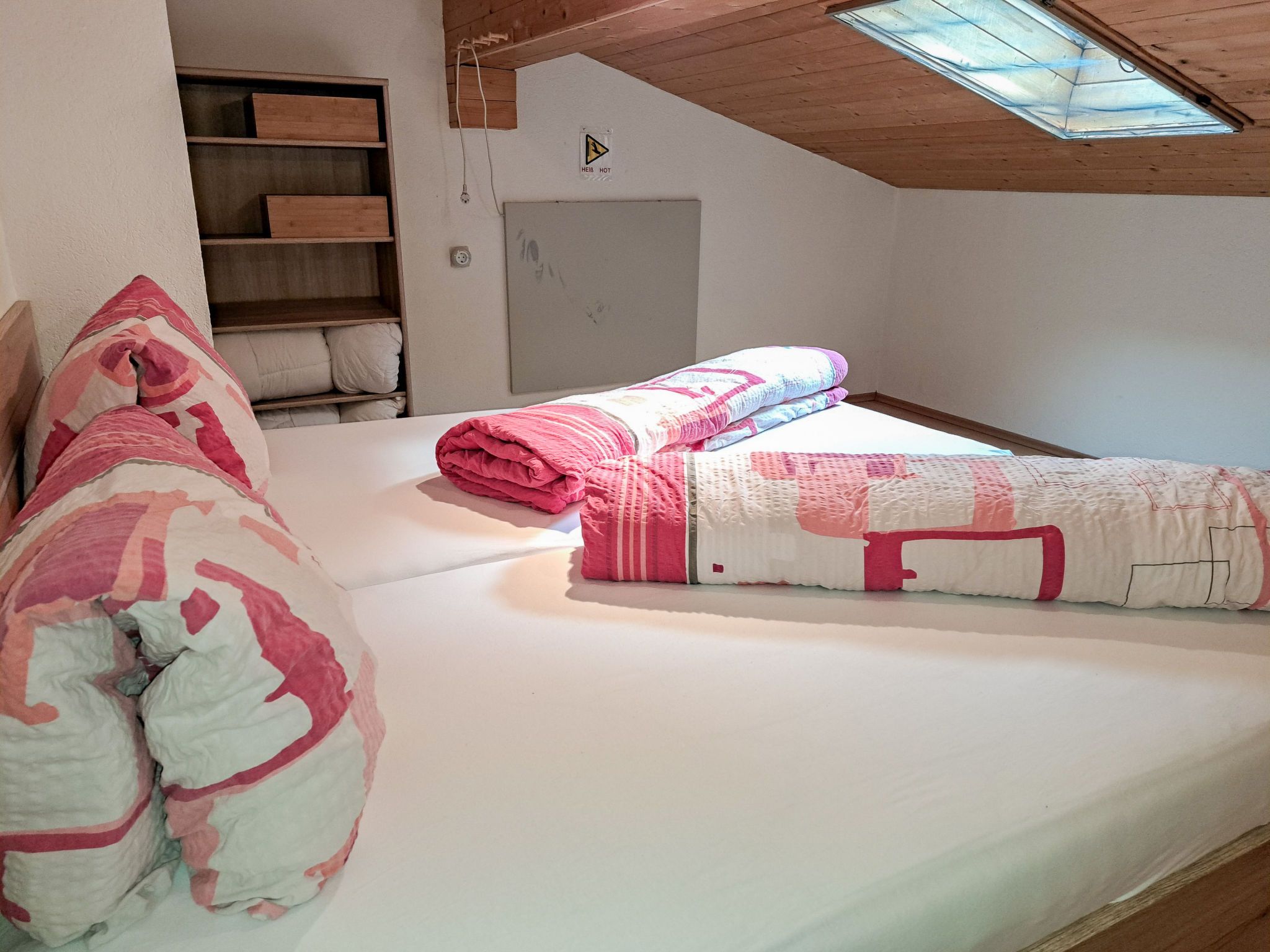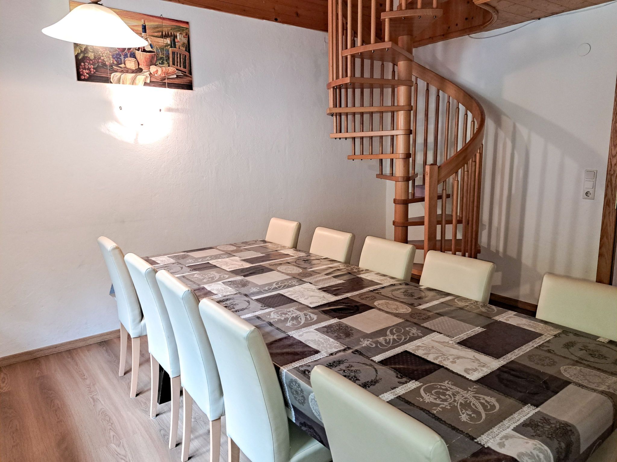 Yasmin, 7-Zimmer-Wohnung 140 m2 auf 2 Stockwerken im 1. Stock. Gemütlich eingerichtet: Obergeschoss: Wohn-/Esszimmer mit Sat-TV und Radio. Ausgang zum Balkon. Esszimmer mit Esstisch und Sat-TV. Ausgang zum Balkon. 1 Doppelzimmer mit Bad. Ausgang zum Balkon. 1 Doppelzimmer. Ausgang zum Balkon. Küche (Backofen, Geschirrspüler, 4 Glaskeramikplatten, Toaster, Wasserkocher, Mikrowelle, Tiefkühler, elektrische Kaffeemaschine) mit kleiner Bar. Dusche, 2 sep. WC's. 2. Obergeschoss: (Wendeltreppe) 1 abgeschrägtes Doppelzimmer mit sep. WC. 2 abgeschrägte Doppelzimmer. Sep. WC. Balkon 12 m2. Balkonmöbel, Gartengrill. Zur Verfügung: Kinderhochstuhl, Babybett. Internet (Wireless LAN, gratis). Bitte beachten: Nichtraucher-Unterkunft. Rauchmelder, Feuerlöscher. Als Zusatzbett wird das Sofabett im Wohnzimmer angeboten. Bei Belegung mit weniger Personen als der maximalen Personenzahl stehen nicht alle Schlafzimmer zur Verfügung.