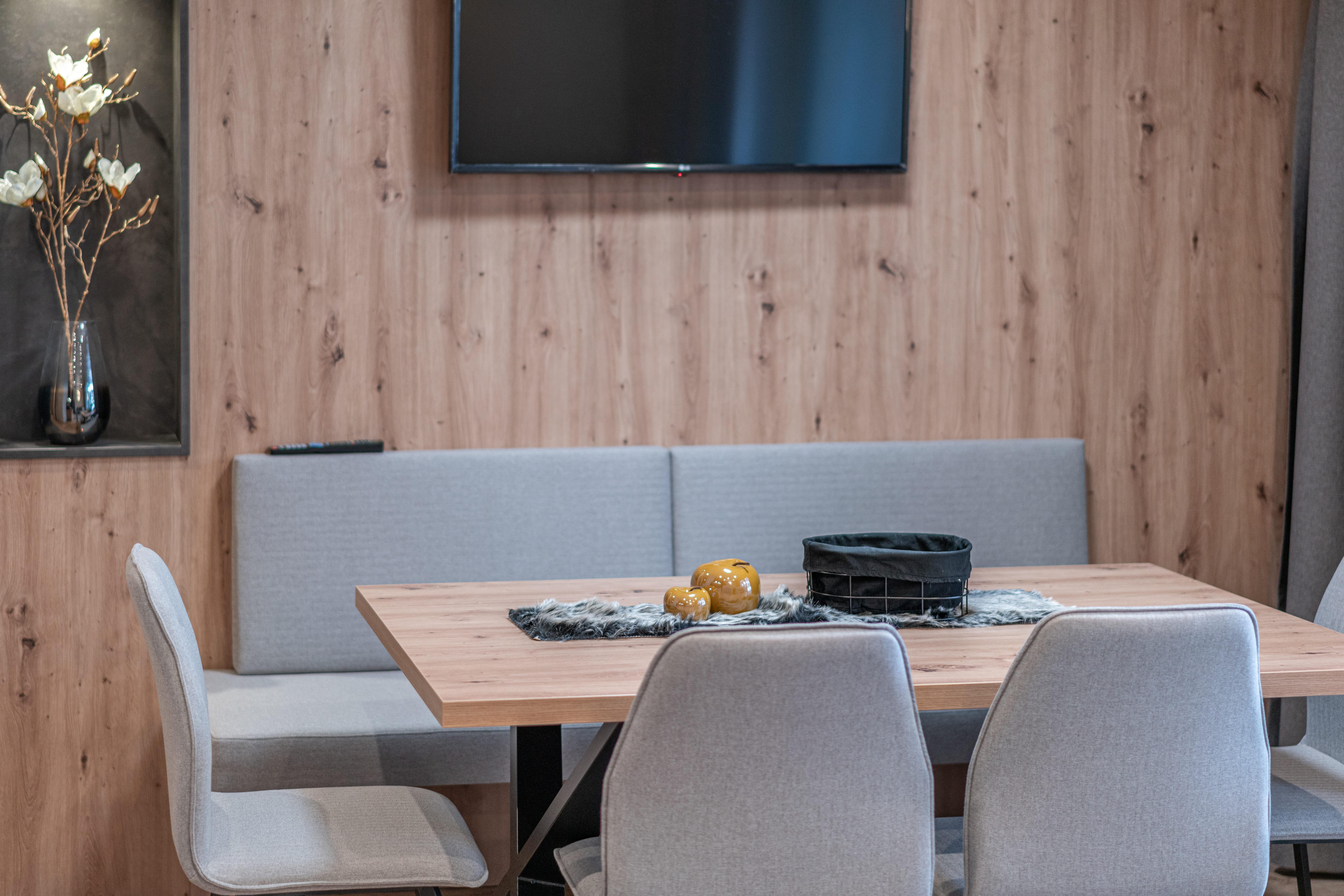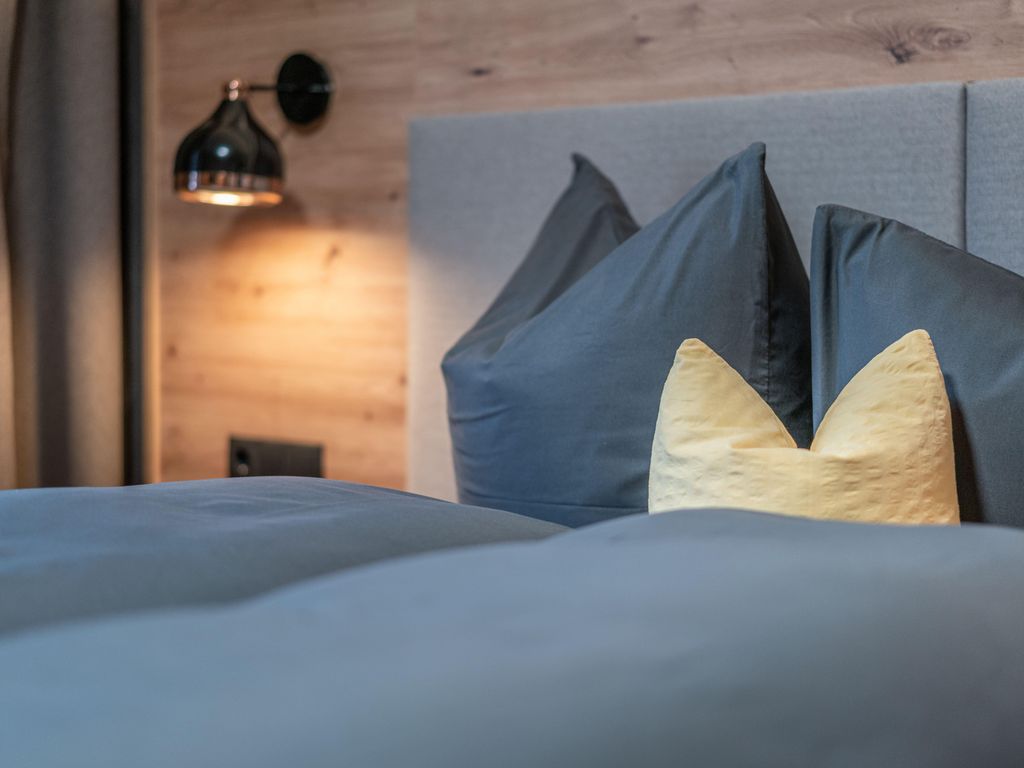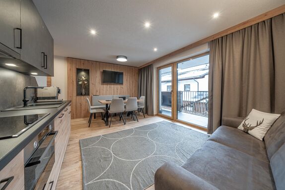 Im gemütlichen Appartement genießen Sie den alpinen Charme und das Urlaubsglück. Hochwertige Materialien, harmonische Naturtöne, exclusive Möbel, regionales Holz & moderne Bäder. All dies verzaubern die Urlaubszeit in individuelle Glücksmomente. Das Appartement mit ca. 64 m² bietet Platz für bis zu 6 Personen. Es verfügt über zwei Schlafzimmer mit Doppelbett, zwei Badezimmer mit Dusche/WC und Haartrockner. Voll ausgestattete Wohnküche (Ceranfeld, Geschirrspüler, Backofen, Mikrowelle, Kaffeevollautomat, Wasserkocher uvm.) mit gemütlichem Wohnbereich mit Essecke und Schlacouch (5. & 6. Person), Flat-TV, Safe und Südbalkon mit Bergblick.