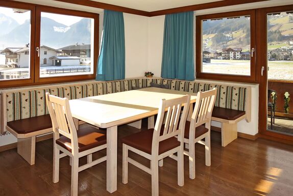 Ramsau 3 km von Mayrhofen: Landwirtschaftlicher Betrieb Heisenhaus. 3 km vom Zentrum von Mayrhofen, 500 m vom Zentrum von Ramsau, sonnige Lage. Zur Mitbenutzung: Grundstück mit Wiese. Sitzplatz, Gartenmöbel, Grill (Rutschbahn, Schaukel, Sandkasten). Im Hause: Skiraum, Skischuhtrockner. Parkplatz auf dem Grundstück. Einkaufsgeschäft 500 m, Supermarkt 950 m, Bushaltestelle Ramsau i.Z. Oberdorf 65 m, Bahnstation Ramsau i.Z.-Hippach Bahnhof 600 m, Freibad 1 km, Hallenbad 5 km. Gondelbahn 1 km, Skibushaltestelle 50 m.