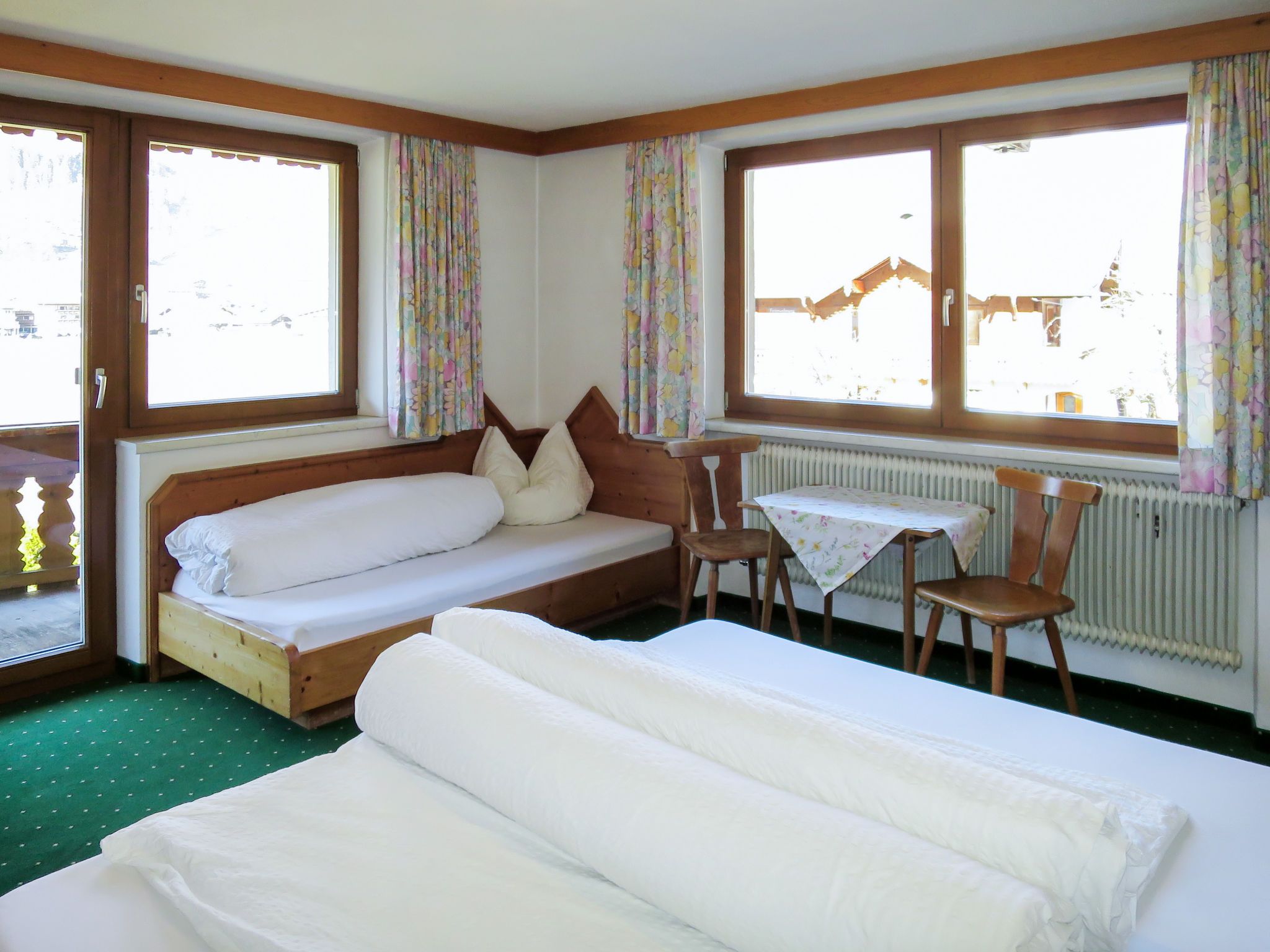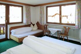 Heisenhaus, 3-Zimmer-Wohnung 65 m2 im 1. Stock. Zweckmässig und rustikal eingerichtet: 1 Zimmer mit 1 Bett und 1 Doppelbett. Ausgang zum Balkon. 1 Zimmer mit 1 Doppelbett, Dusche/WC und Sat-TV. Ausgang zum Balkon. Wohnküche (Backofen, Geschirrspüler, 4 Glaskeramikplatten, Wasserkocher, Mikrowelle, elektrische Kaffeemaschine) mit Essecke. Ausgang zum Balkon. Dusche/WC. Heizung. Zur Verfügung: Babybett. Internet (Wireless LAN, extra). Bitte beachten: ein Doppelzimmer liegt außerhalb der Wohnung. Rauchmelder. Bei Belegung mit weniger Personen als der maximalen Personenzahl stehen nicht alle Wohneinheiten zur Verfügung.