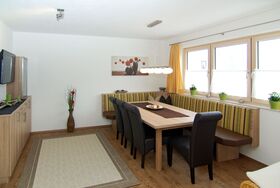 Schiestl, 5-Zimmer-Doppelhaushälfte 150 m2 auf 2 Stockwerken. Schön und modern eingerichtet: 1 Doppelzimmer mit Dusche/WC und Sat-TV. Ausgang zum Balkon. Wohn-/Esszimmer mit Esstisch, Sat-TV, Radio und CD. Ausgang zur Terrasse. Offene Küche (Backofen, Geschirrspüler, 4 Glaskeramikplatten, Toaster, Wasserkocher, Mikrowelle, Tiefkühler, elektrische Kaffeemaschine). Bad/WC. Obergeschoss: 1 Doppelzimmer mit Sat-TV. Ausgang zum Balkon. 1 Zimmer mit 1 Diwanbett (180 cm, Länge 200 cm), 1 Doppelbett und Sat-TV. 1 Zimmer mit 1 Diwanbett (180 cm, Länge 200 cm), 1 Doppelbett und Sat-TV. Ausgang zum Balkon. 2 Duschen/WC. Parkettboden. Balkon 10 m2, Terrasse 30 m2. Terrassenmöbel, Balkonmöbel, Liegestühle, Abstellkammer. Panoramasicht auf die Berge. Zur Verfügung: Internet (WLAN, gratis). Bitte beachten: Nichtraucher-Unterkunft. Maximal 1 Haustier/Hund erlaubt. Rauchmelder, Feuerlöscher. Bei Belegung mit weniger Personen als der maximalen Personenzahl stehen nicht alle Schlafzimmer zur Verfügung.